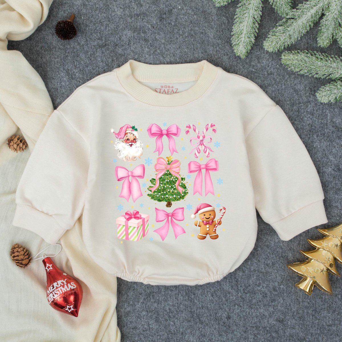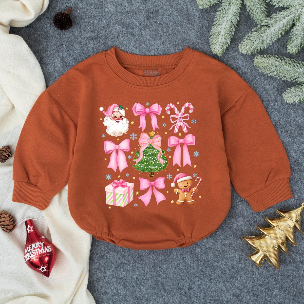 Retro Santa Baby Bubble Romper Vintage Santa SweatshirtRetro Groovy Christmas Outfit Vintage Christm 436
