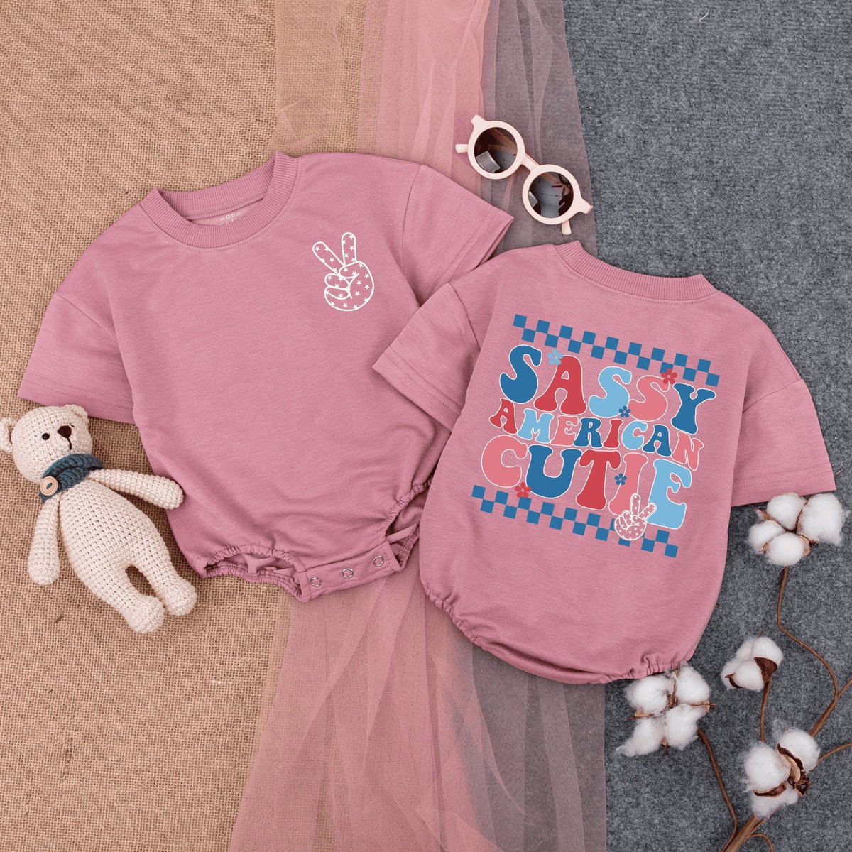 Sassy American Cutie Baby Romper Short Sleeve Retro Patriotic Bodysuit Cute Fourth of July Baby Ba 172