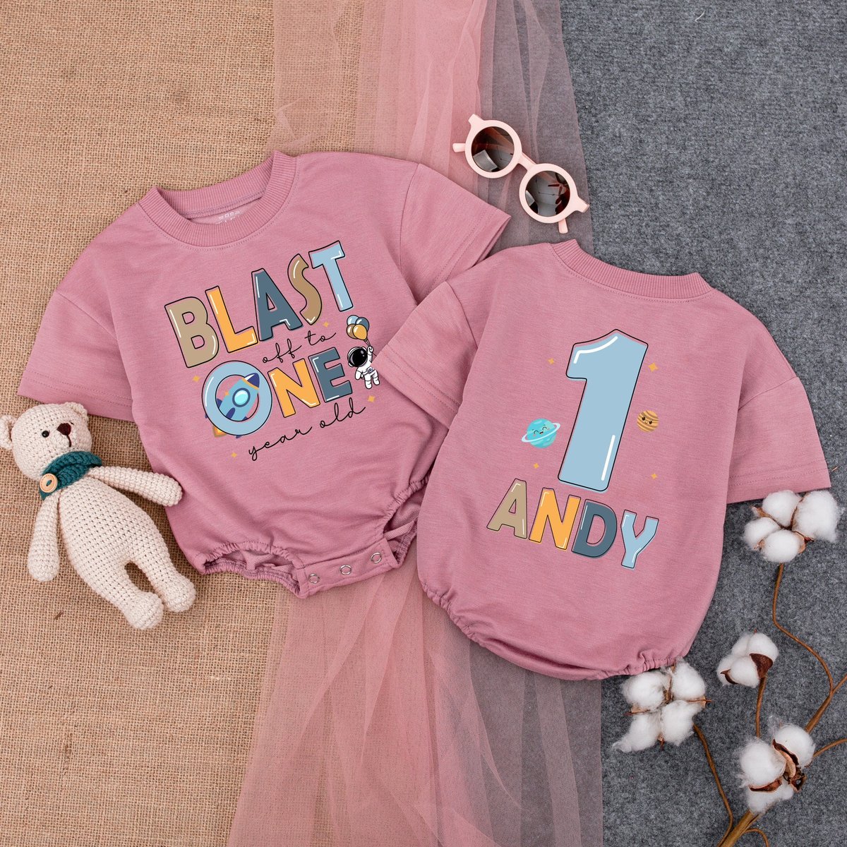 Space First Birthday Birthday Boy Short Sleeve Romper First Birthday Outfit Boy Birthday Clothes 1 177