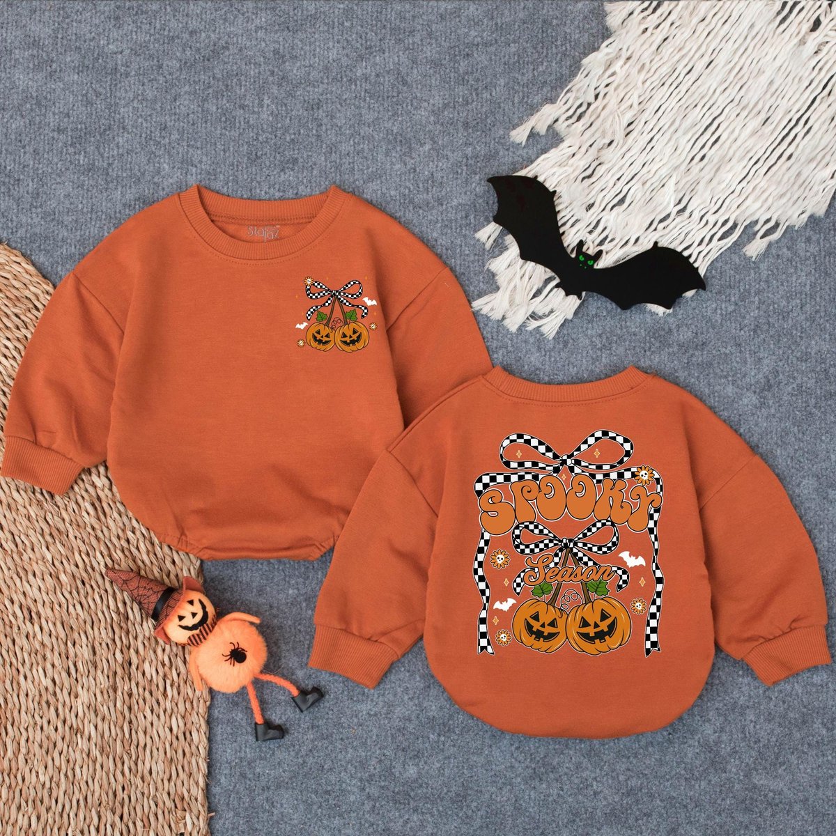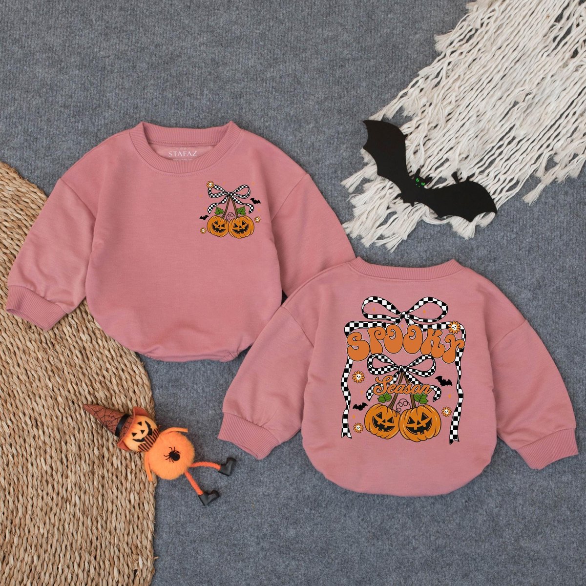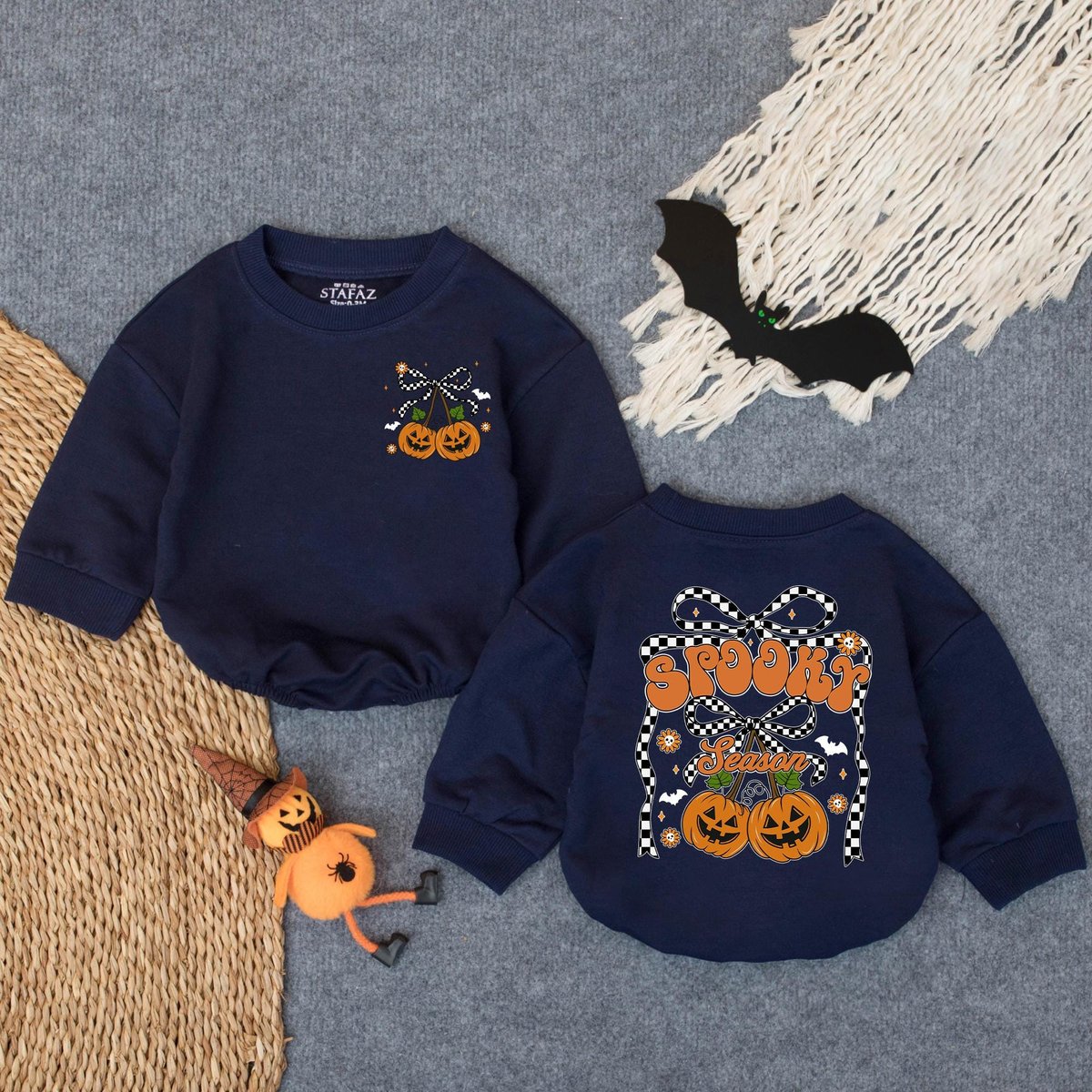 Spooky Season Pumpkin Cherry Bubble Romper Halloween Baby Sweatshirt Halloween Costume Fall Baby Clo 434