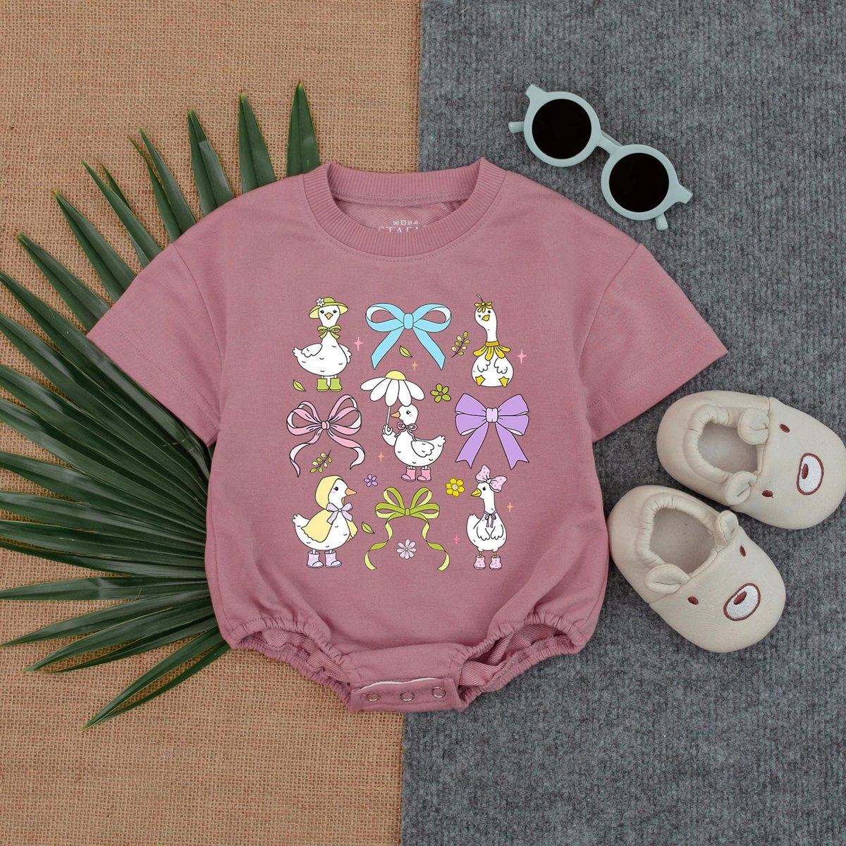 Spring Floral Goose Baby T shirt Bubble Romper Goose Short Sleeves Romper Baby Girl Coming Home Outf 188