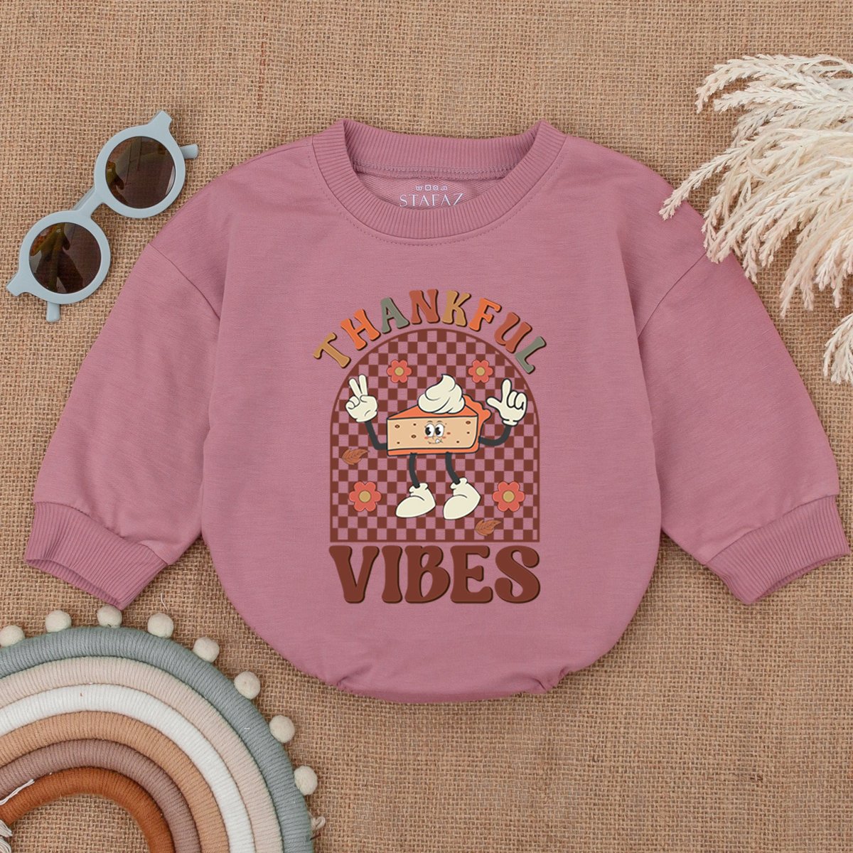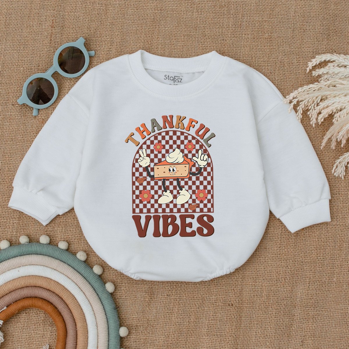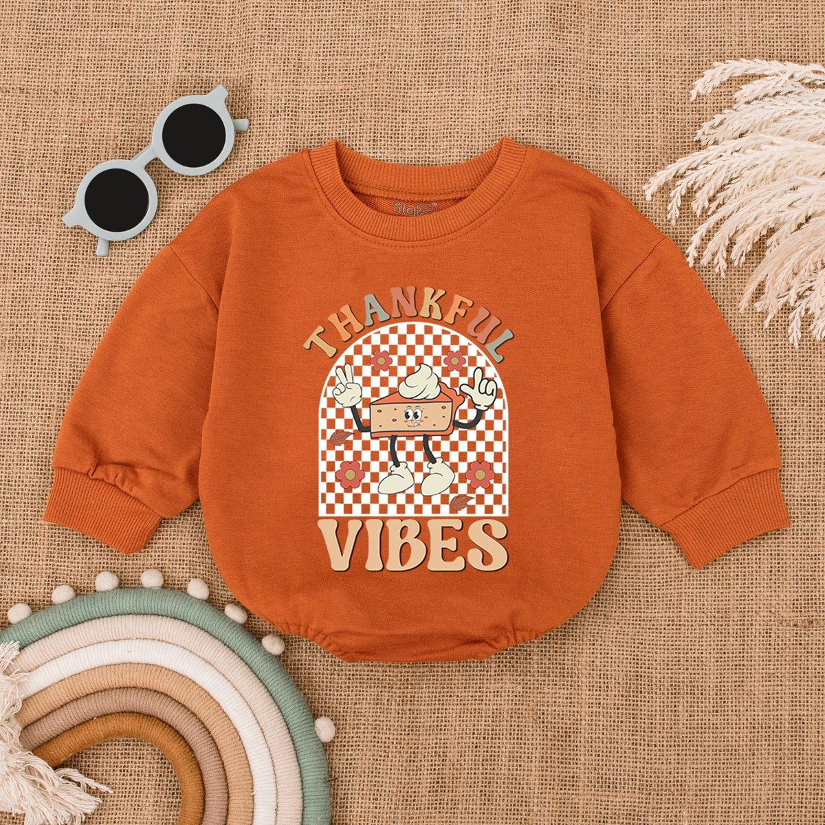 Thankful Vibes Pumpkin Halloween Romper Thanksgiving Baby Outfit Groovy Romper Fall Baby Outfit Autu 176
