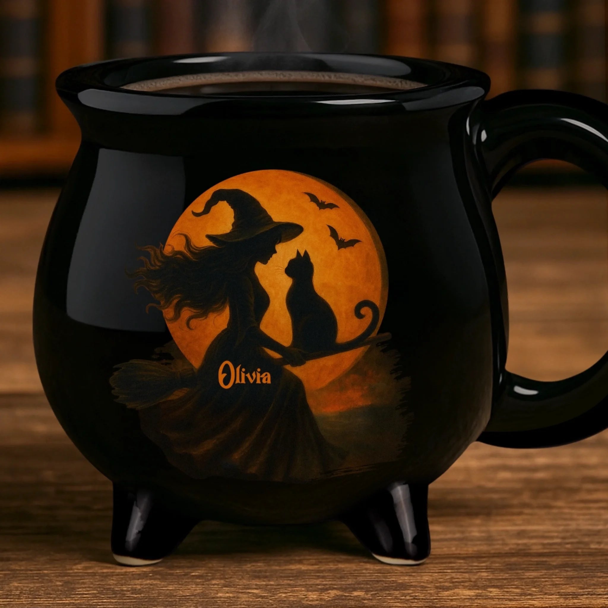 Custom 12oz Ceramic Cauldron Coffee Mug Witchy Gifts For Besties Sisters BFF Family Yourself Purrfectly Wicked