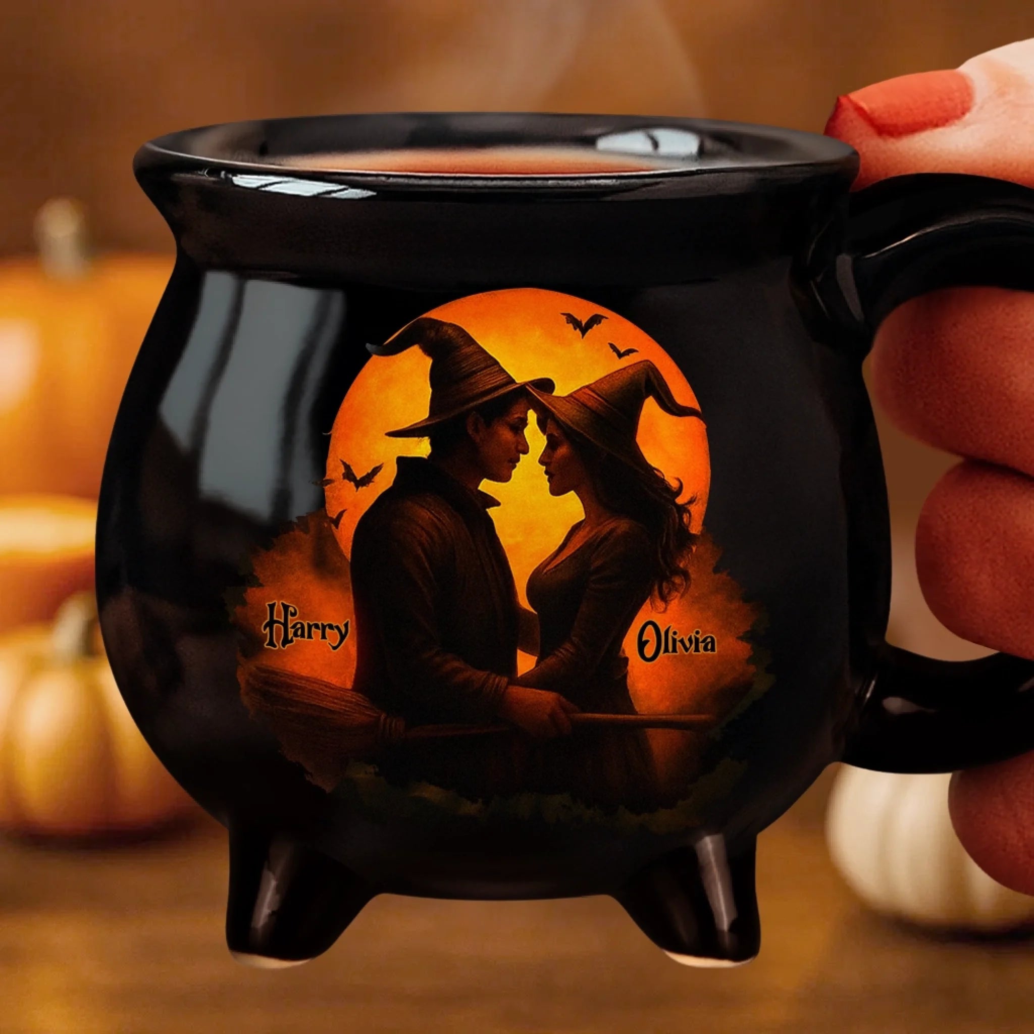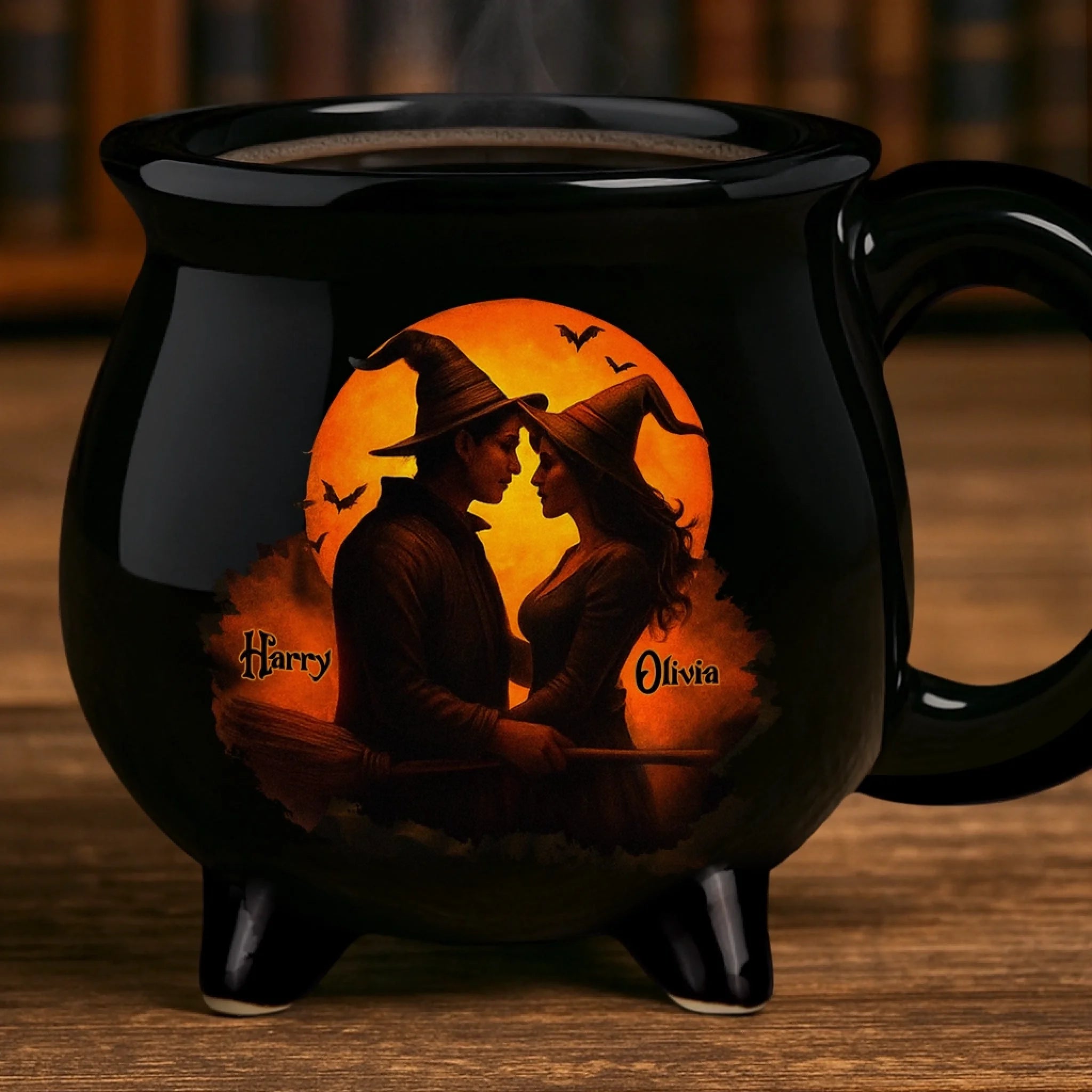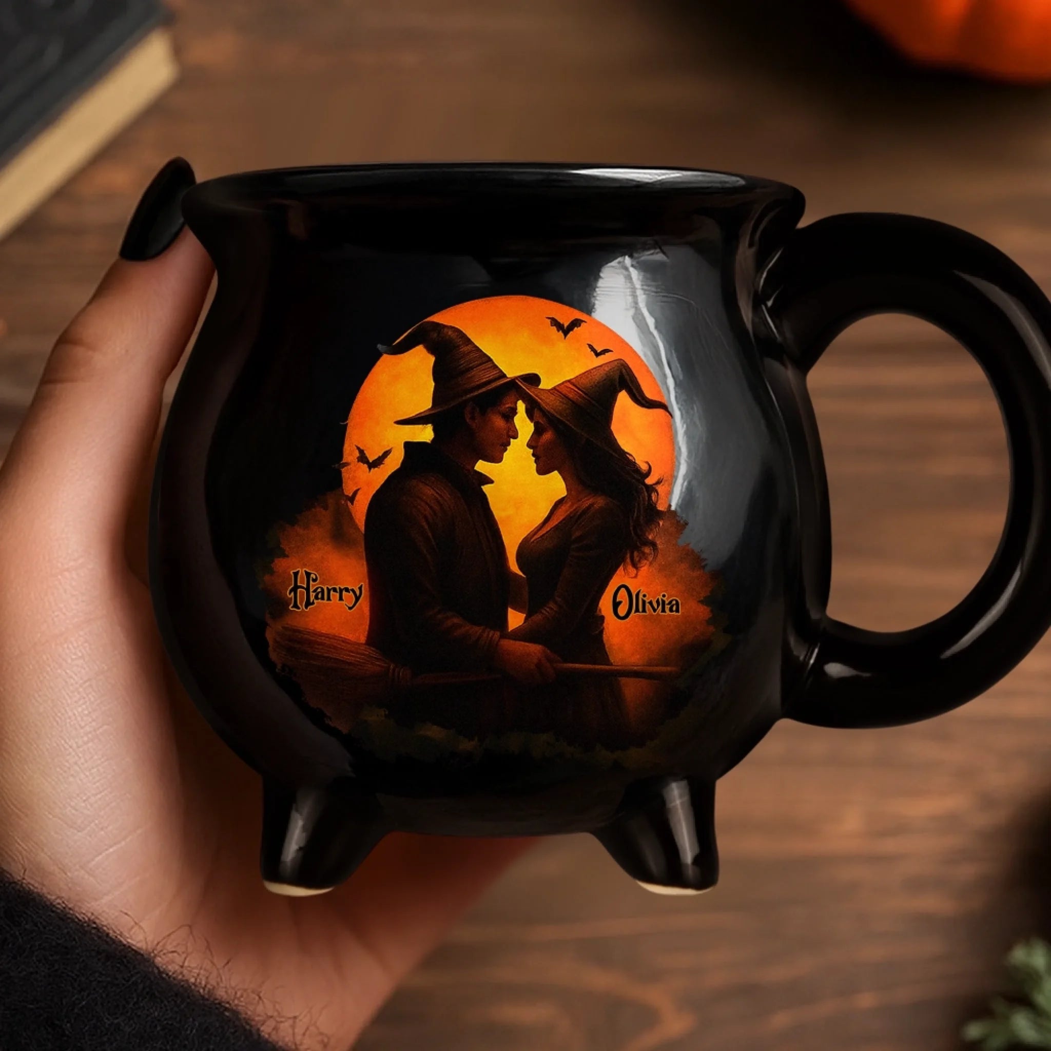 Custom Witch Cauldron Coffee Mug Personalized Anniversary Halloween Witchy Gifts For Husband And Wife Him And Her Two Souls One Magic