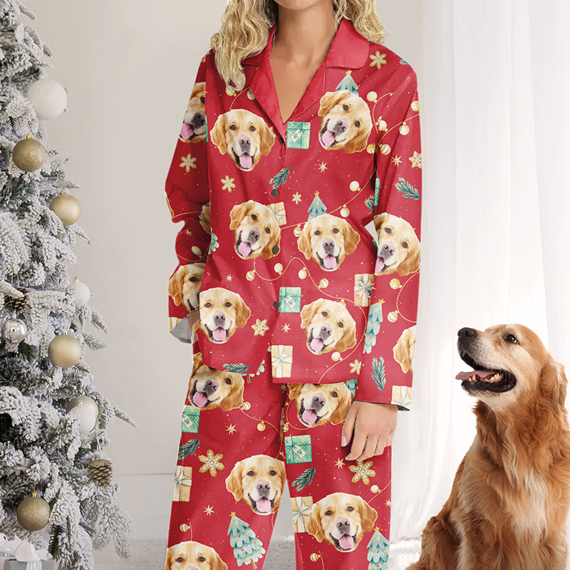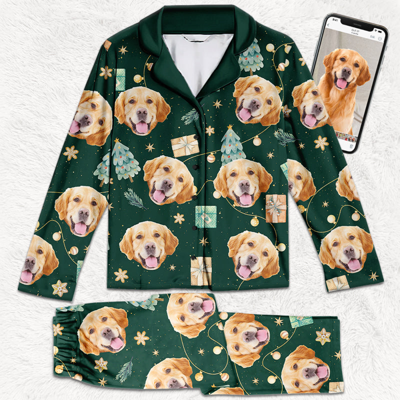 Custom Photo Furst Christmas Together Dog & Cat Personalized Custom Face Photo Pajamas Christmas Gift For Pet Owners Pet Lovers