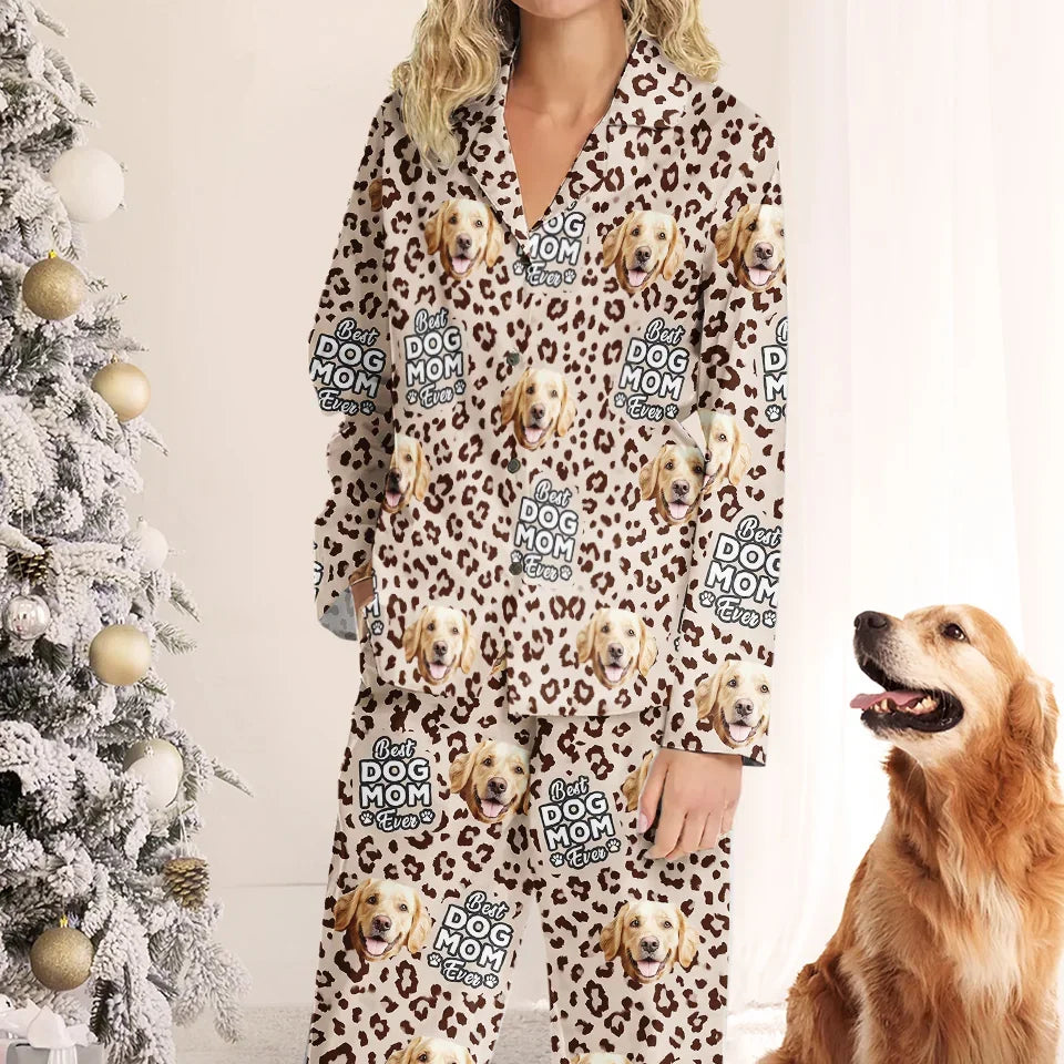 Custom Photo My Pet Is My Happy Place Dog & Cat Personalized Custom Pajamas Christmas Gift For Pet Owners Pet Lovers