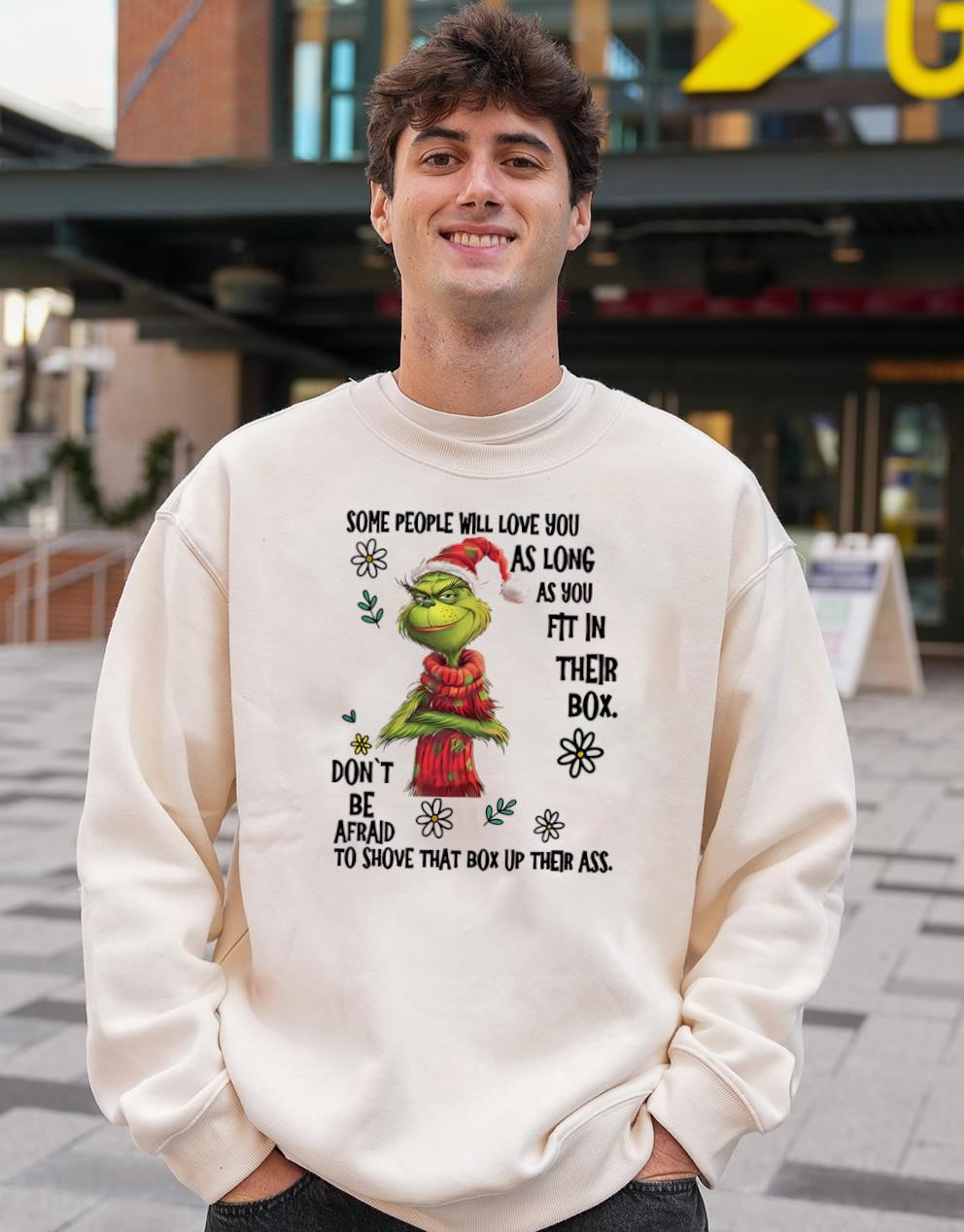 Grinch Quote Christmas T-Shirt – Funny Some People Love You If You Fit Their Box Don’t Be Afraid To Shove It Vintage Bootleg Holiday Tee