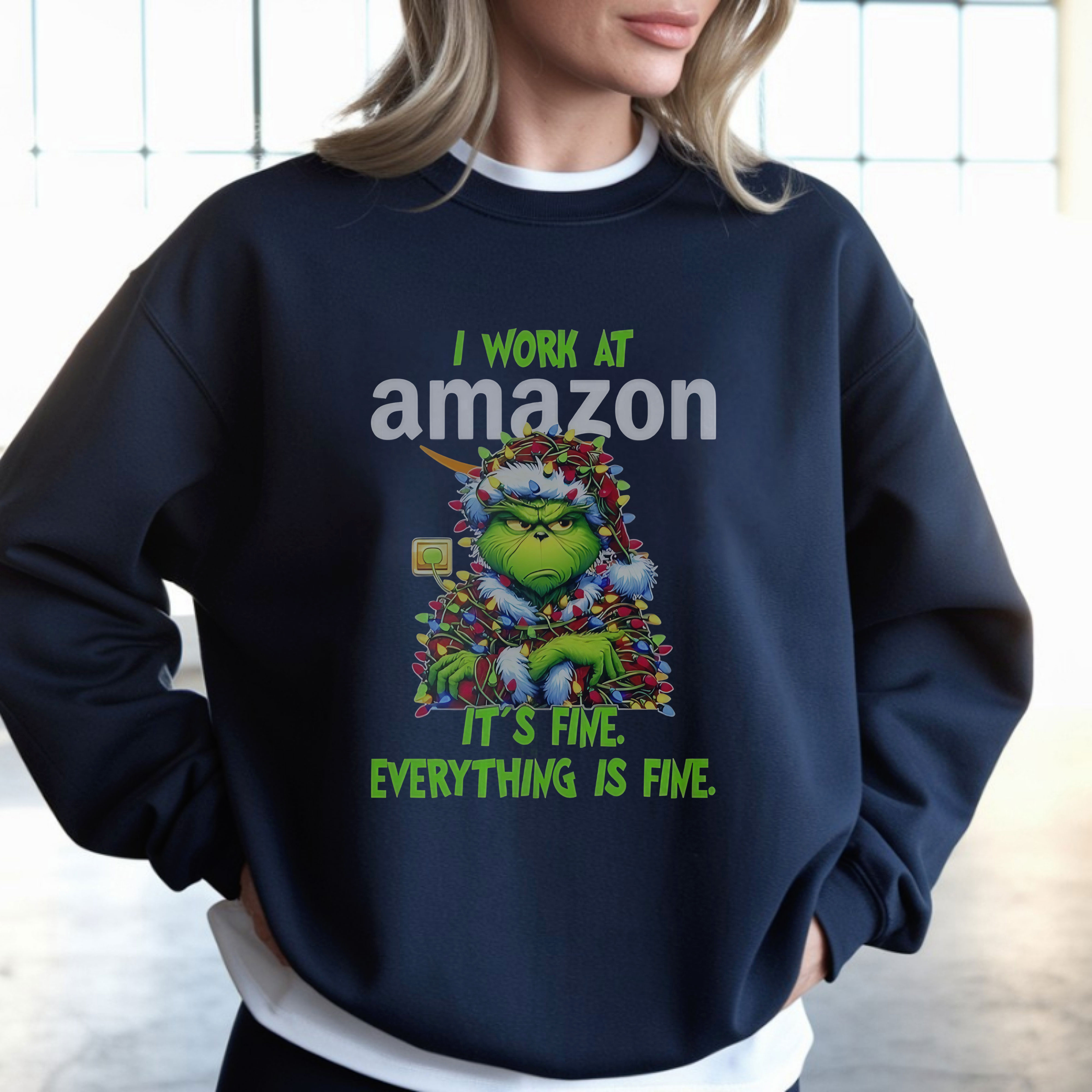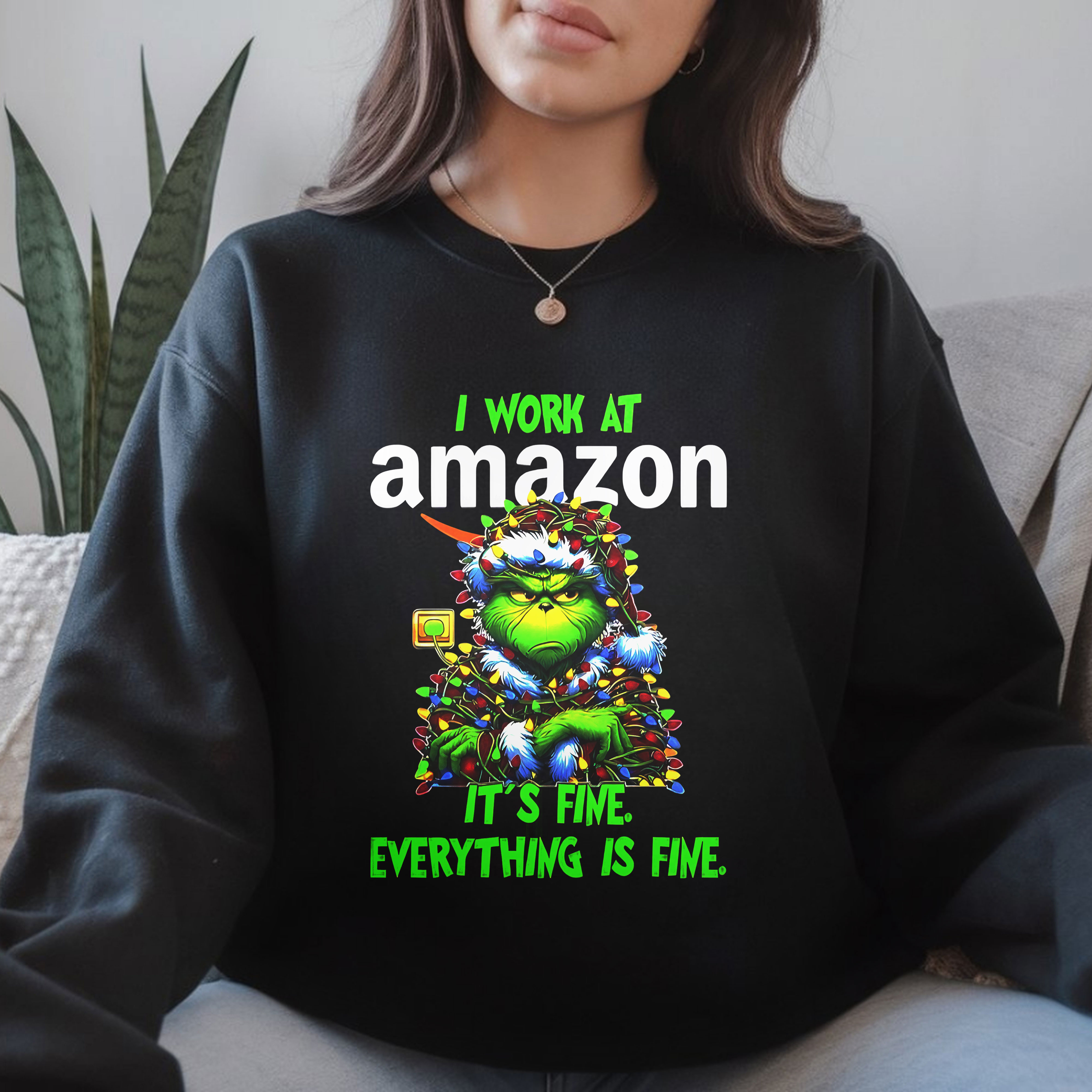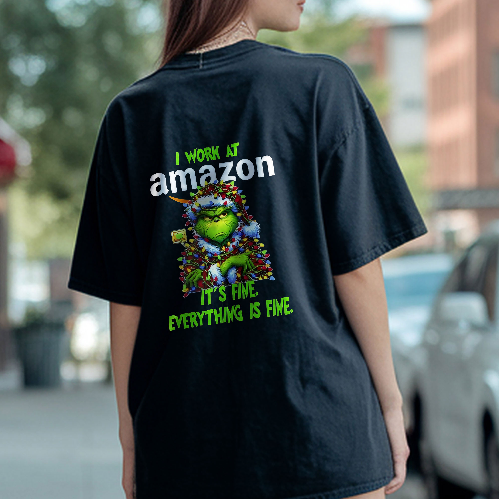 Grinch Quote Amazon Christmas T-Shirt – Funny I Work At Amazon It’s Fine Everything Is Fine Vintage Bootleg Holiday Tee