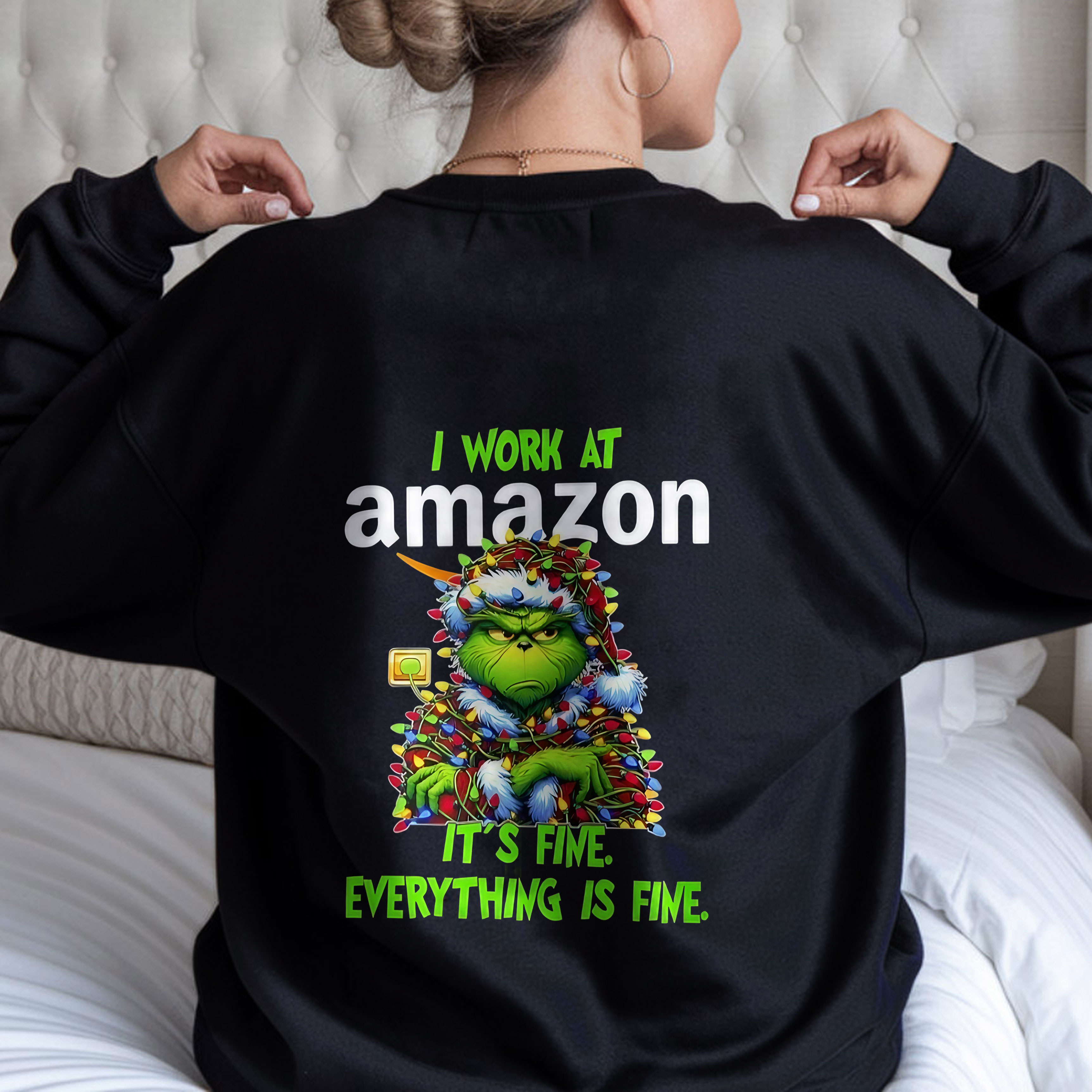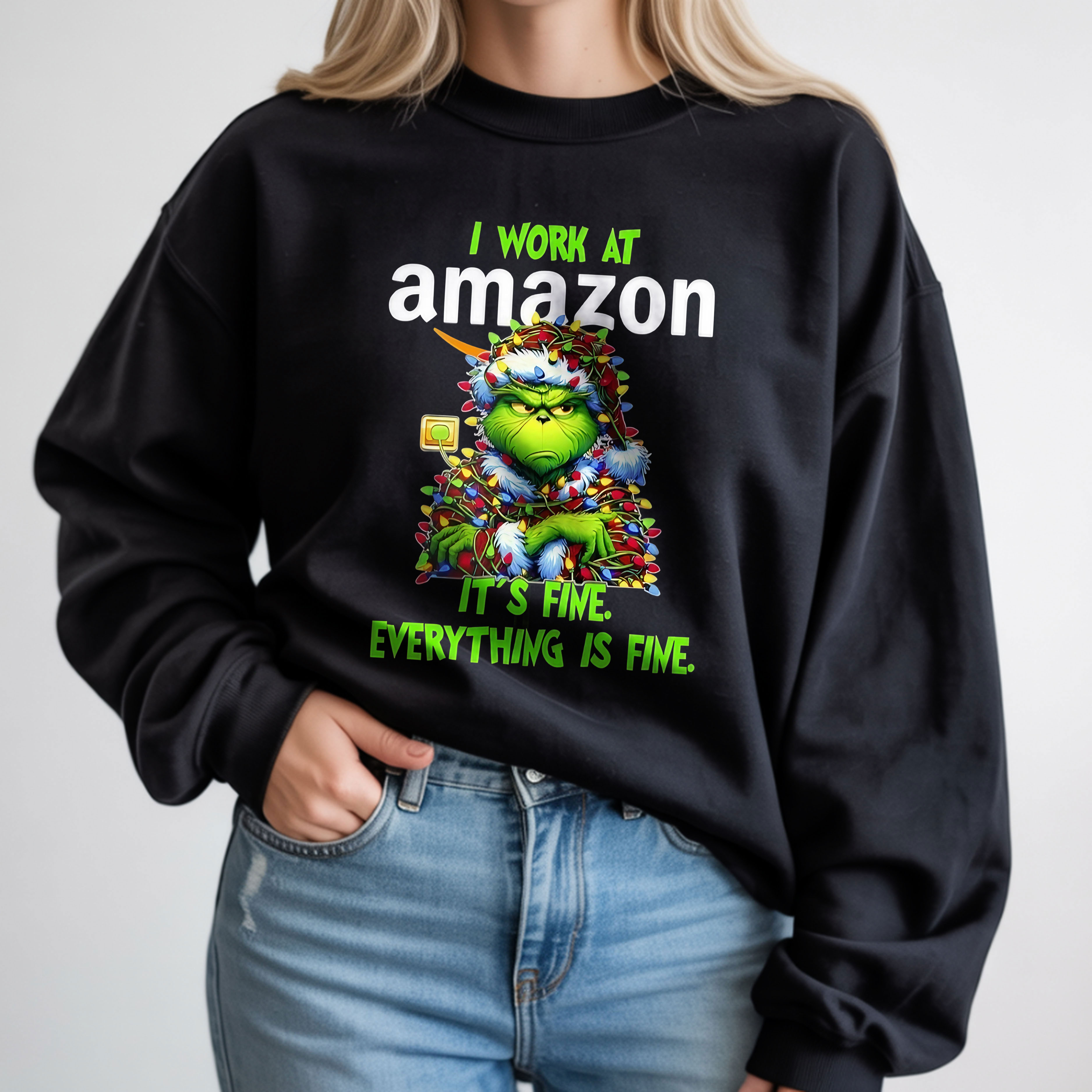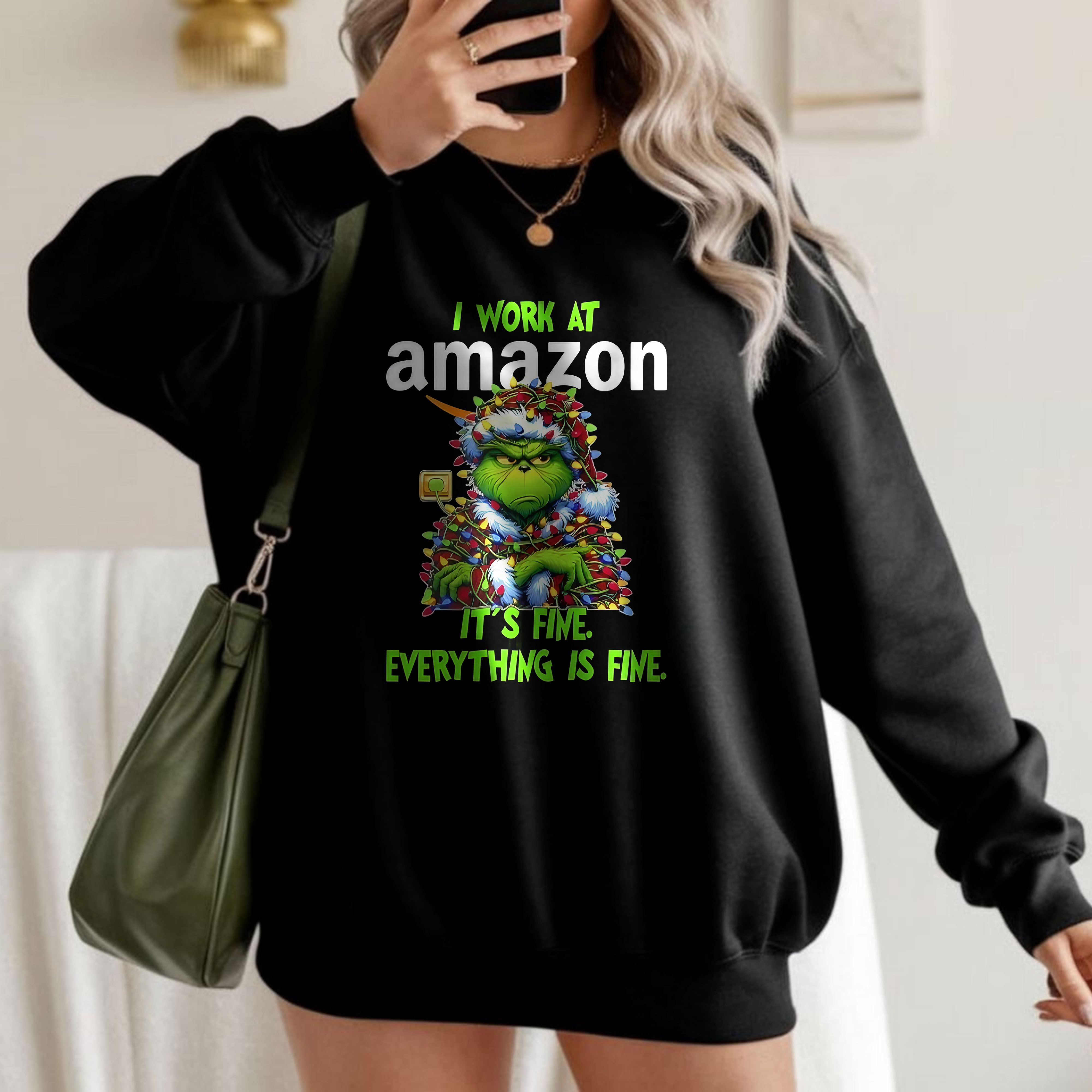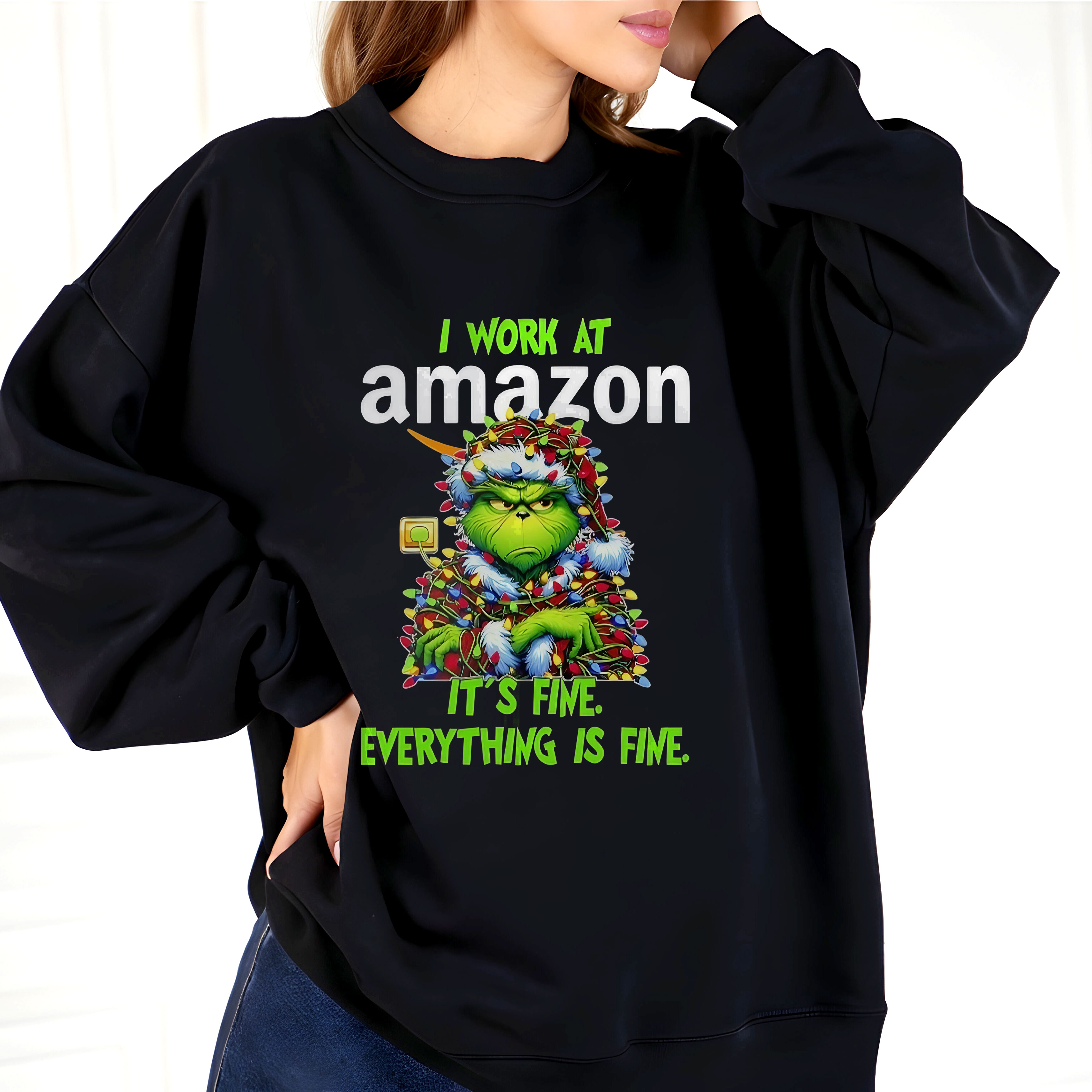 Grinch Quote Amazon Christmas T-Shirt – Funny I Work At Amazon It’s Fine Everything Is Fine Vintage Bootleg Holiday Tee
