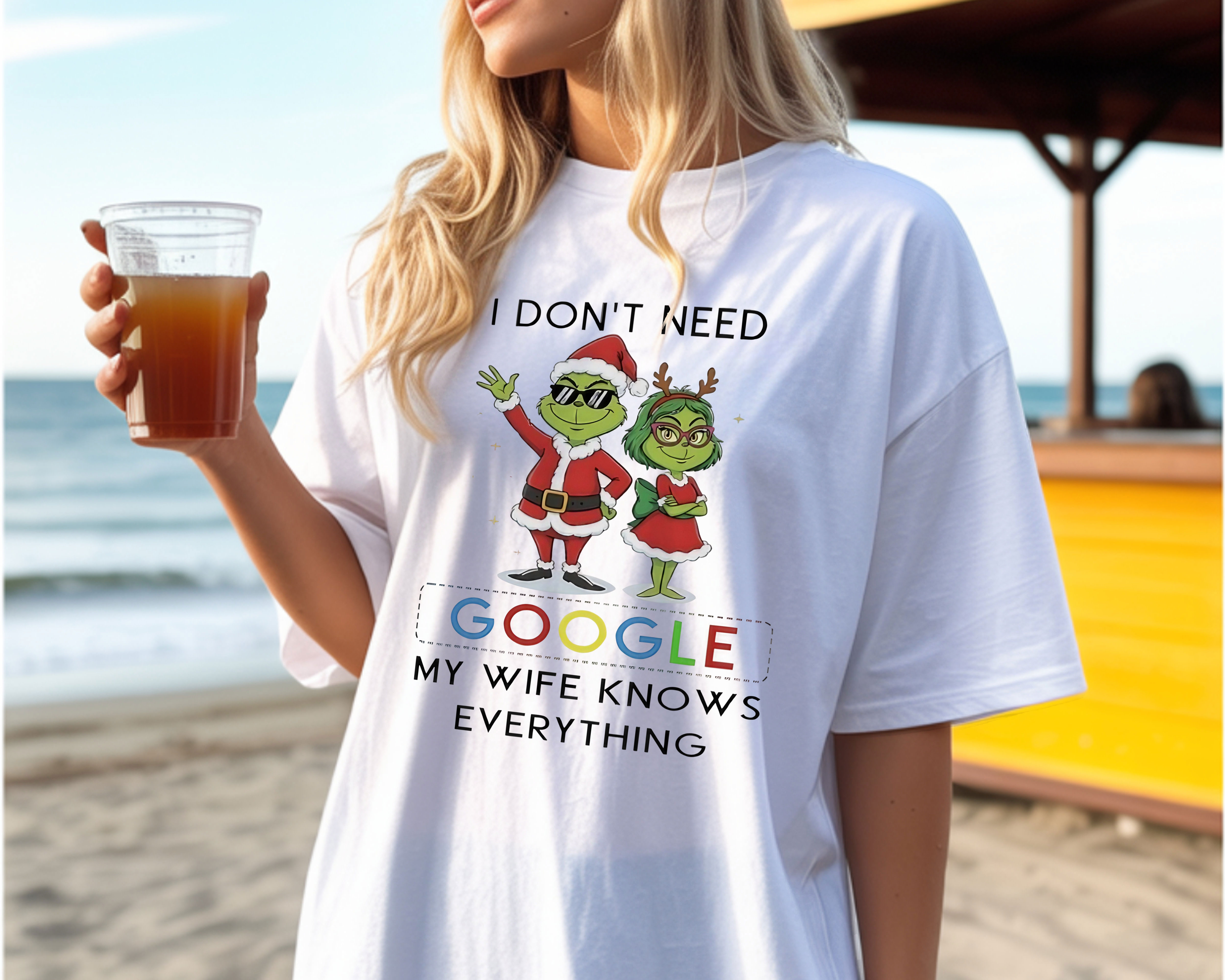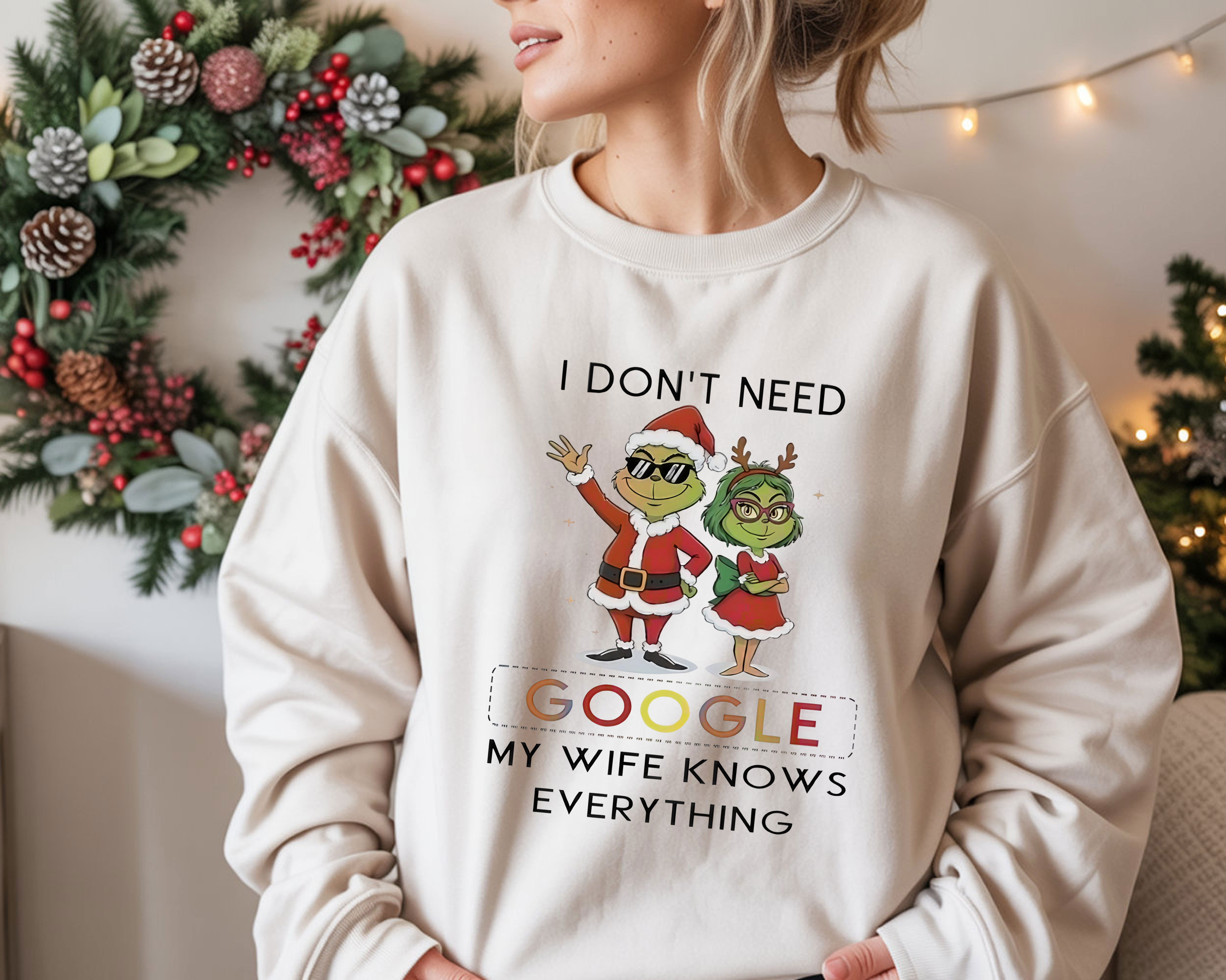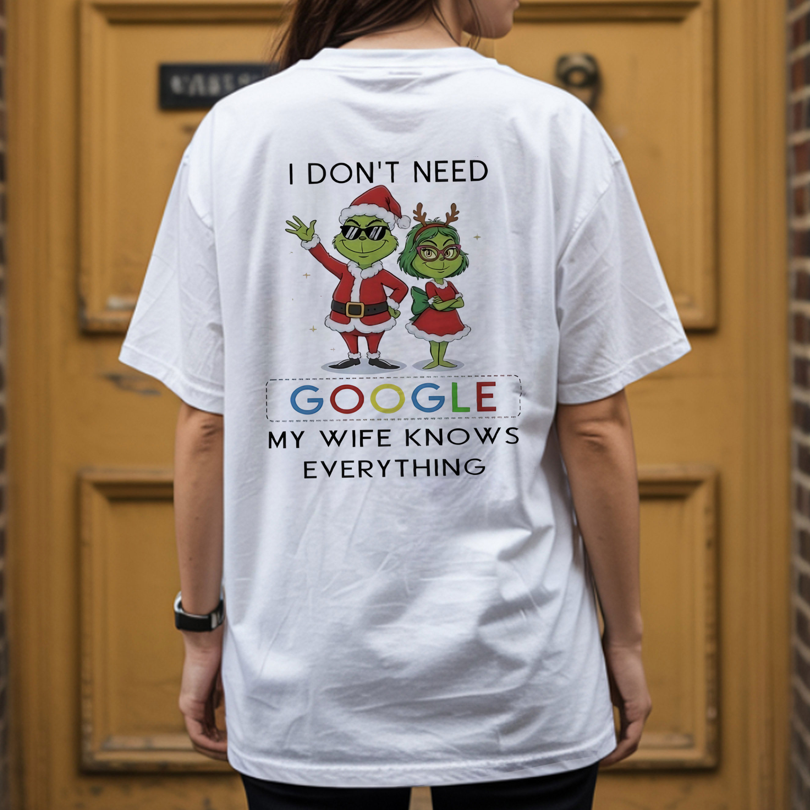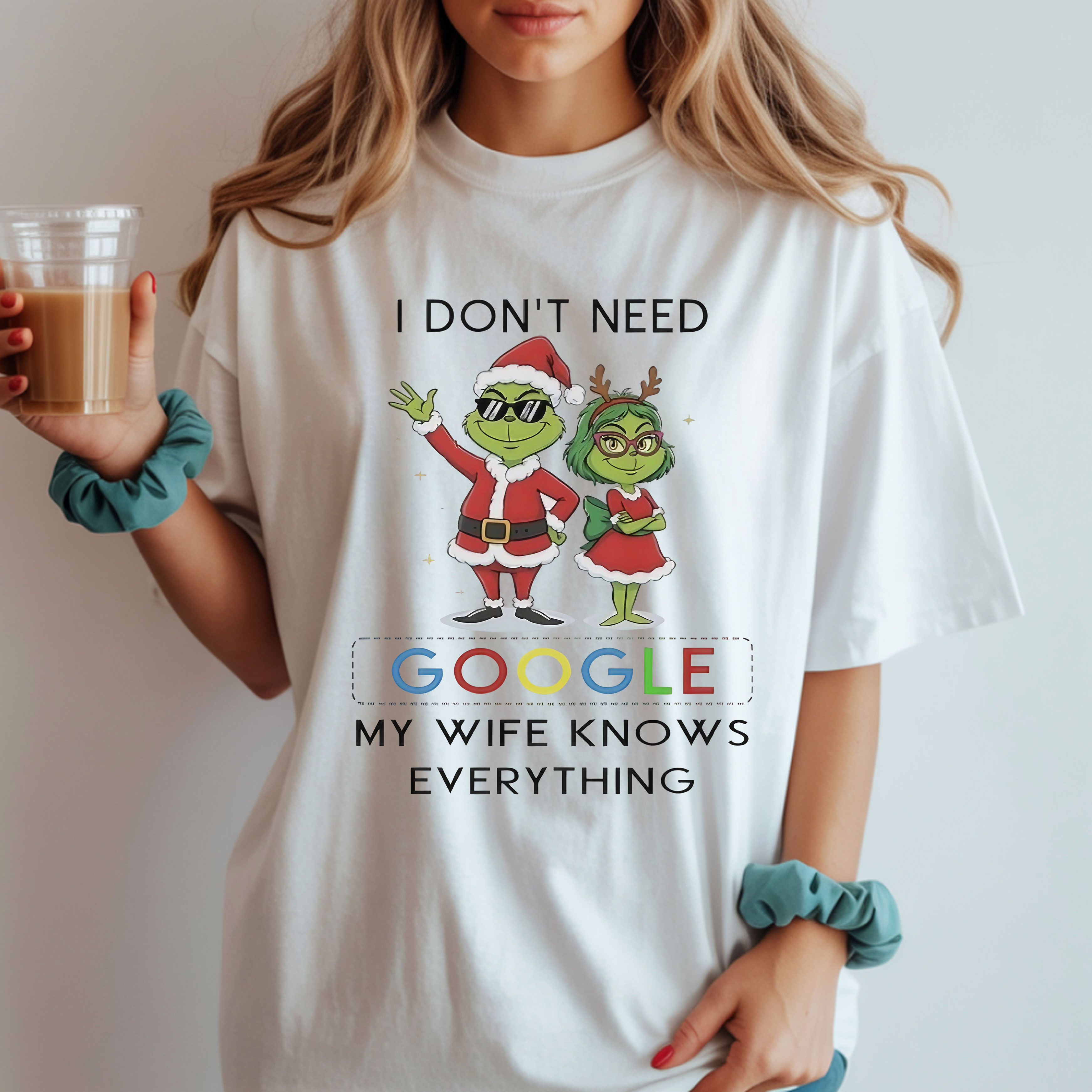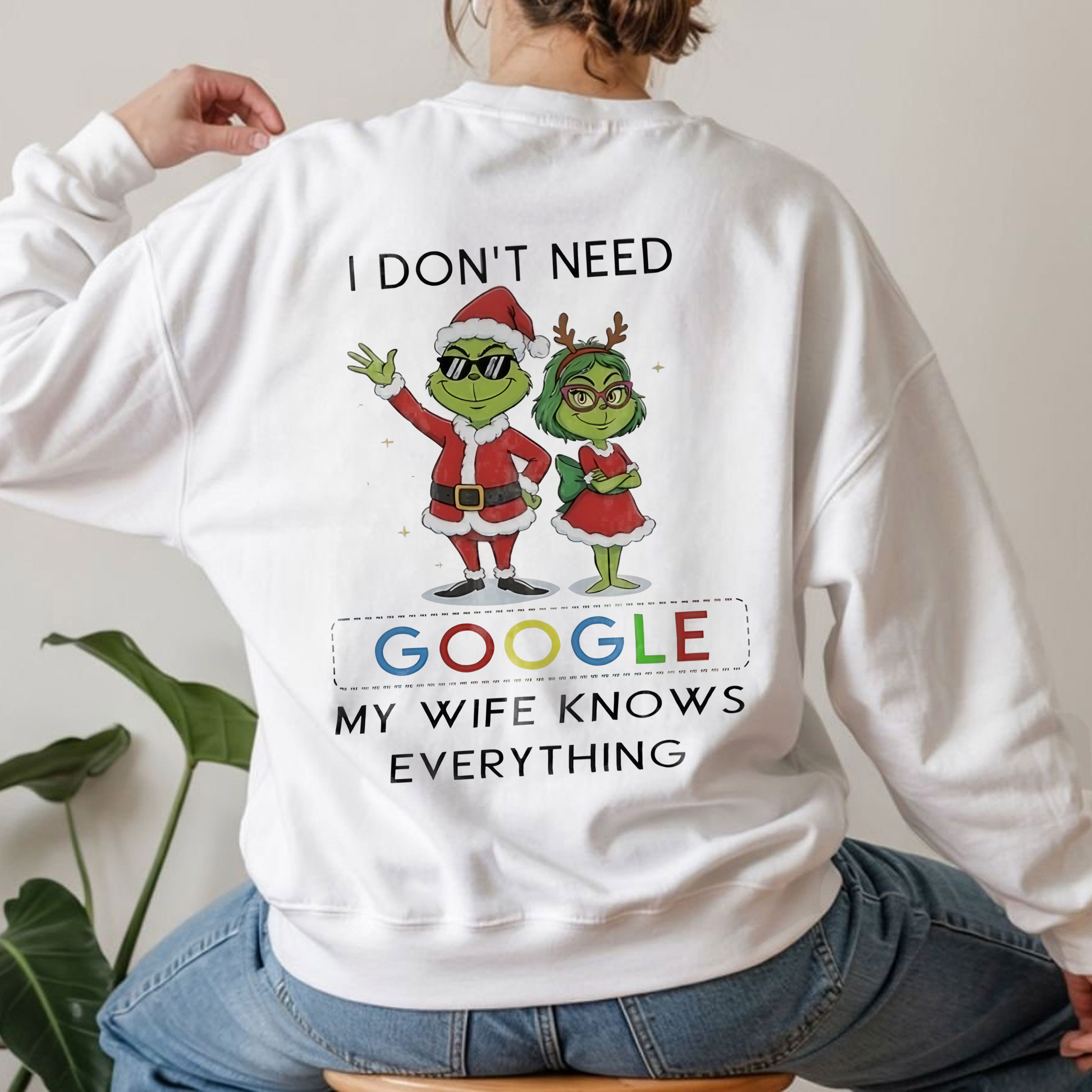 Grinch Quote Christmas T-Shirt – Funny I Don’t Need Google My Wife Knows Everything Vintage Bootleg Holiday Tee