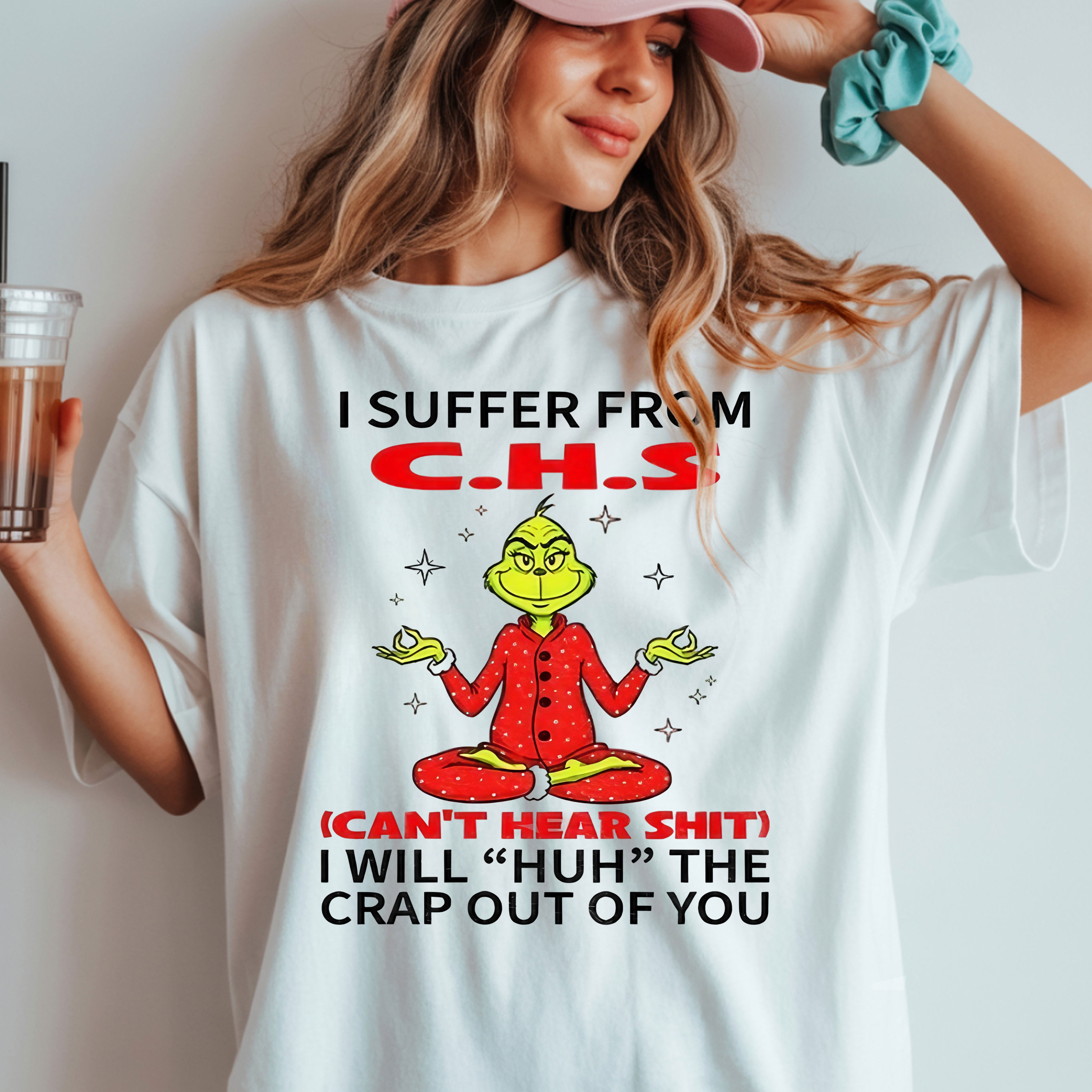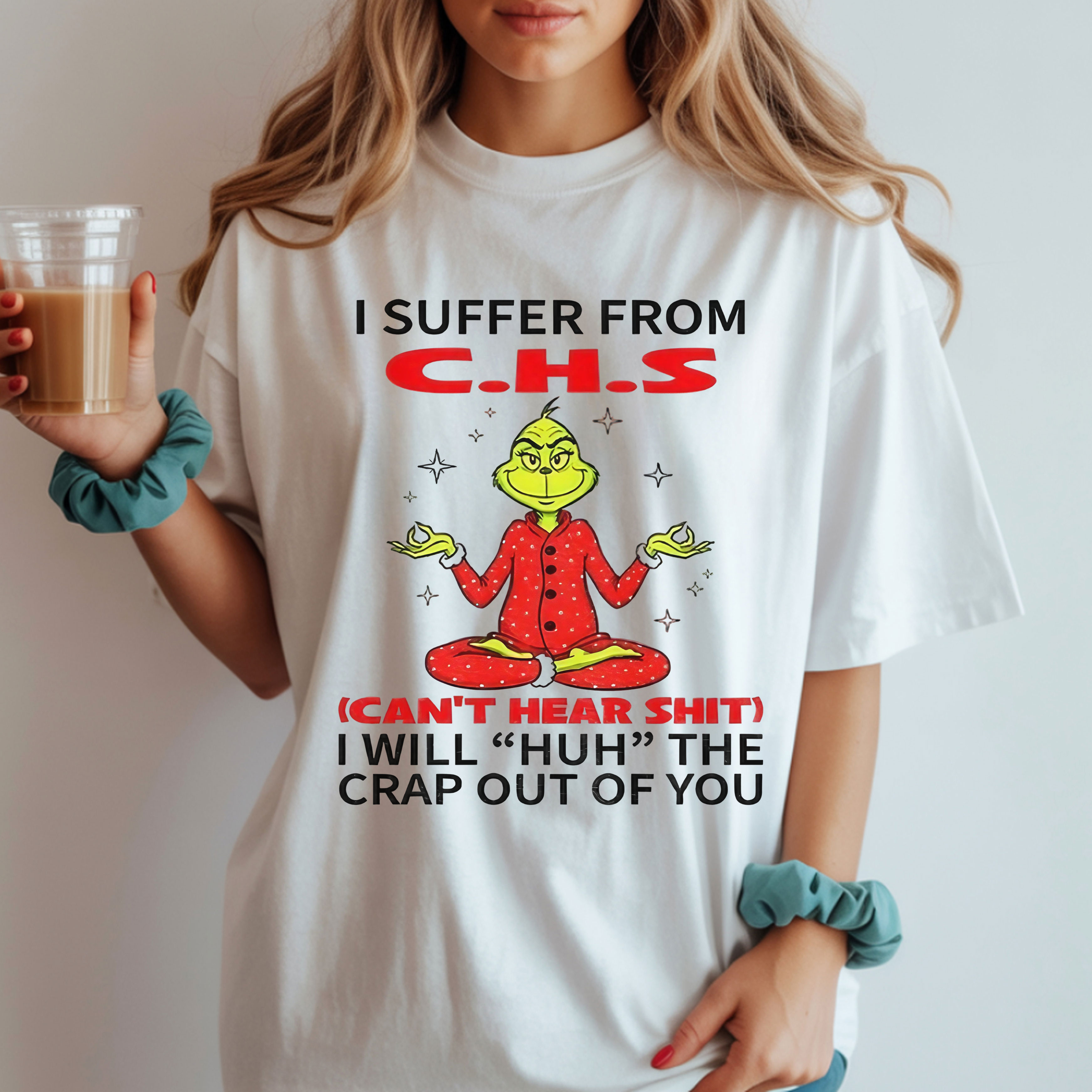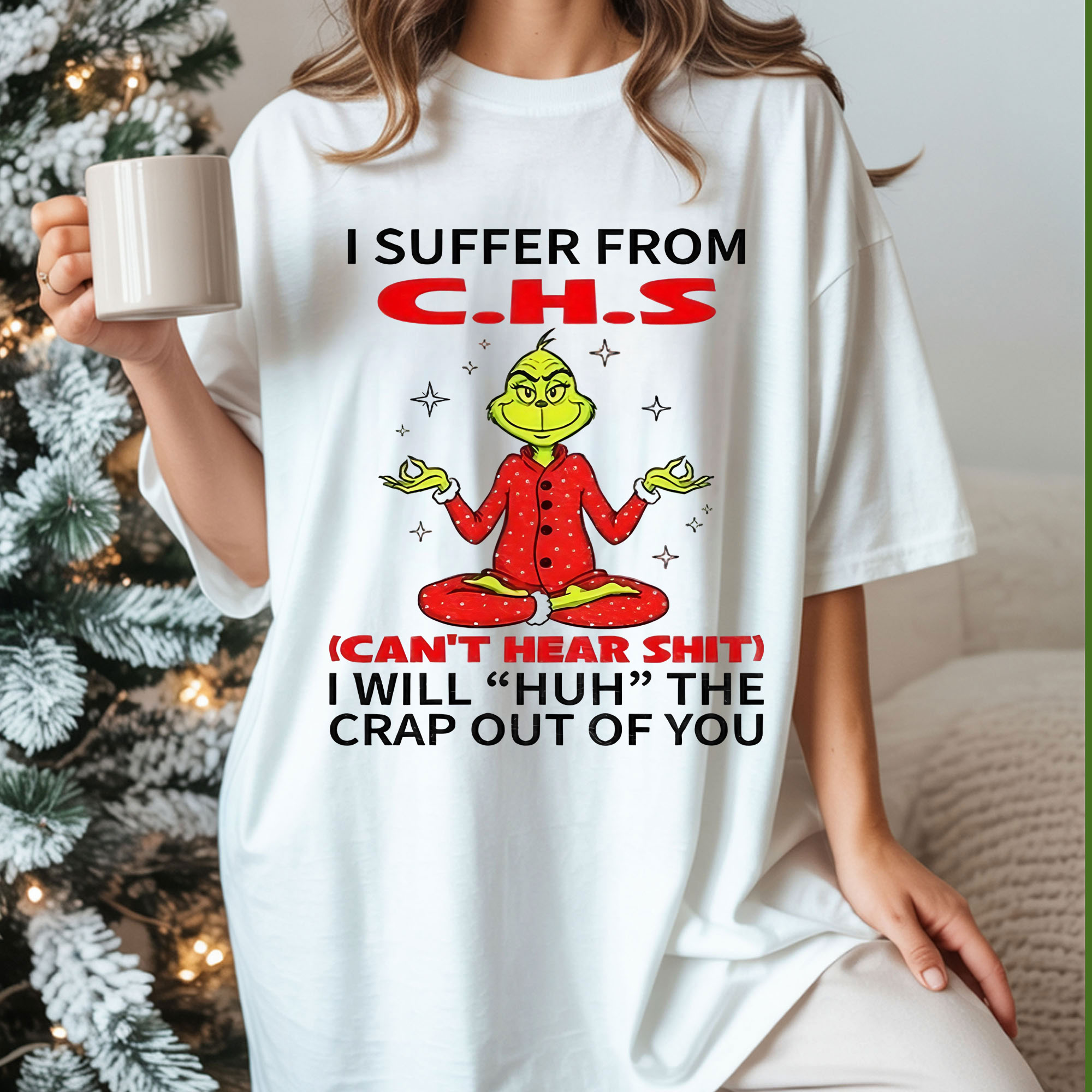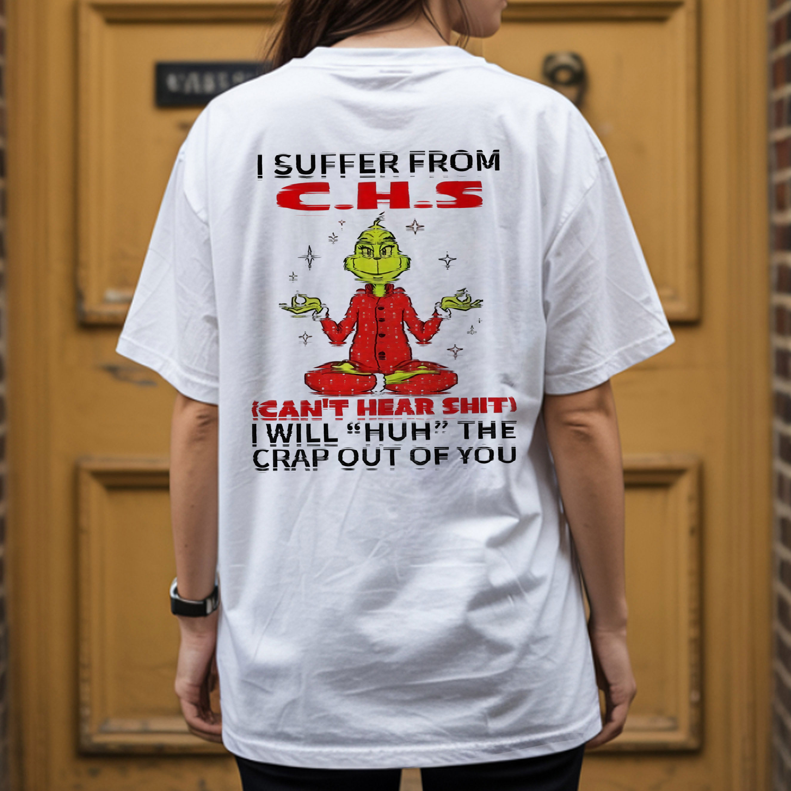 Grinch Quote Christmas T-Shirt – Funny I Suffer From C.H.S Can’t Hear Stuff Vintage Bootleg Holiday Tee
