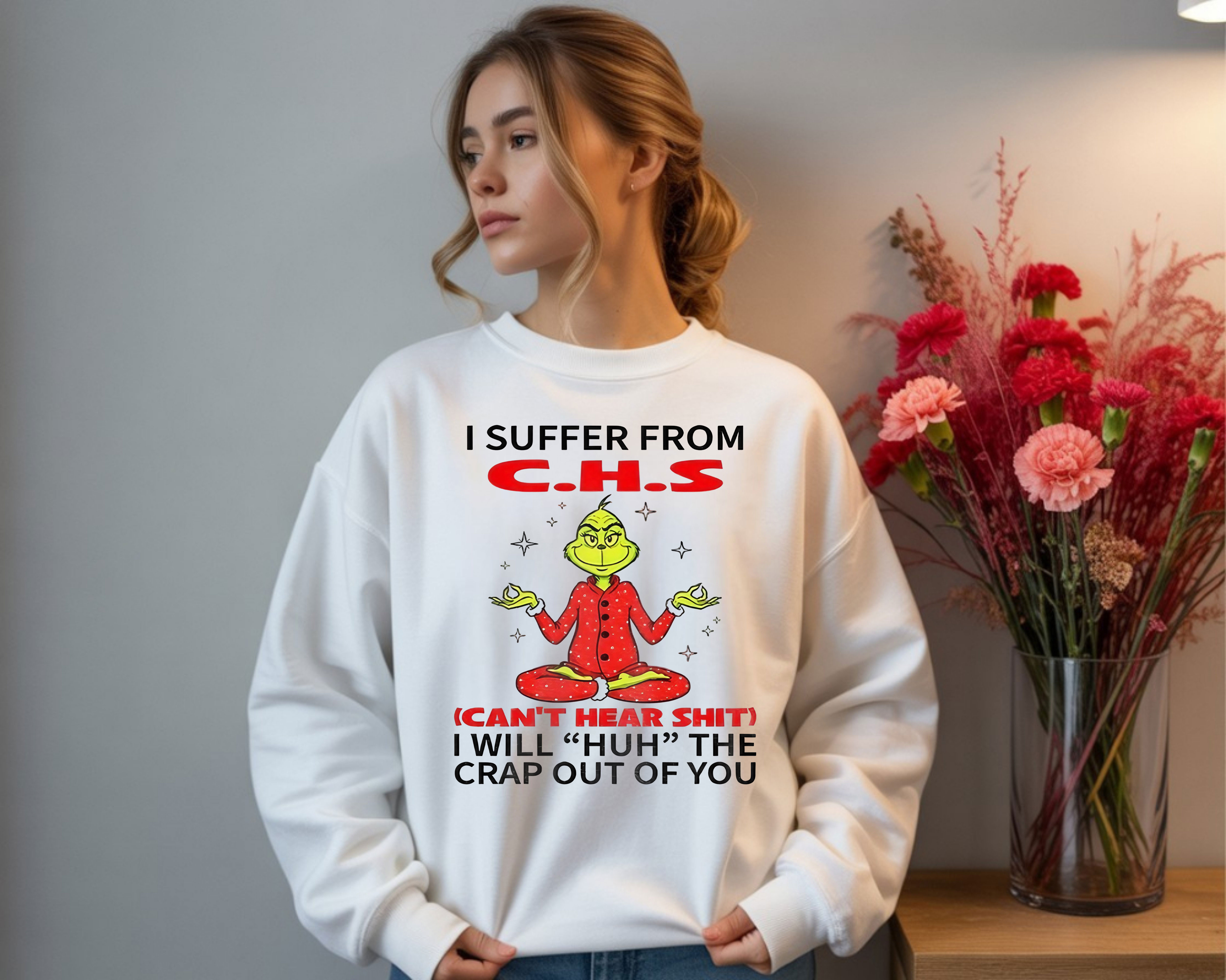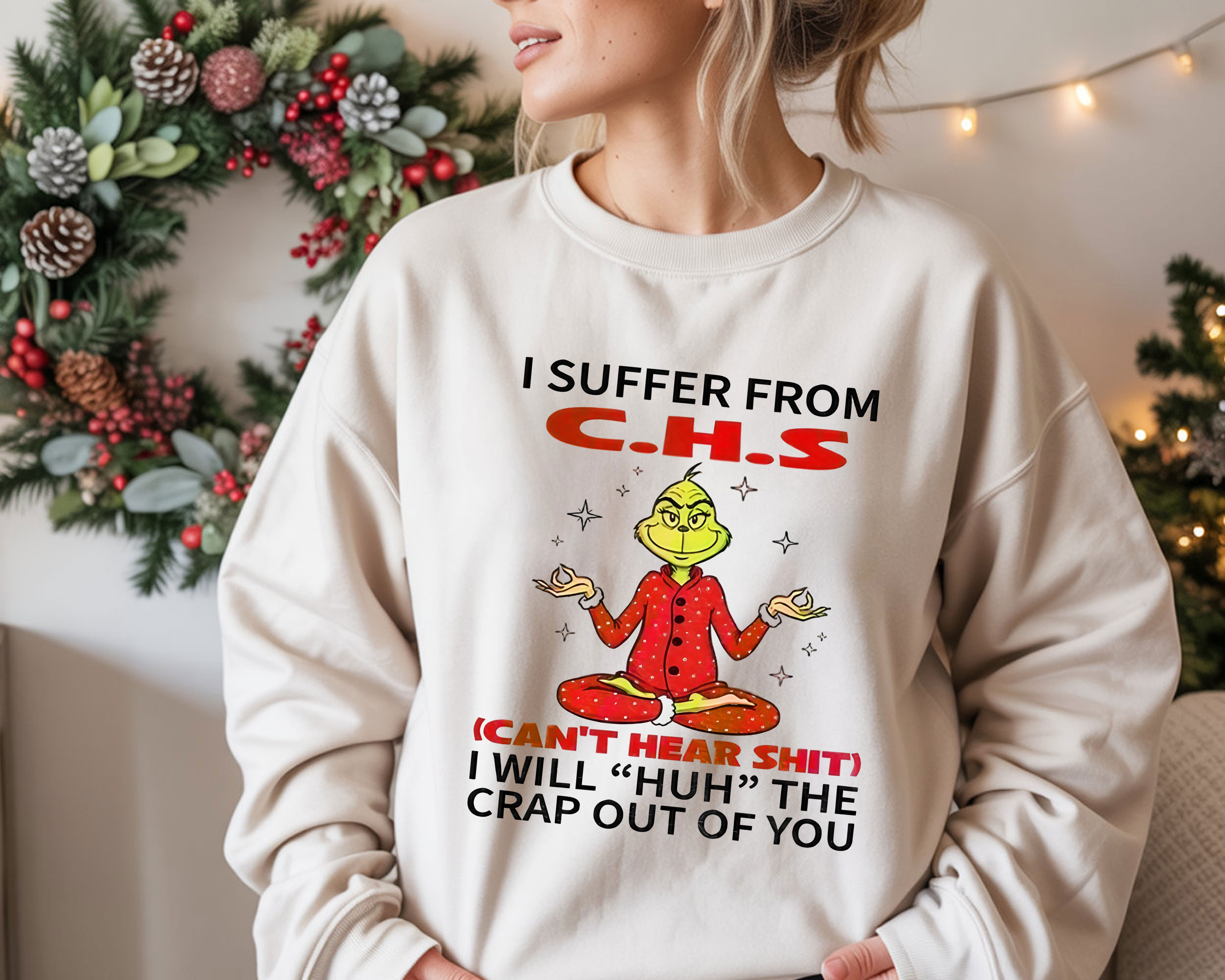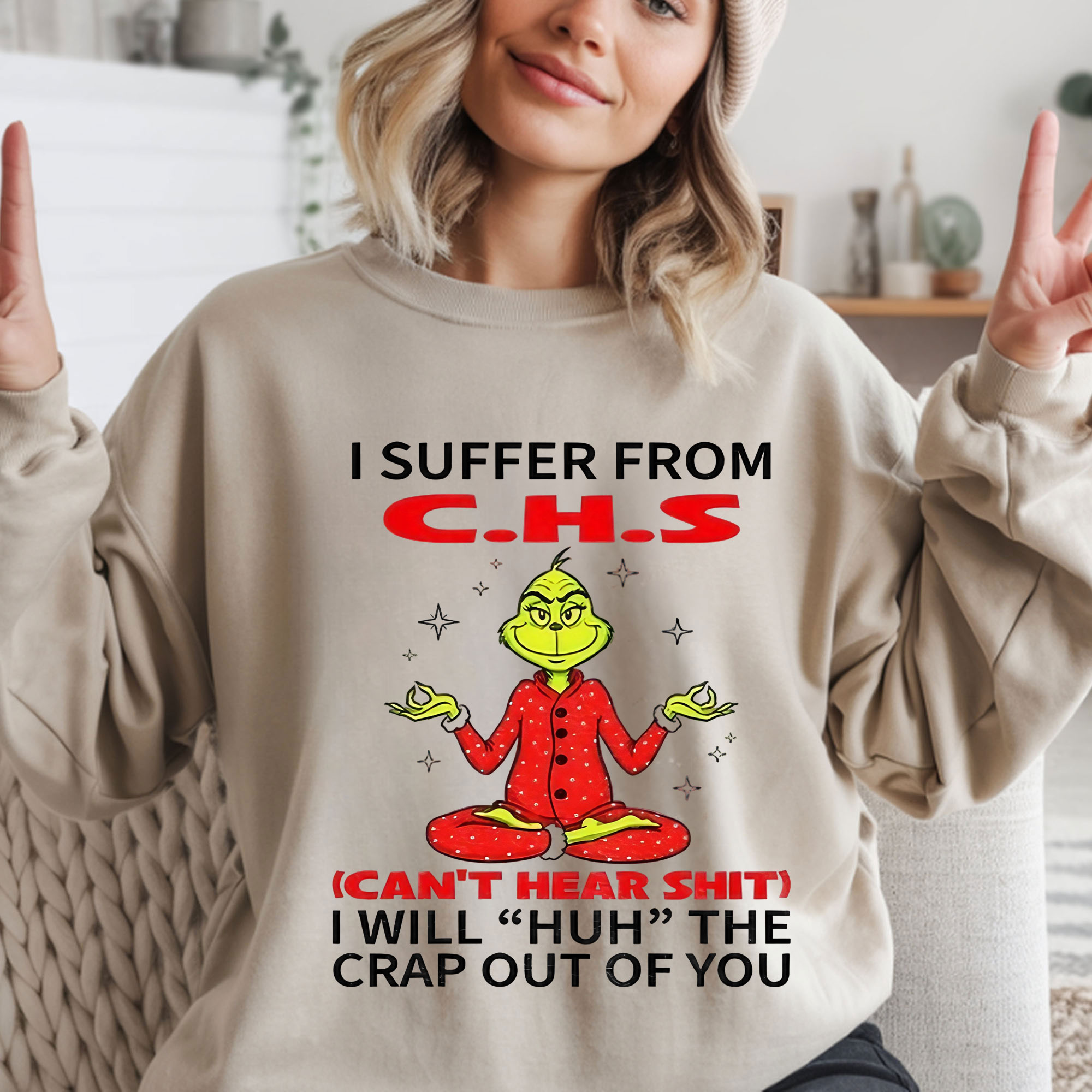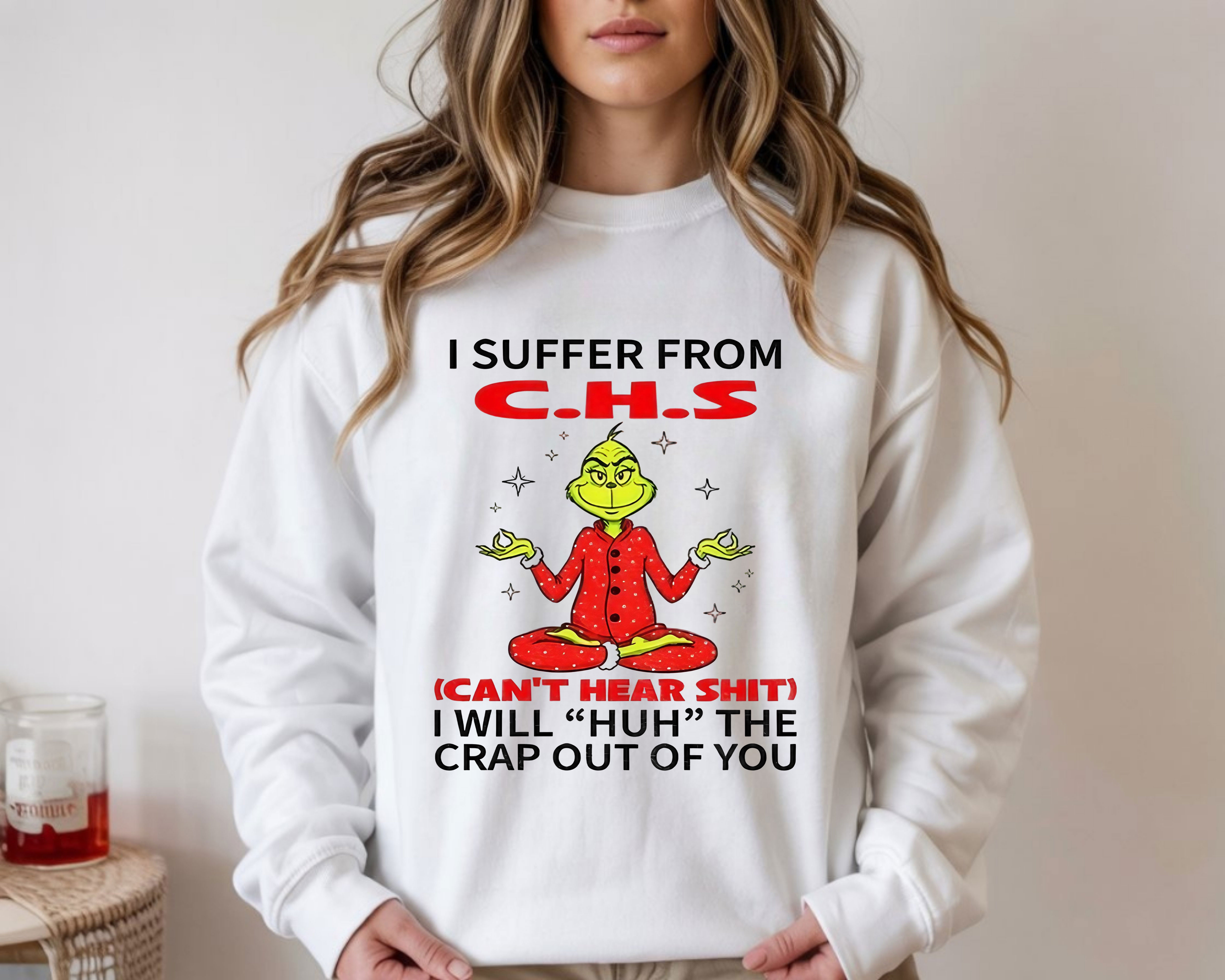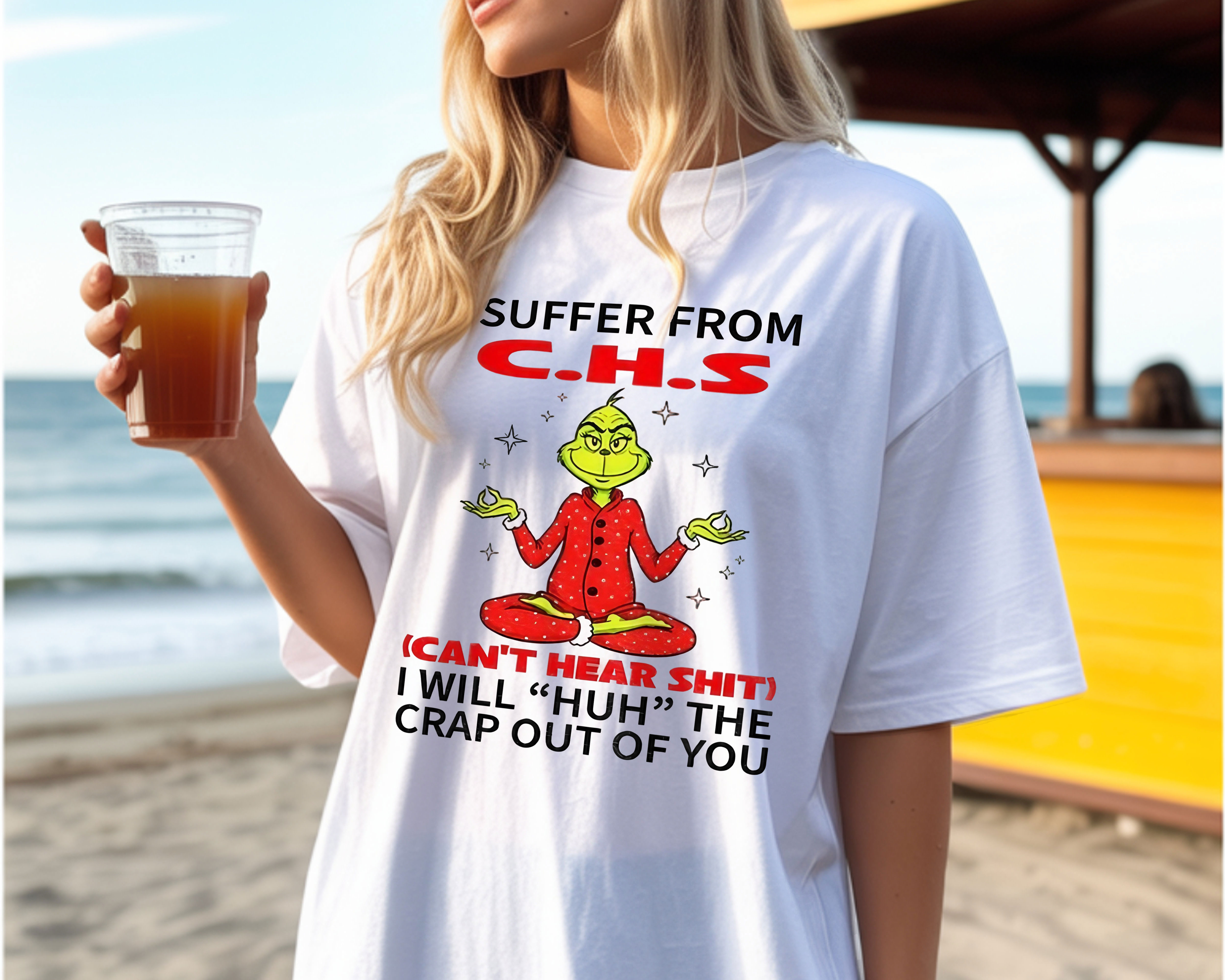 Grinch Quote Christmas T-Shirt – Funny I Suffer From C.H.S Can’t Hear Stuff Vintage Bootleg Holiday Tee