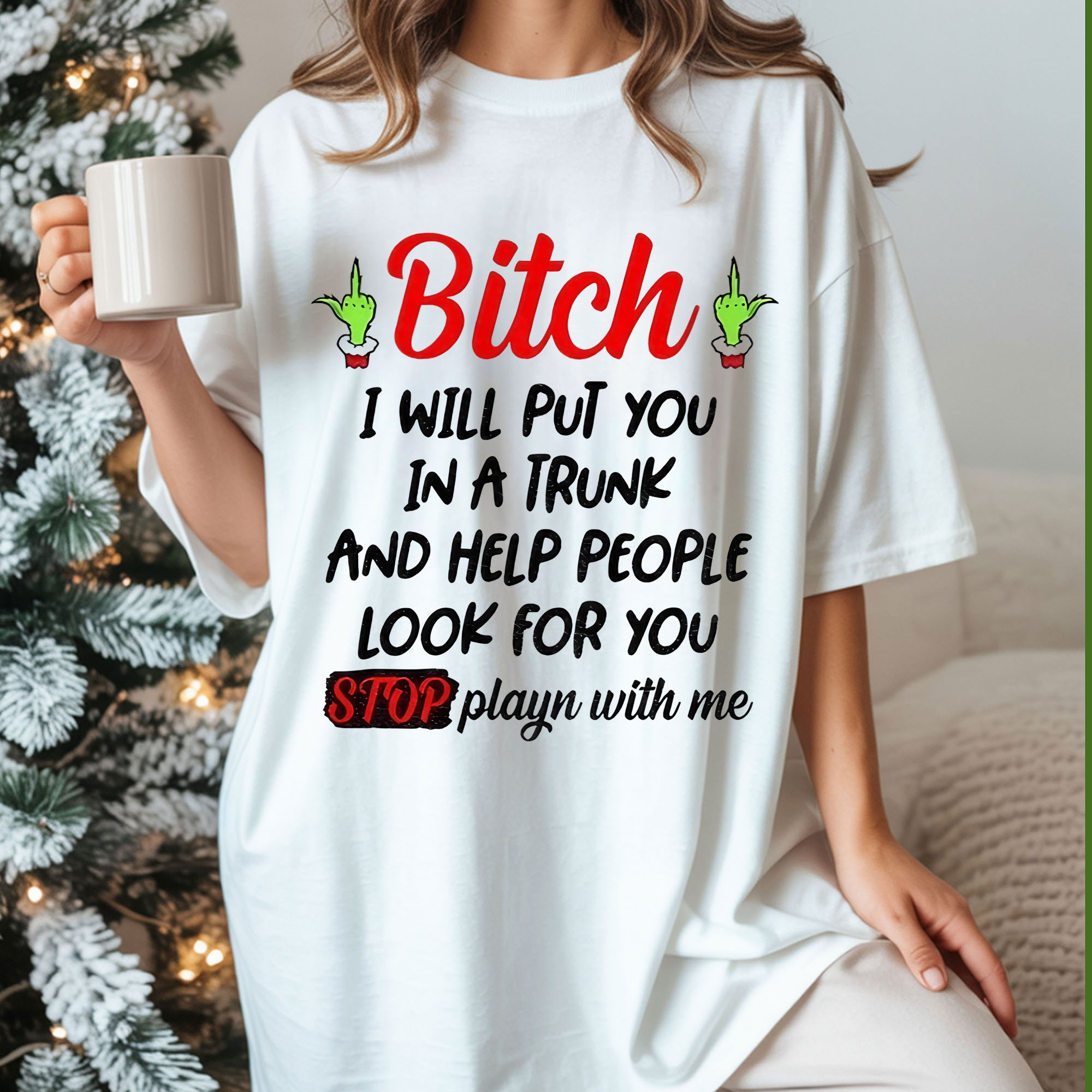 Grinch Quote Christmas T-Shirt – Funny I’ll Put You In A Trunk Stop Playing With Me Vintage Bootleg Tee