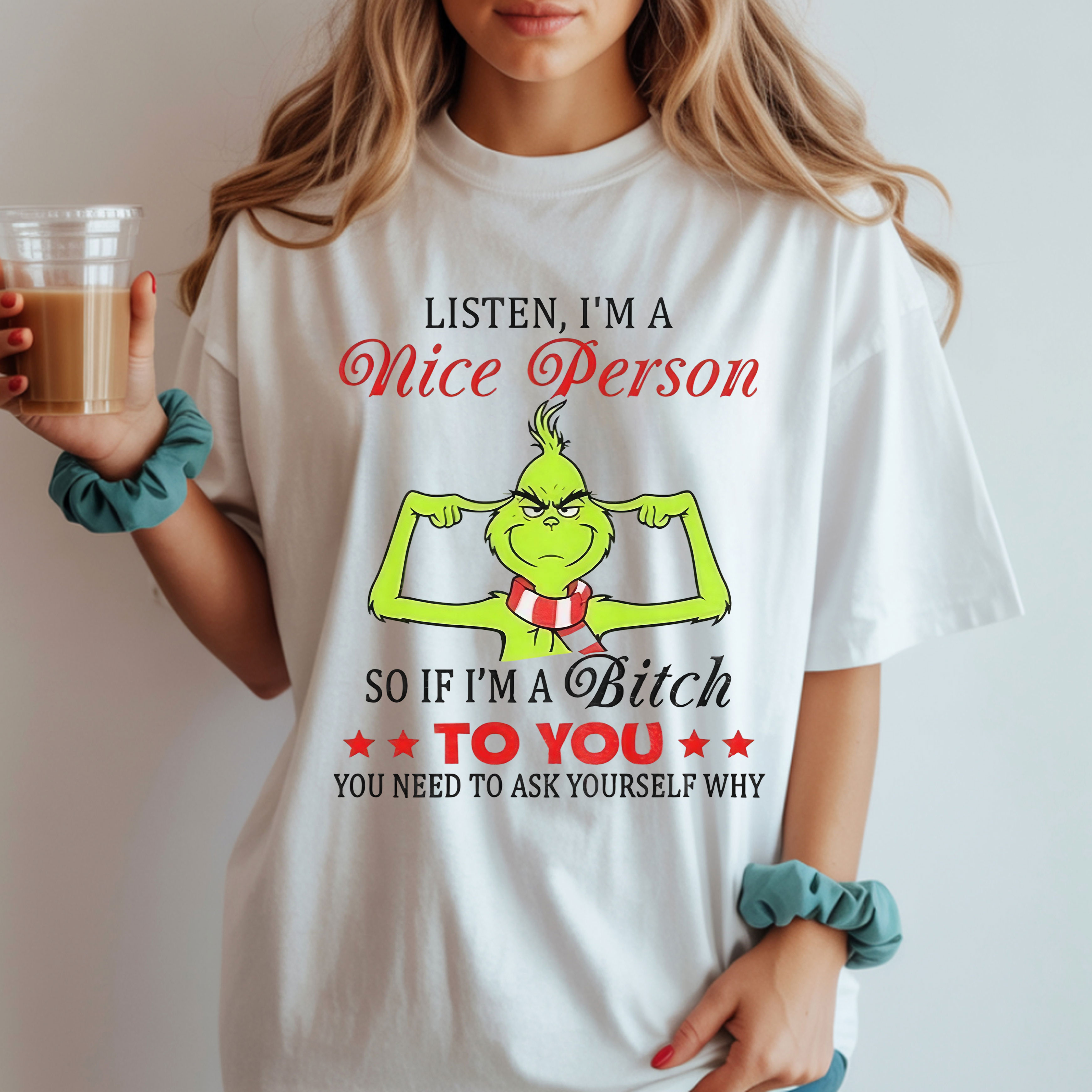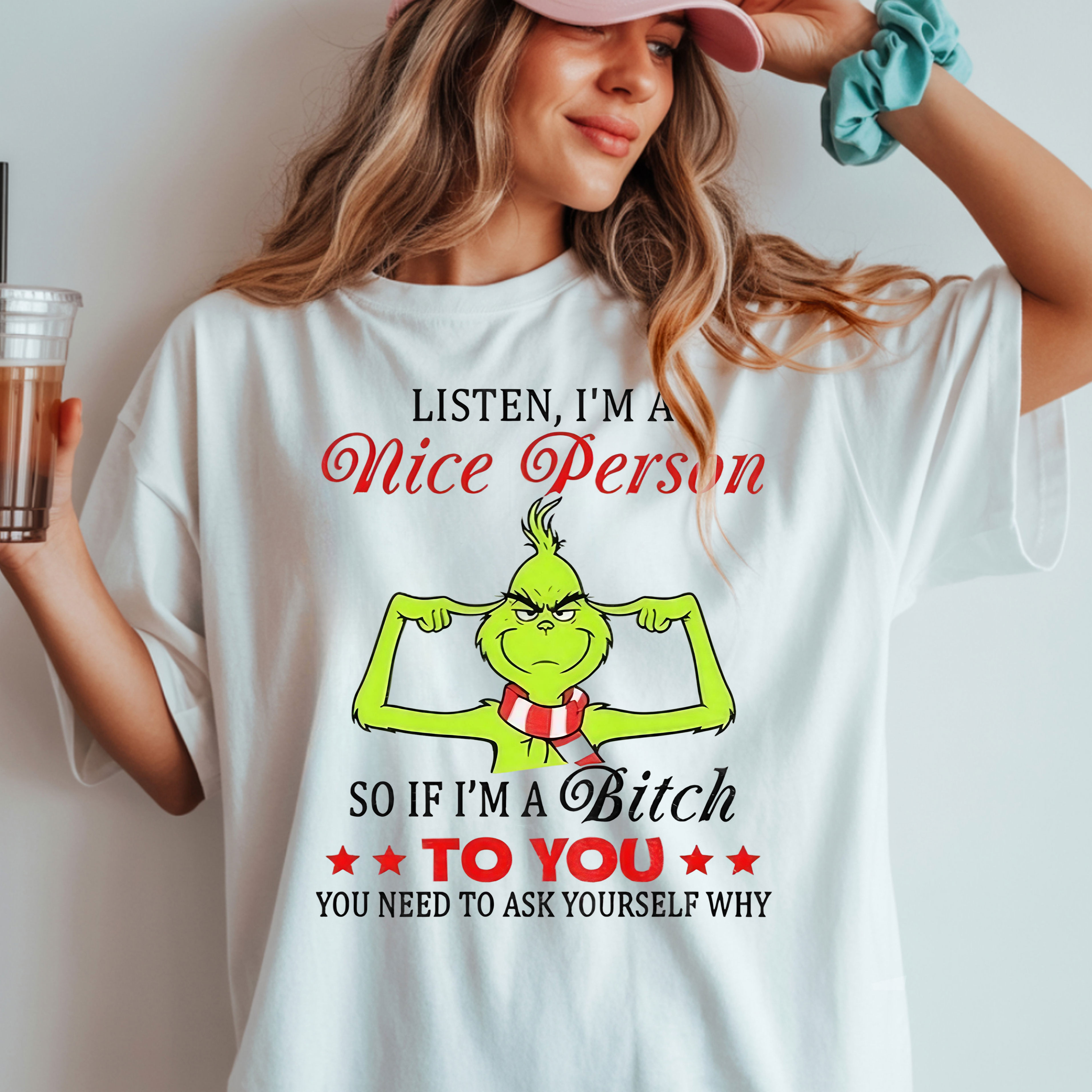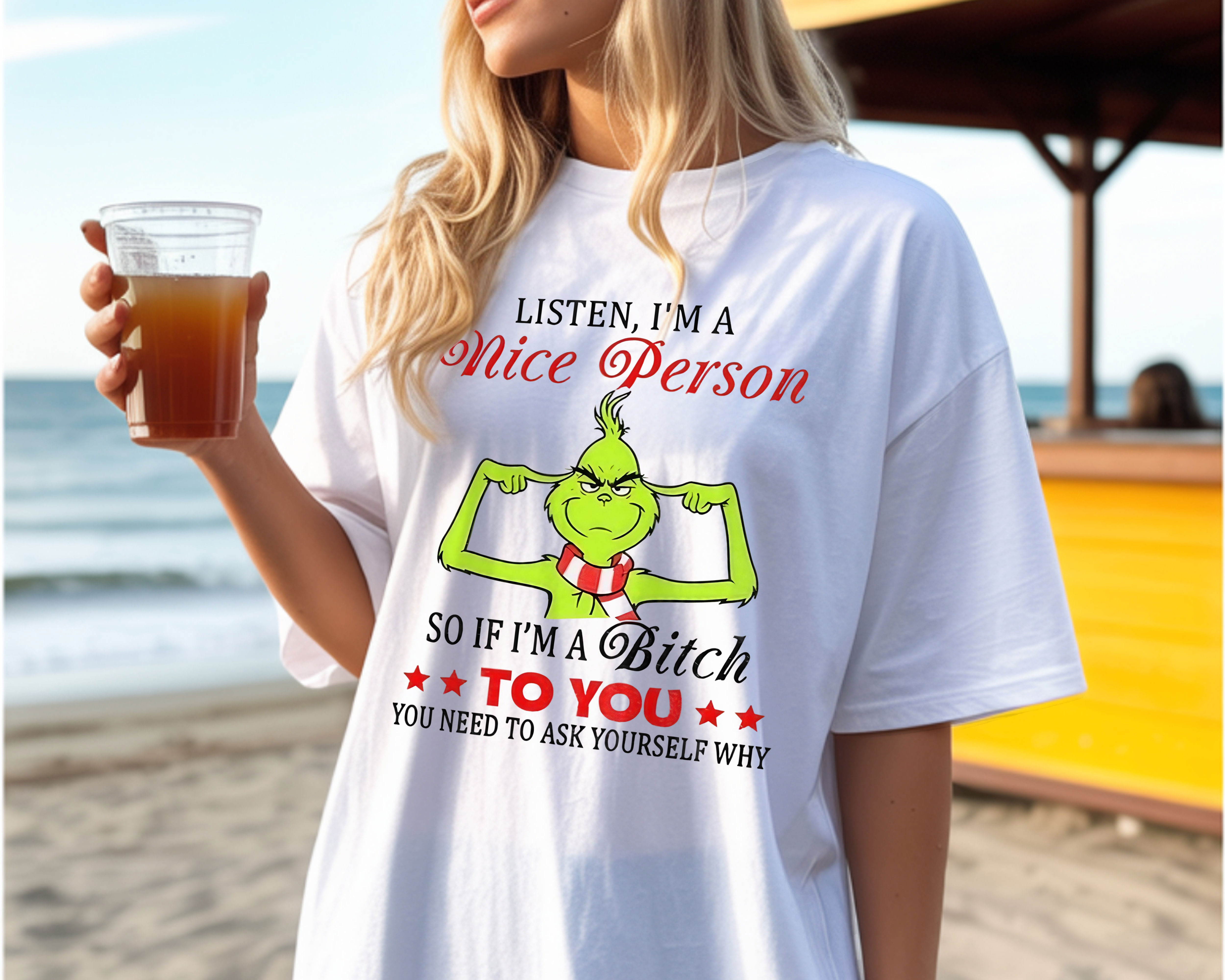 Grinch Quote Christmas T-Shirt – Funny I’m A Nice Person So If I’m A Btch To You Ask Yourself Why Vintage Bootleg Holiday Tee
