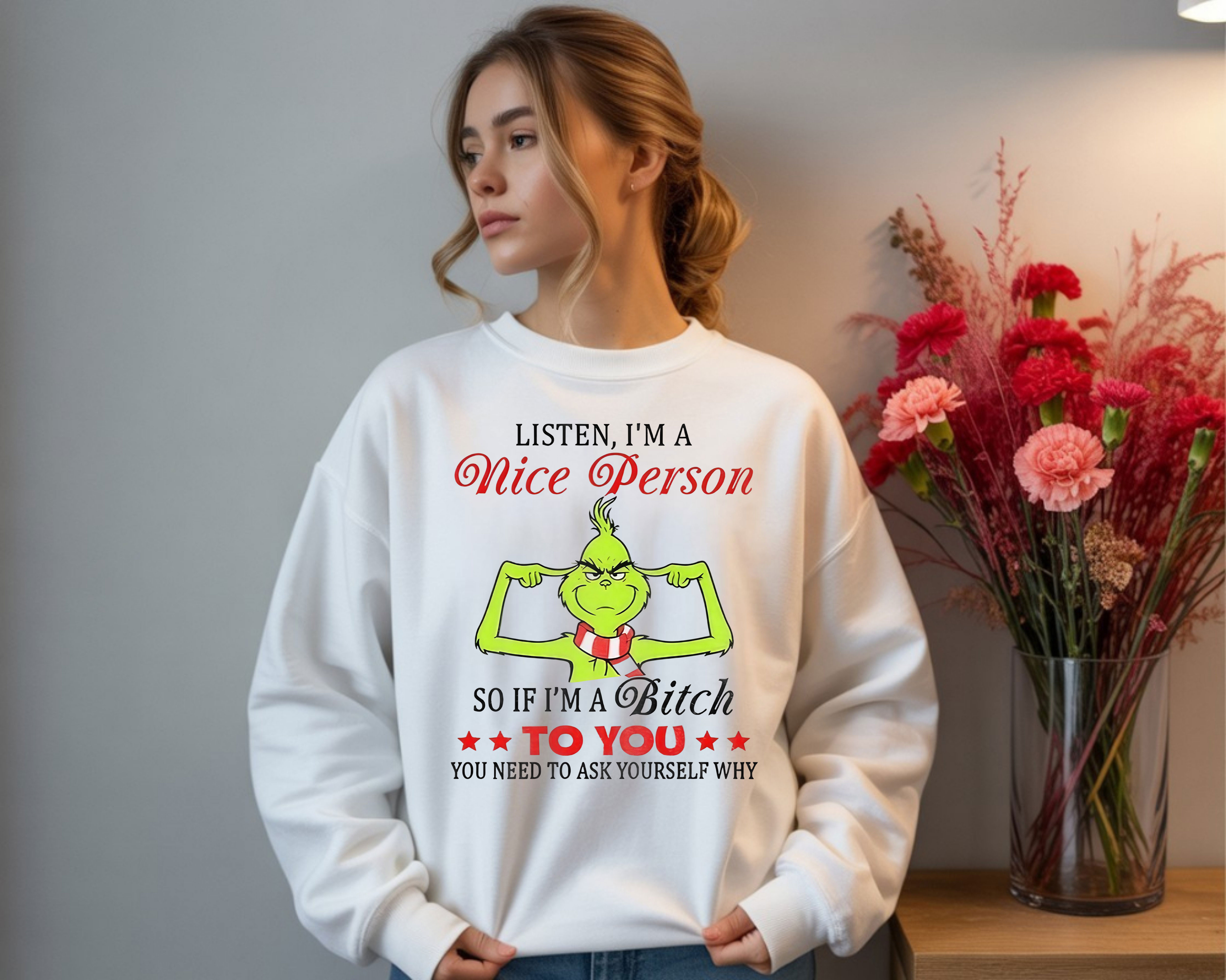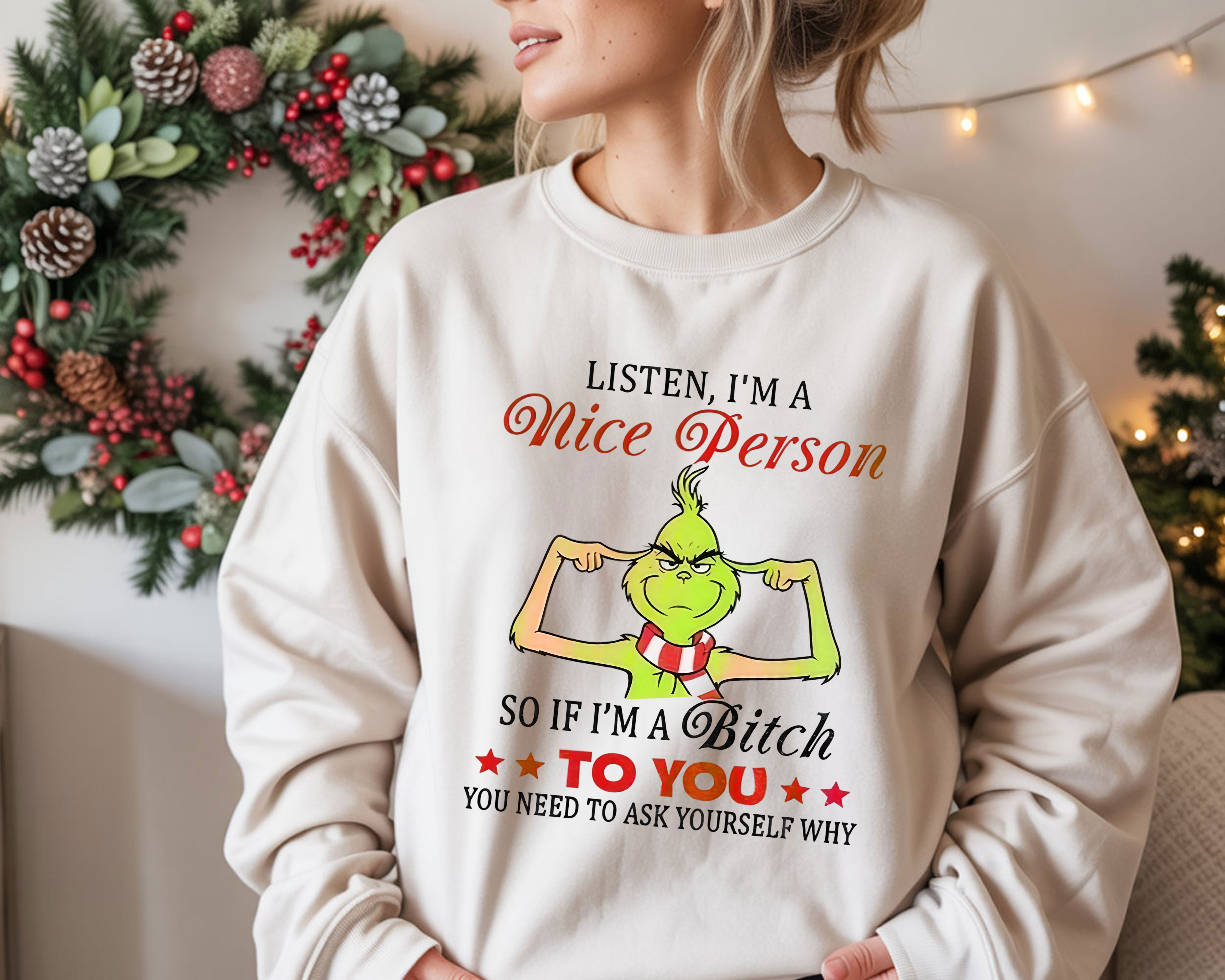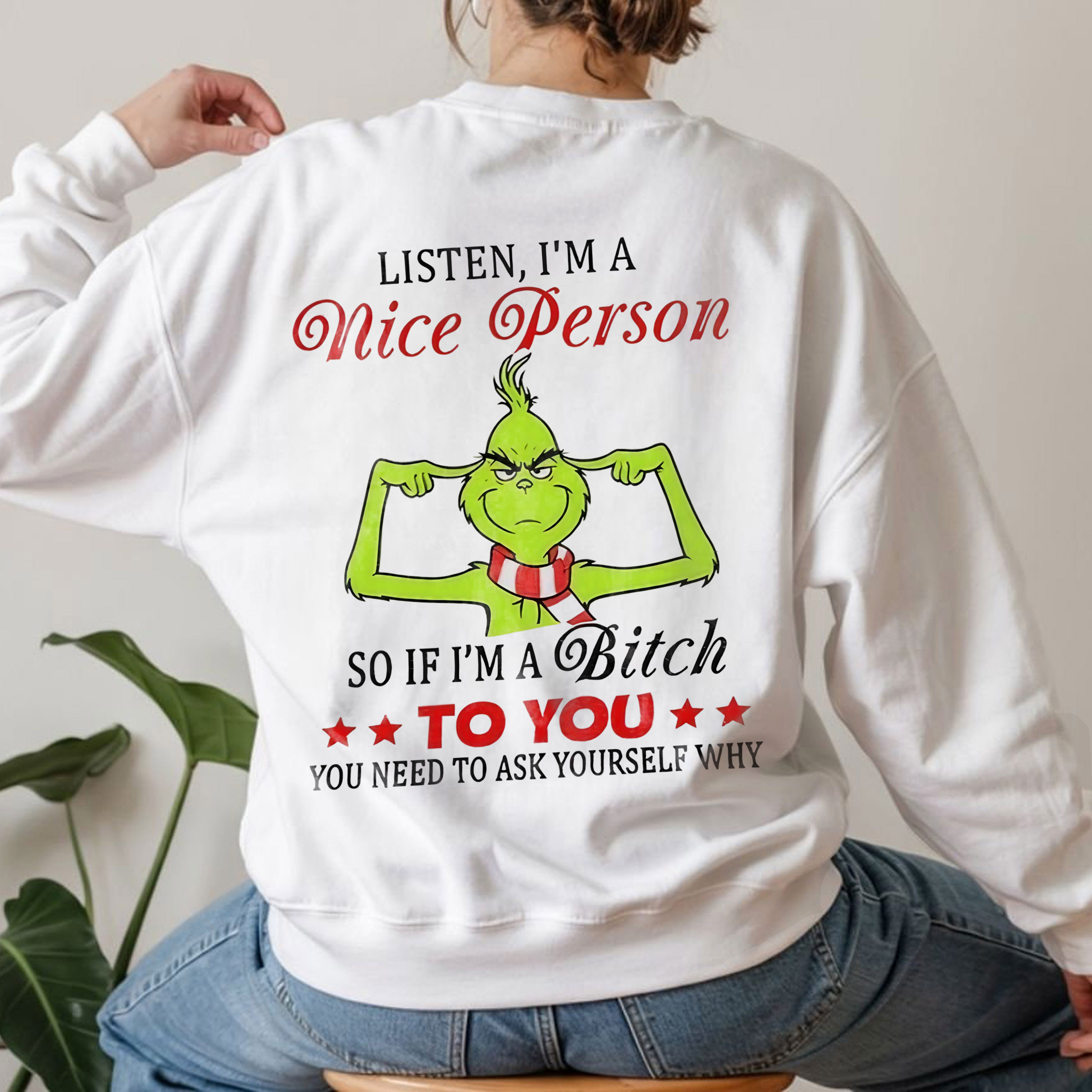 Grinch Quote Christmas T-Shirt – Funny I’m A Nice Person So If I’m A Btch To You Ask Yourself Why Vintage Bootleg Holiday Tee