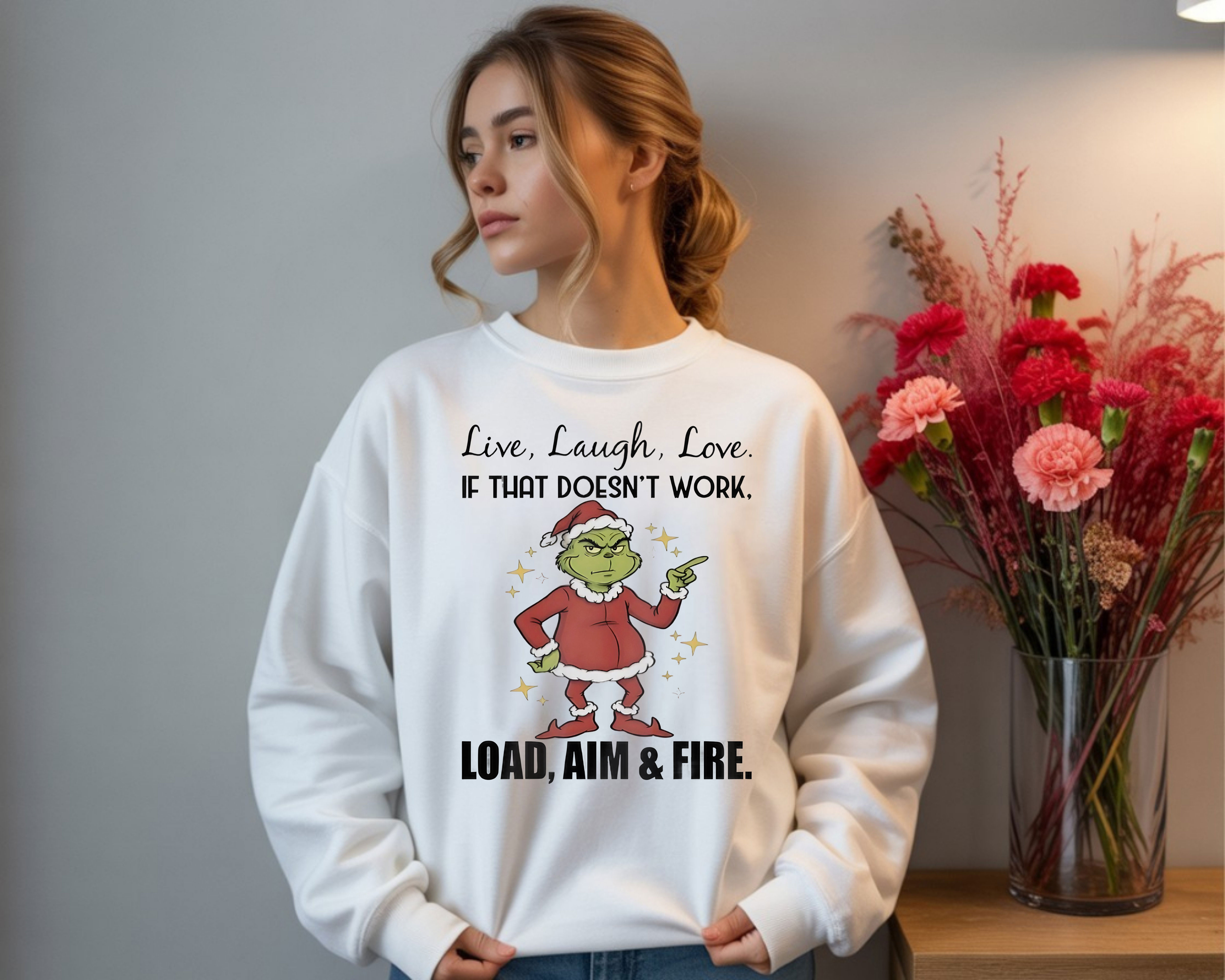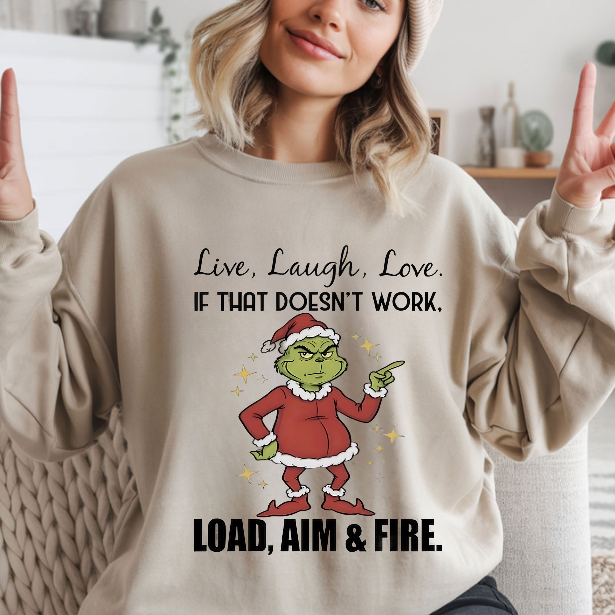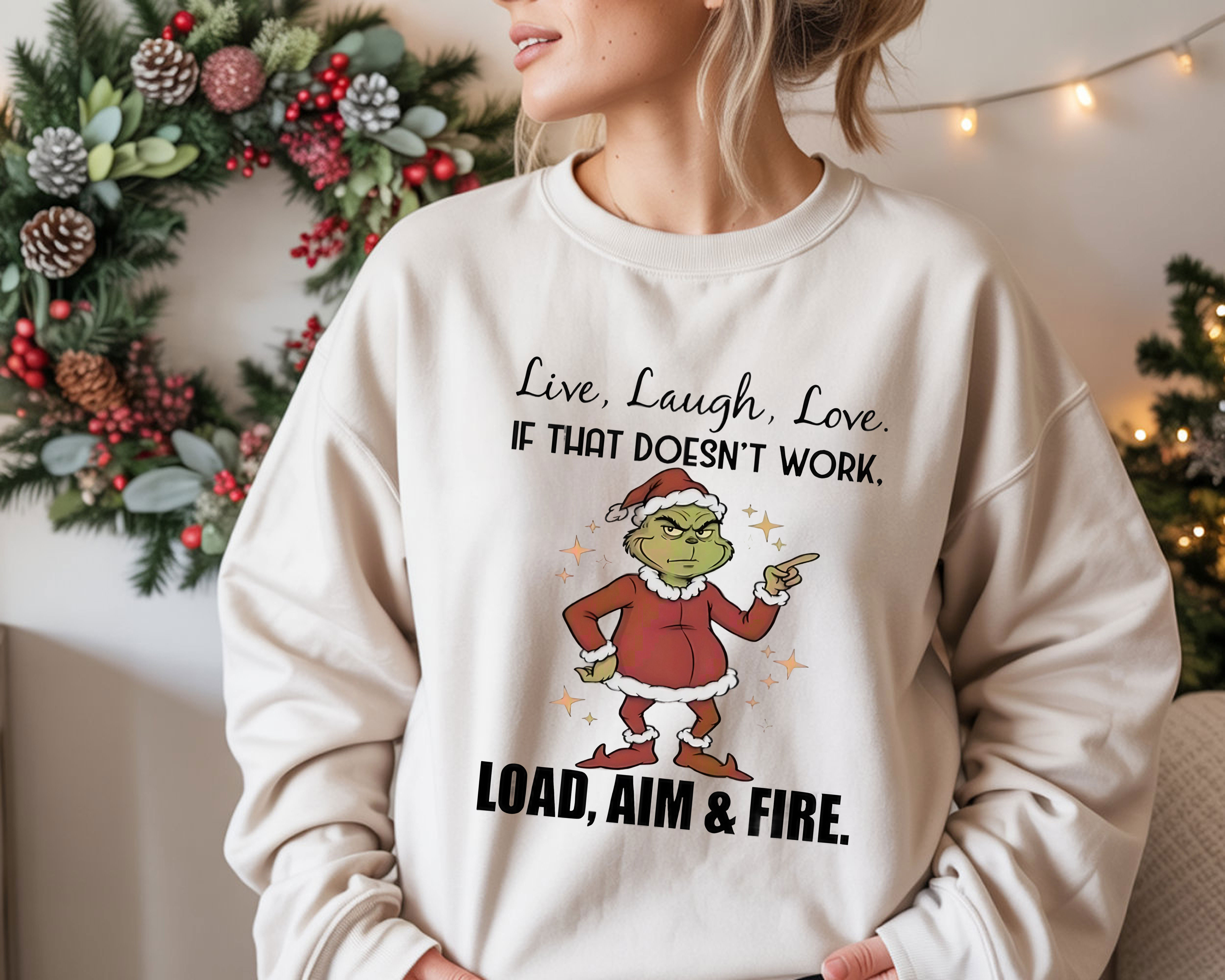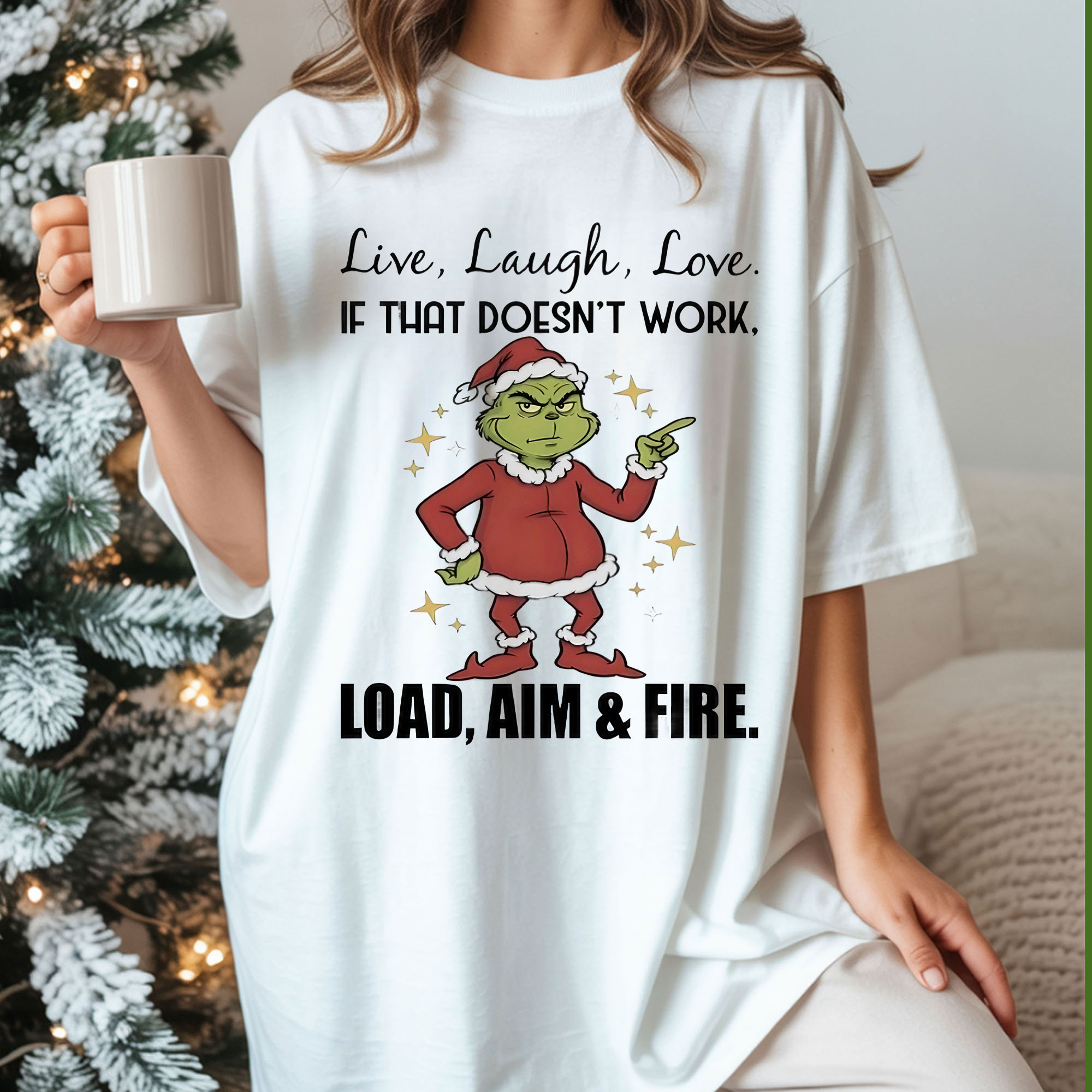 Grinch Quote Christmas T-Shirt – Funny Live Laugh Love If That Doesn’t Work Load Aim And Fire Vintage Bootleg Holiday Tee