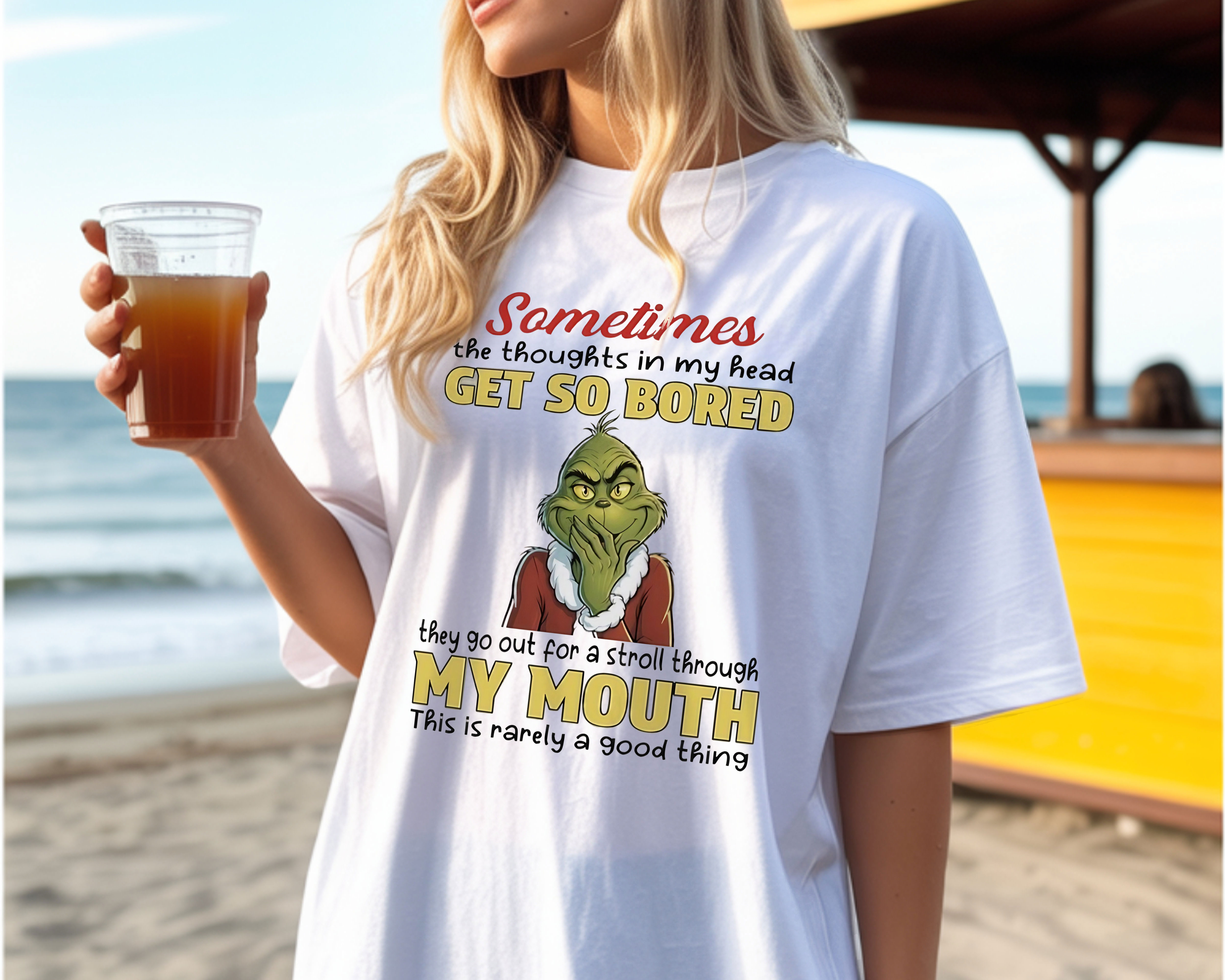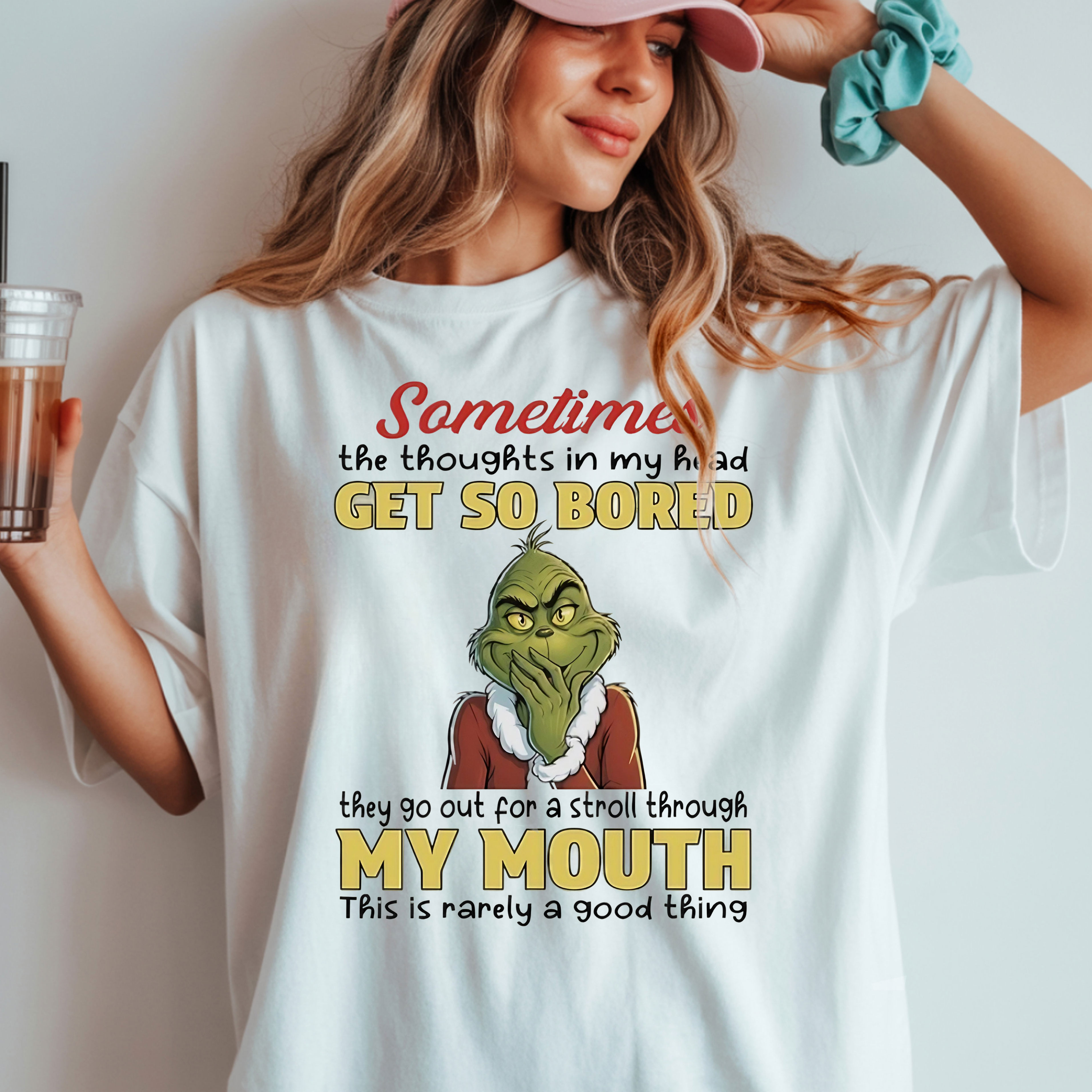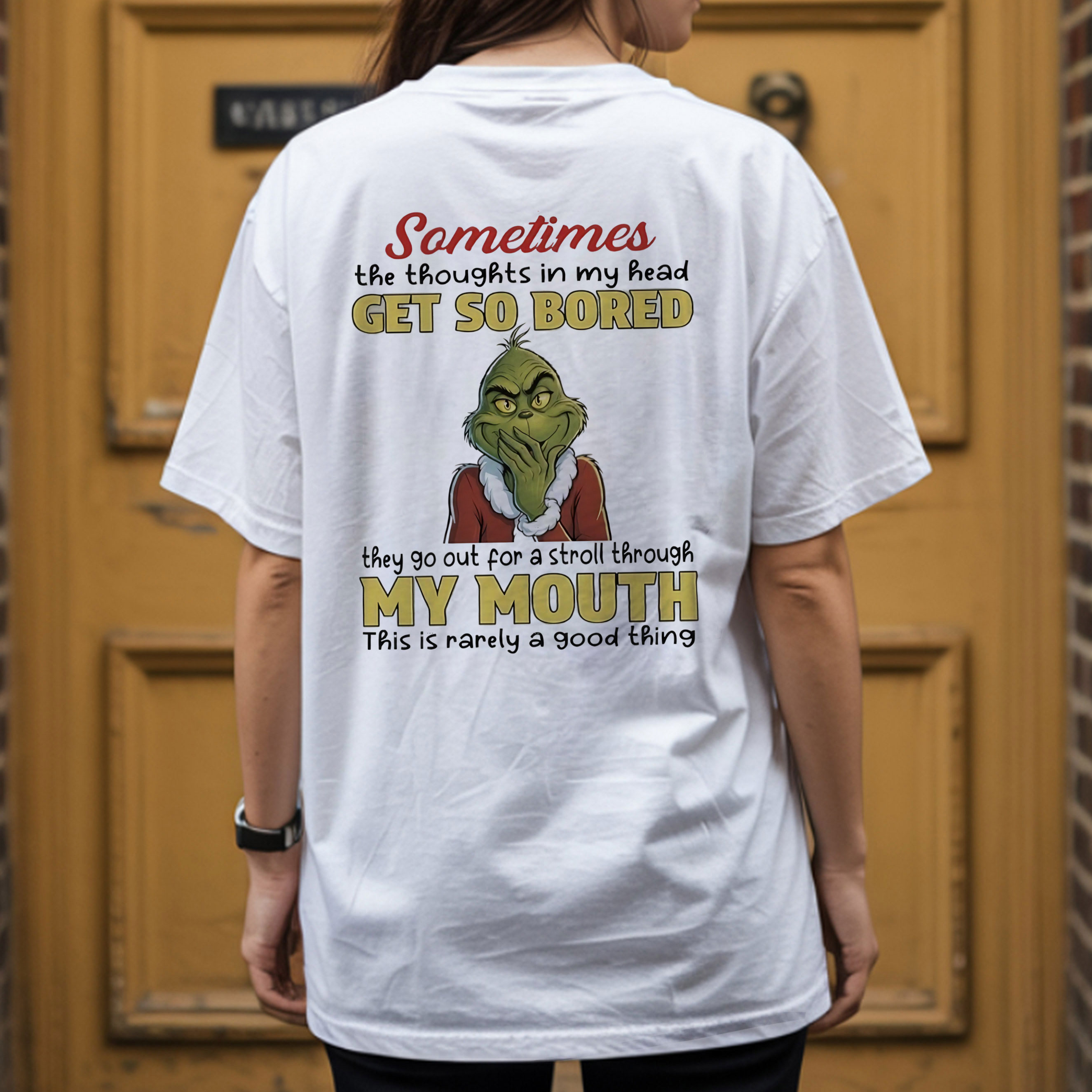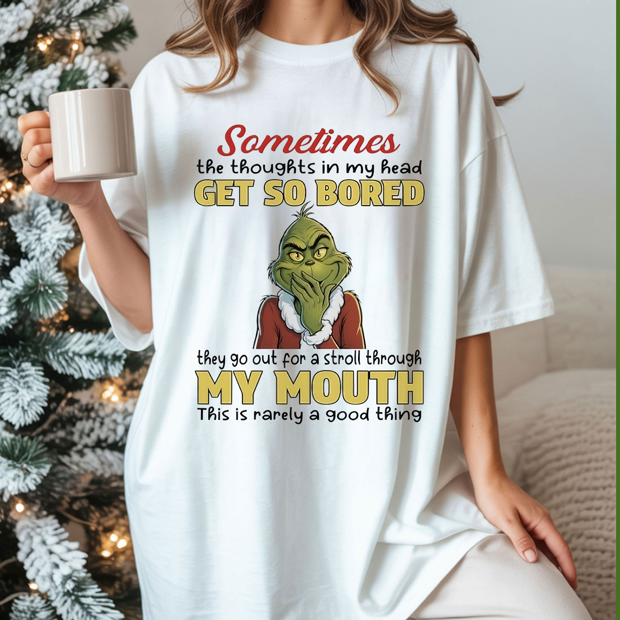 Grinch Quote Christmas T-Shirt – Funny Sometimes The Thoughts In My Head Go Out For A Stroll Vintage Bootleg Holiday Tee