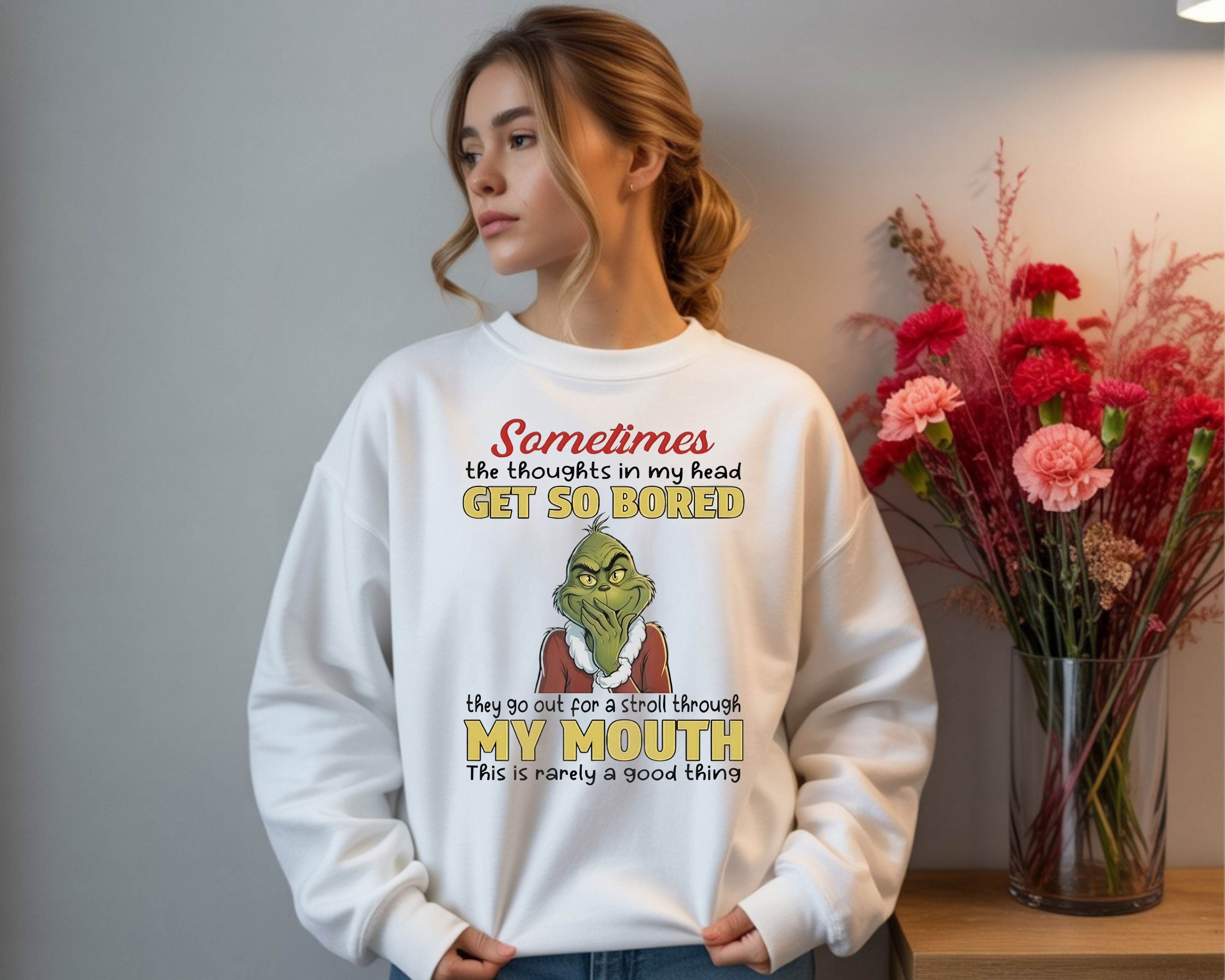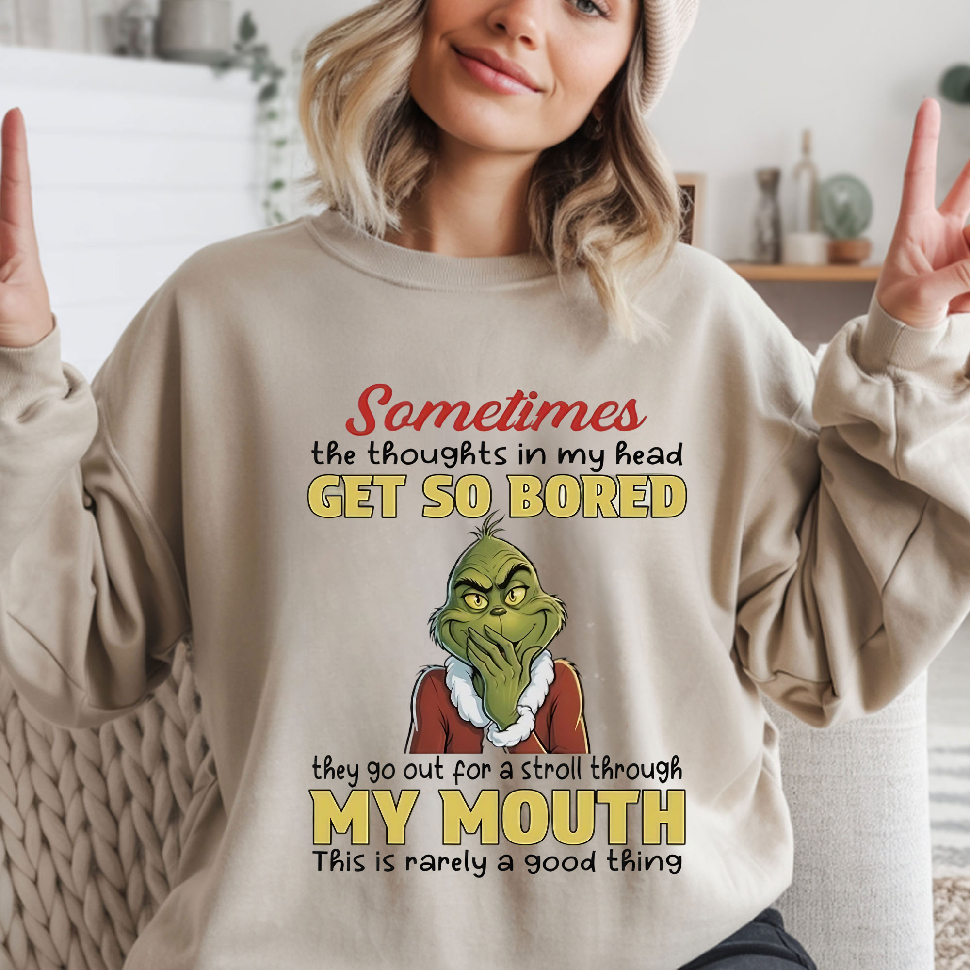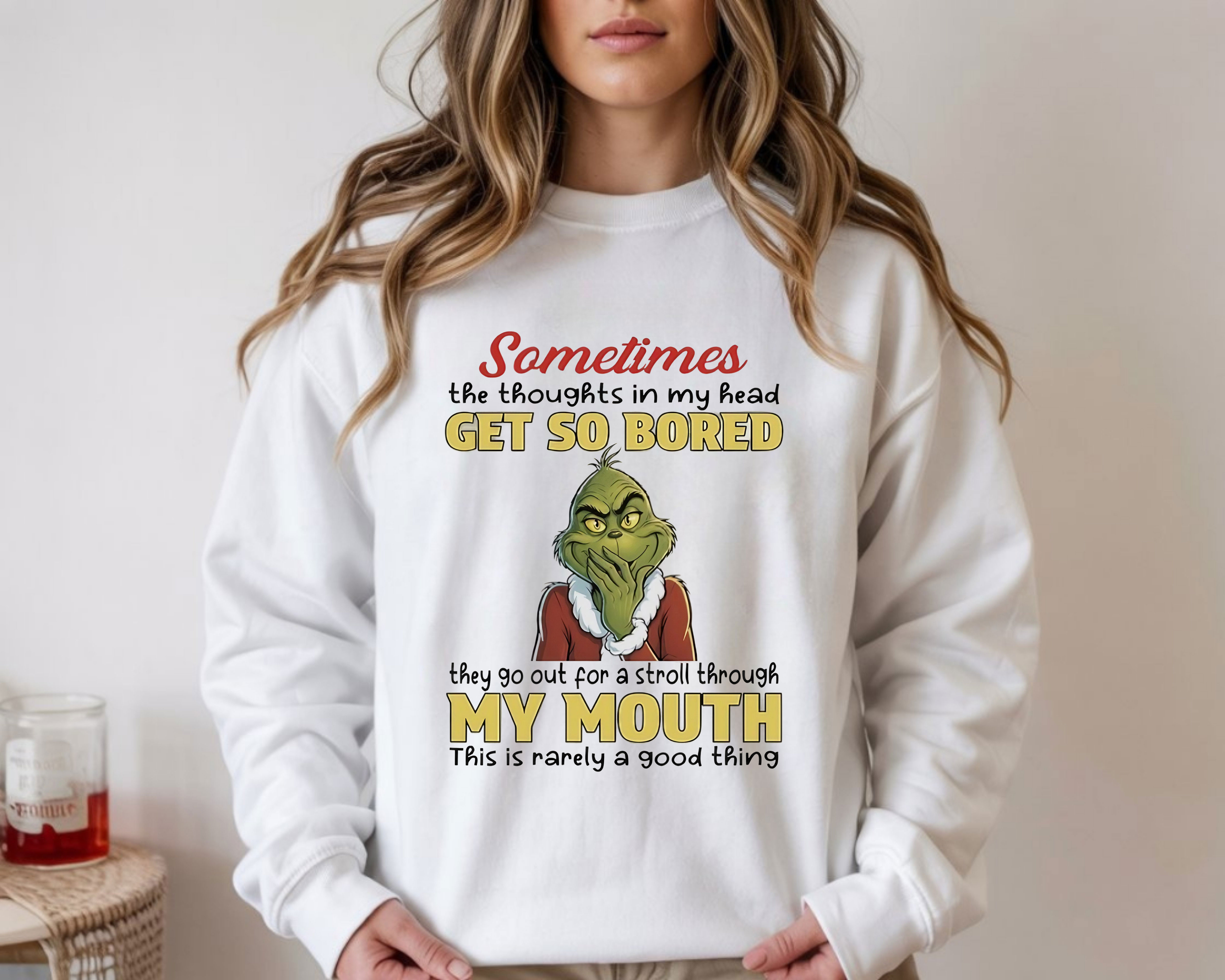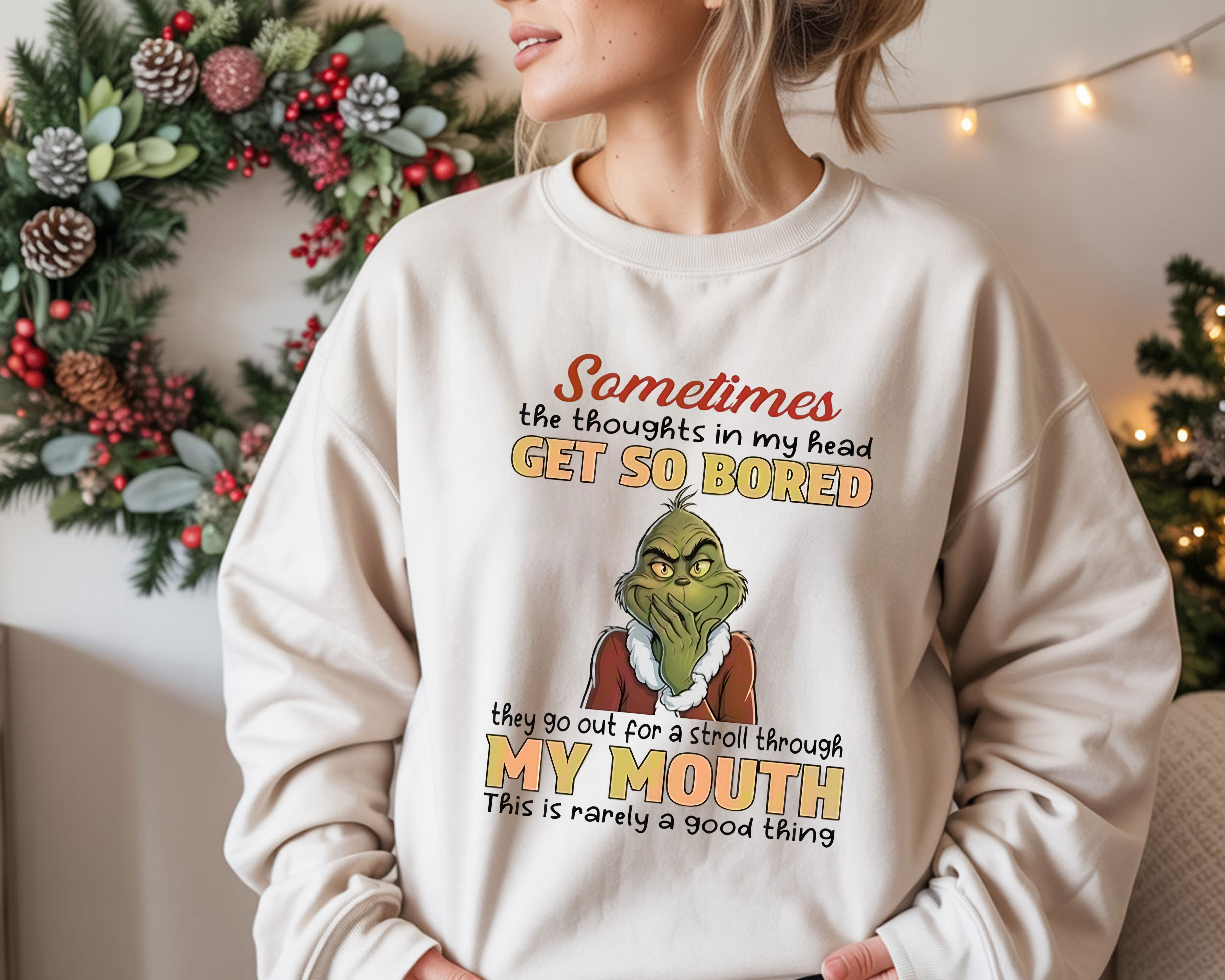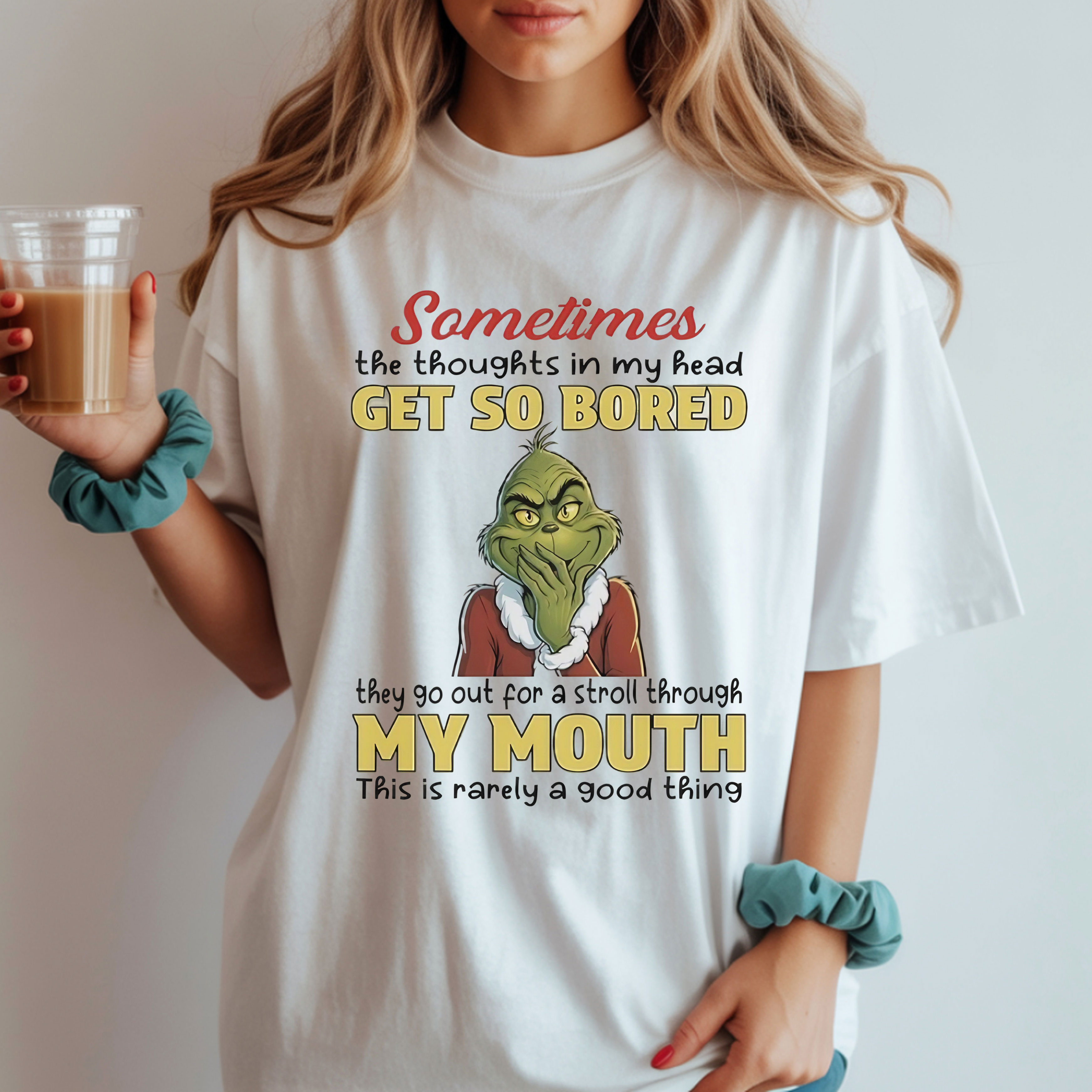 Grinch Quote Christmas T-Shirt – Funny Sometimes The Thoughts In My Head Go Out For A Stroll Vintage Bootleg Holiday Tee
