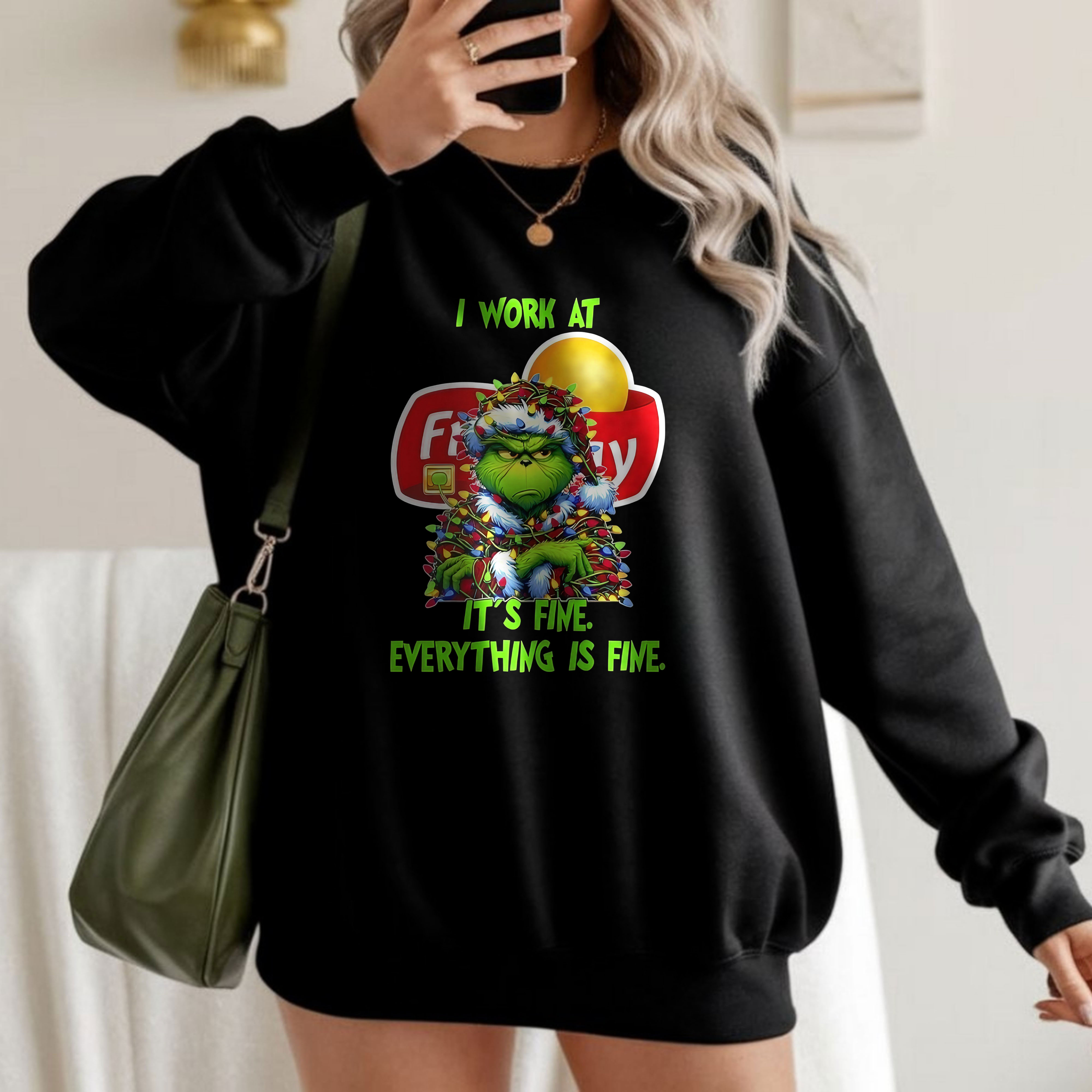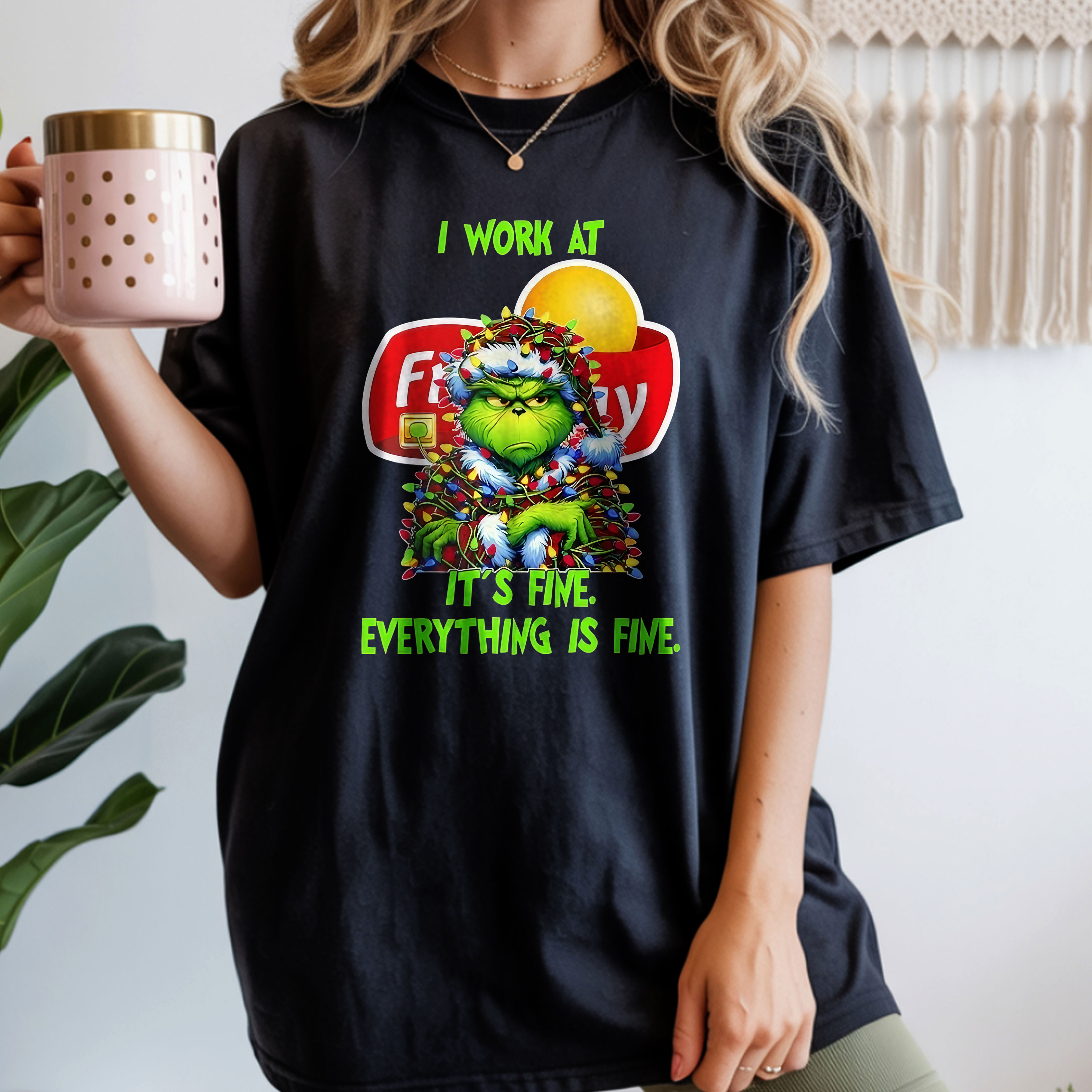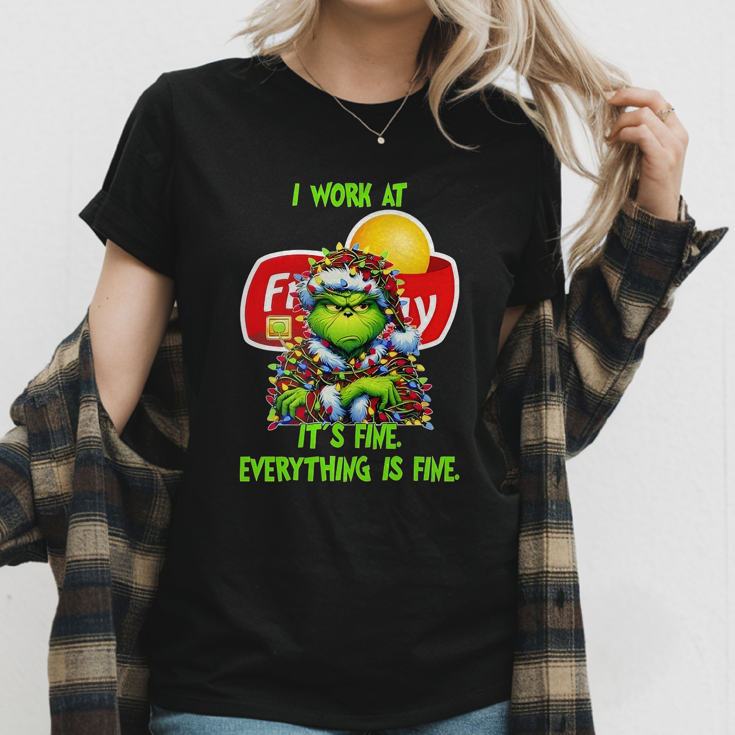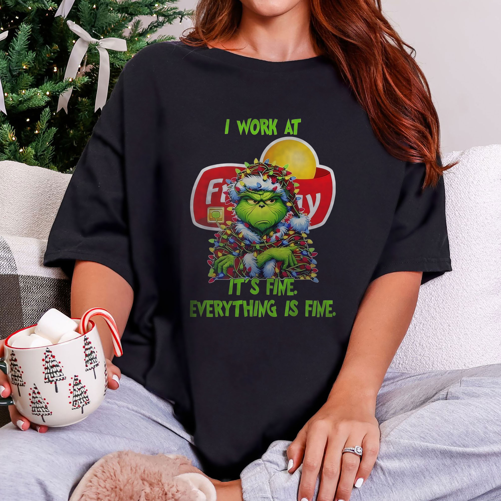 Grinch Quote Frito-Lay Christmas T-Shirt – Funny I Work At Frito-Lay It’s Fine Everything Is Fine Vintage Bootleg Holiday Tee