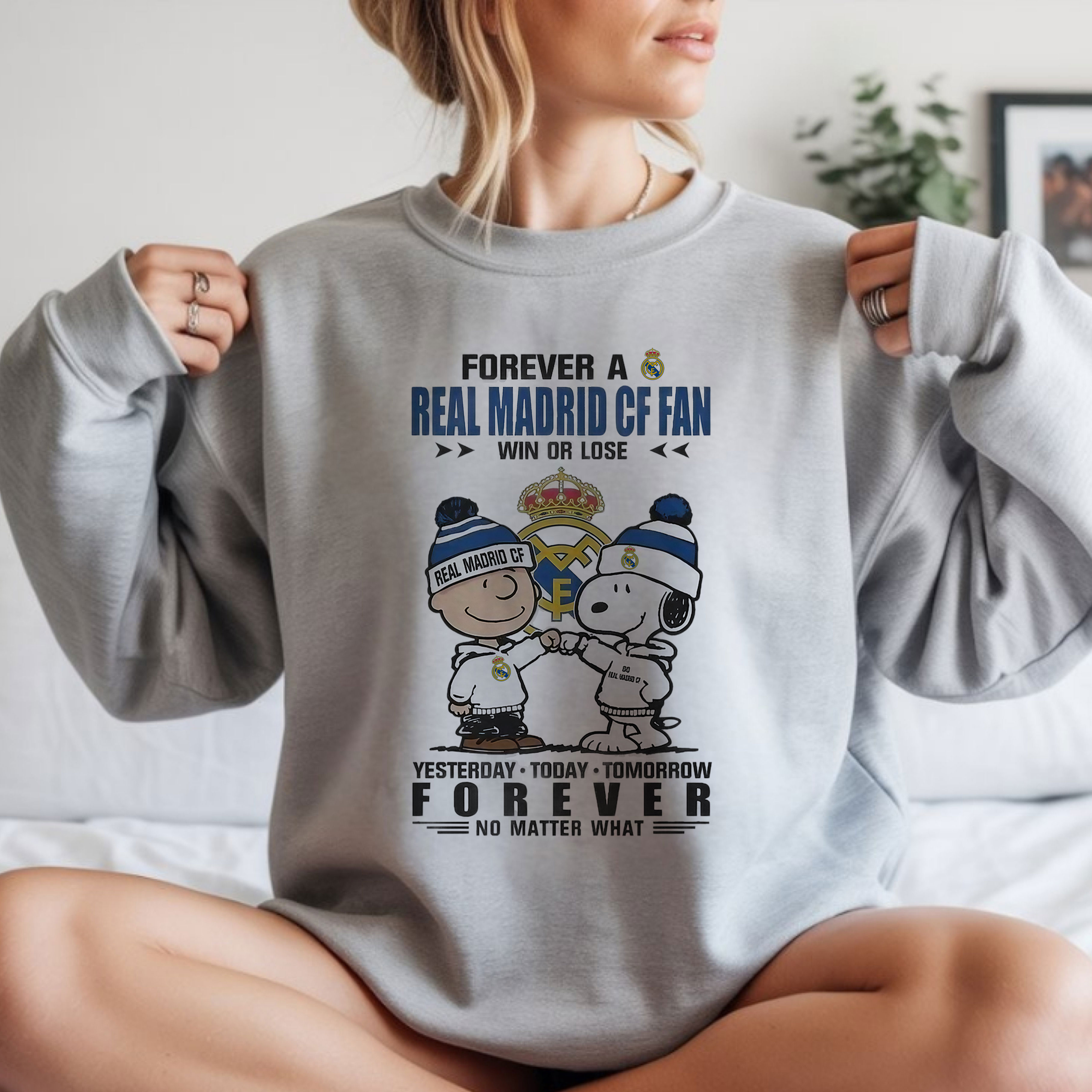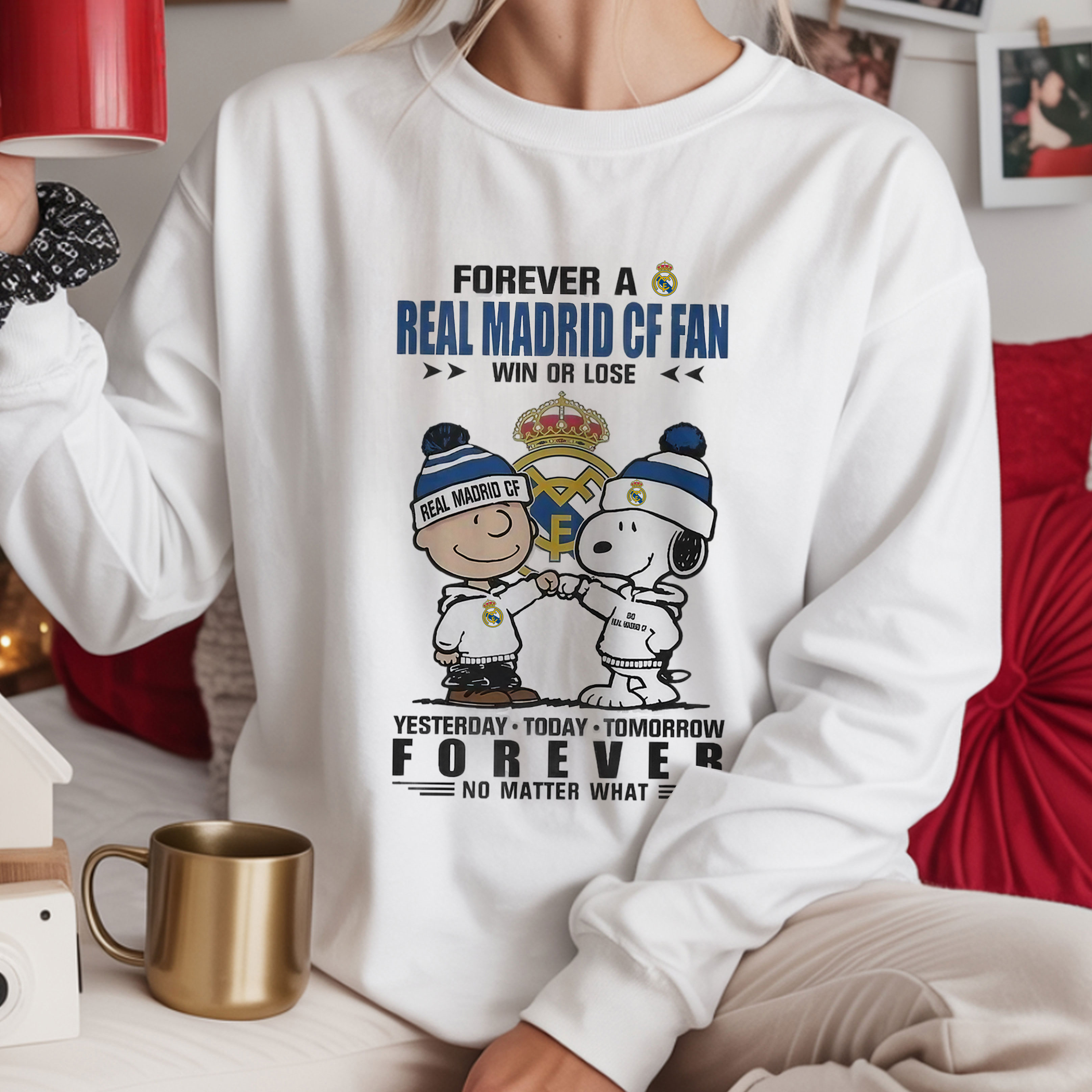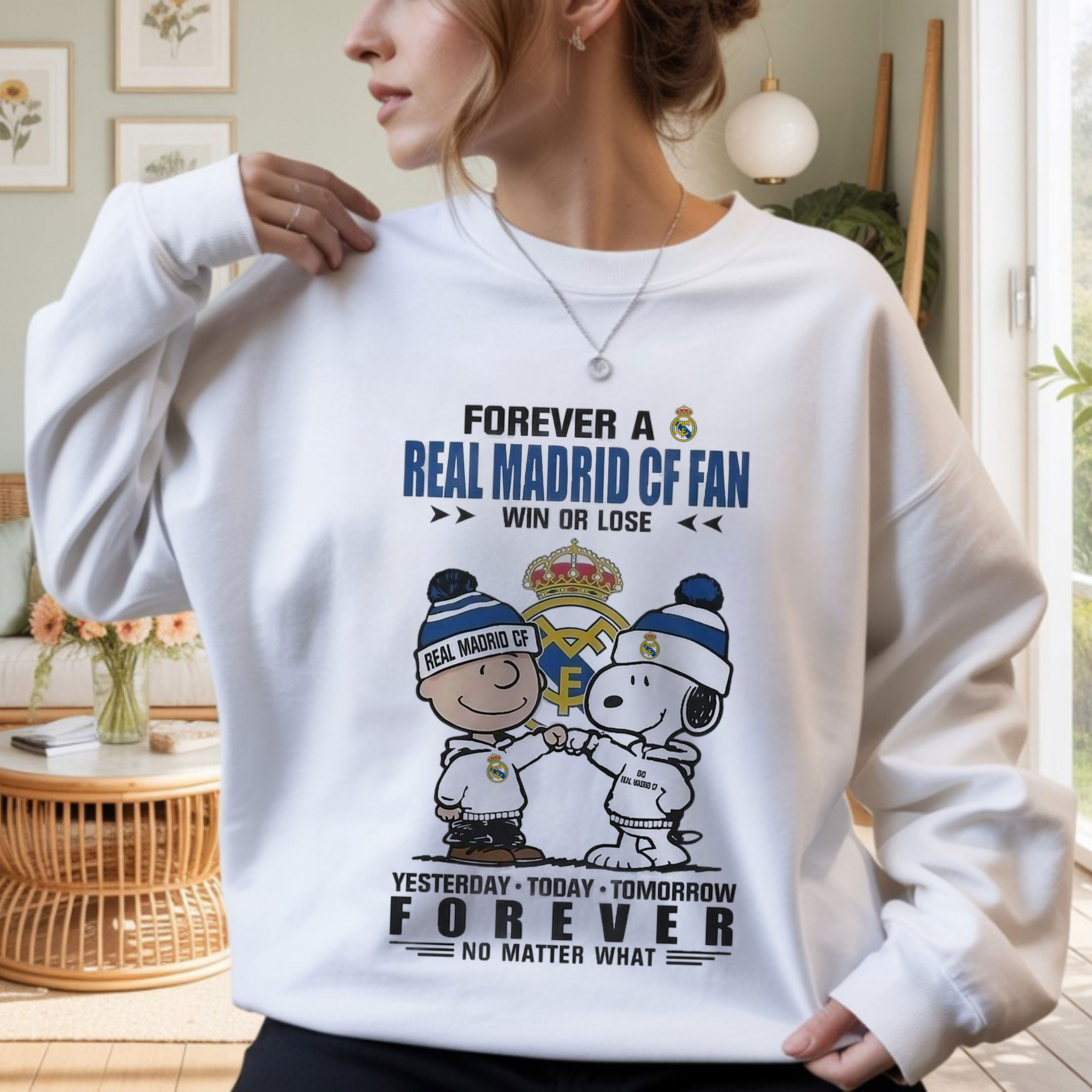 Charlie Brown and Snoopy Real Madrid CF Fan Forever Win or Lose Soccer Football Vintage Bootleg Team Pride Apparel – T-Shirt, Hoodie & Sweatshirt
