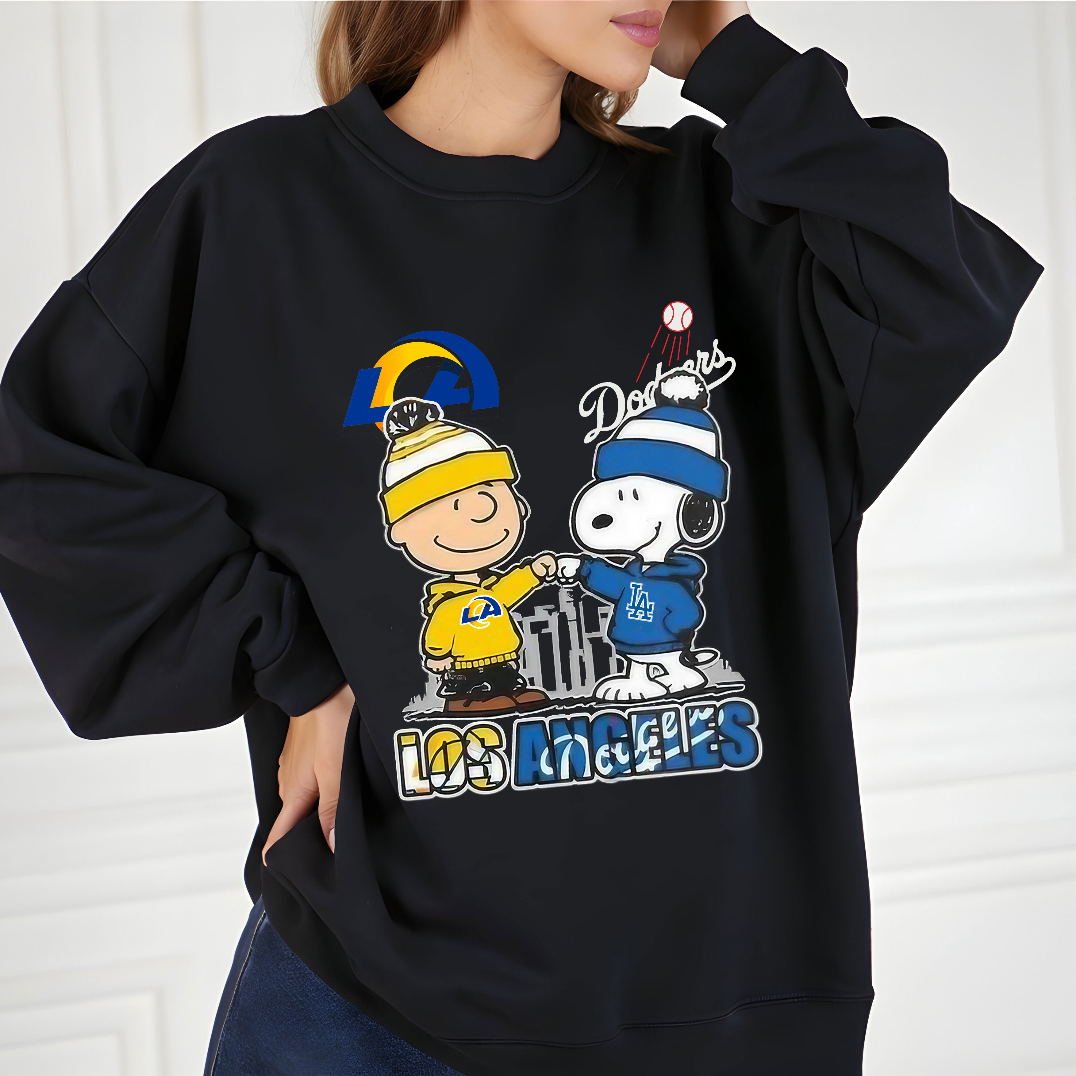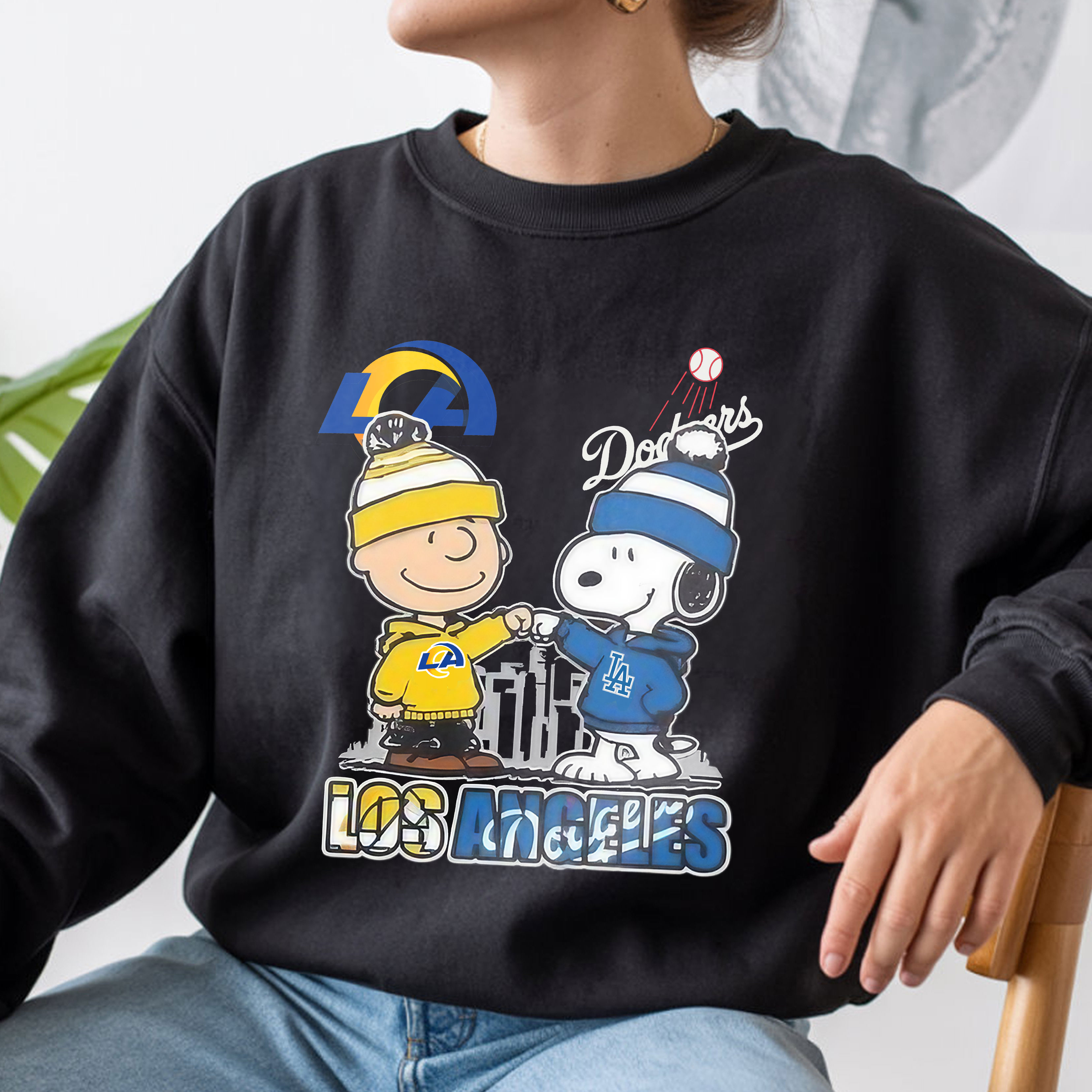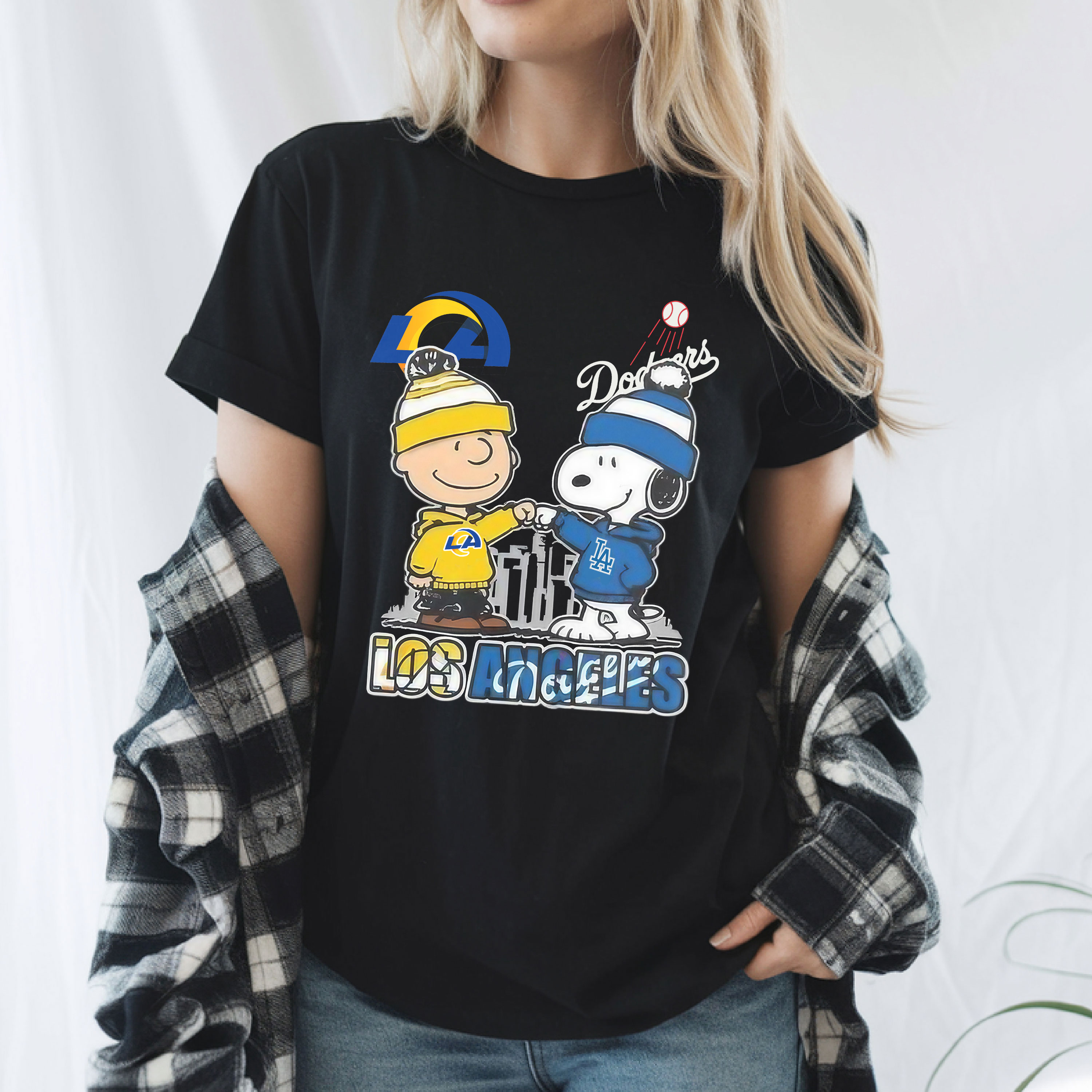 Charlie Brown Los Angeles Rams x Snoopy Los Angeles Dodgers Skyline 2025 NFL MLB Crossover Vintage Bootleg LA Pride Apparel – T-Shirt, Hoodie & Sweatshirt