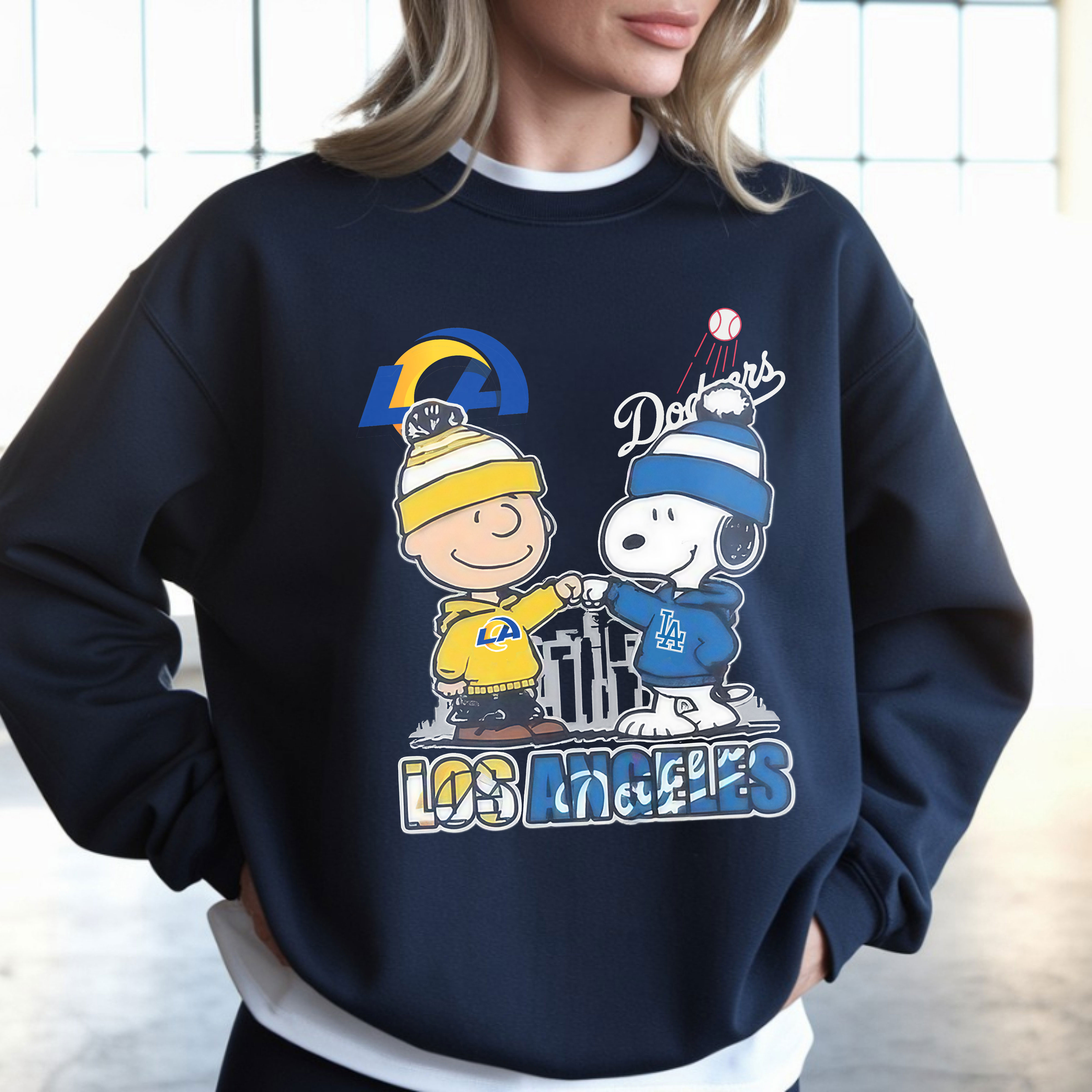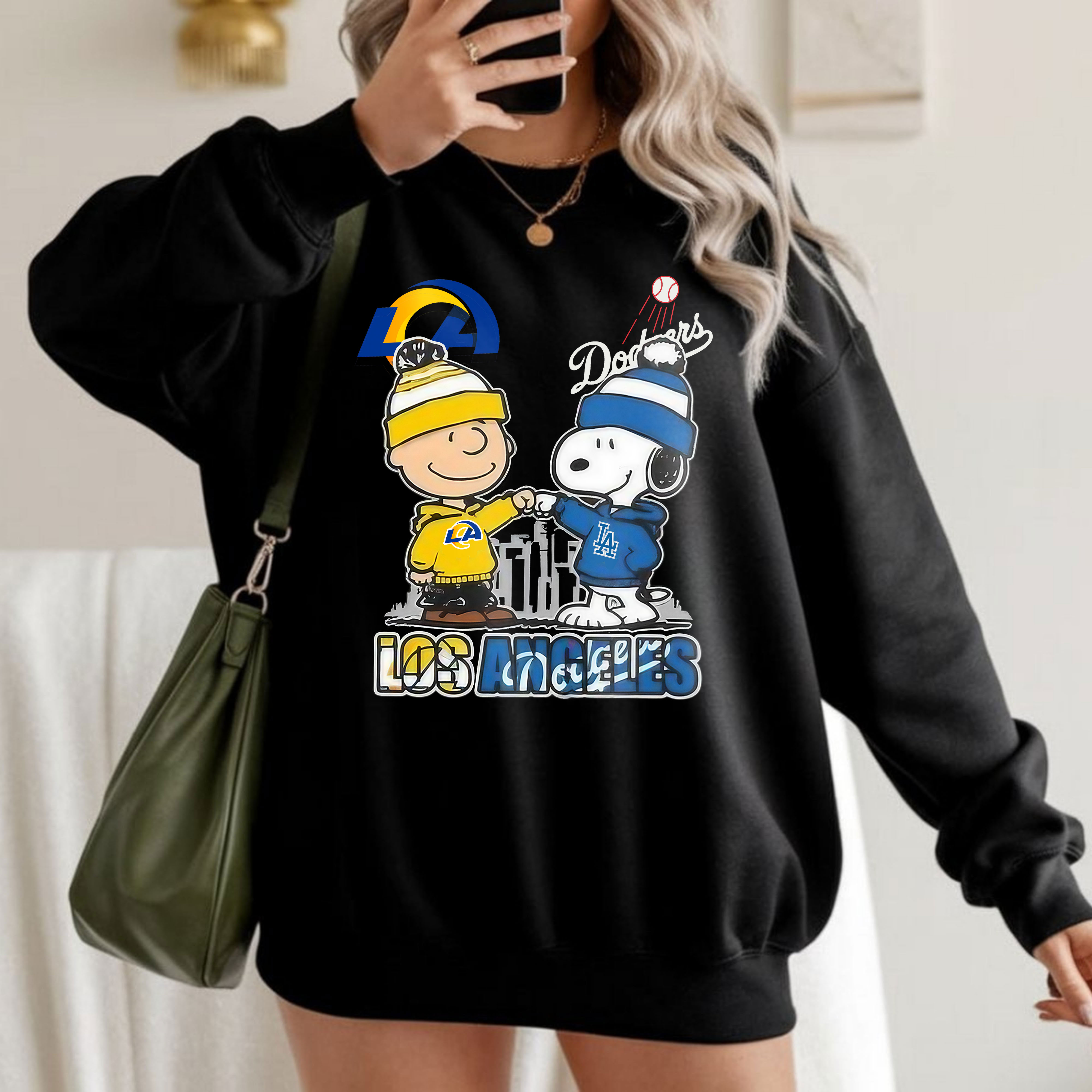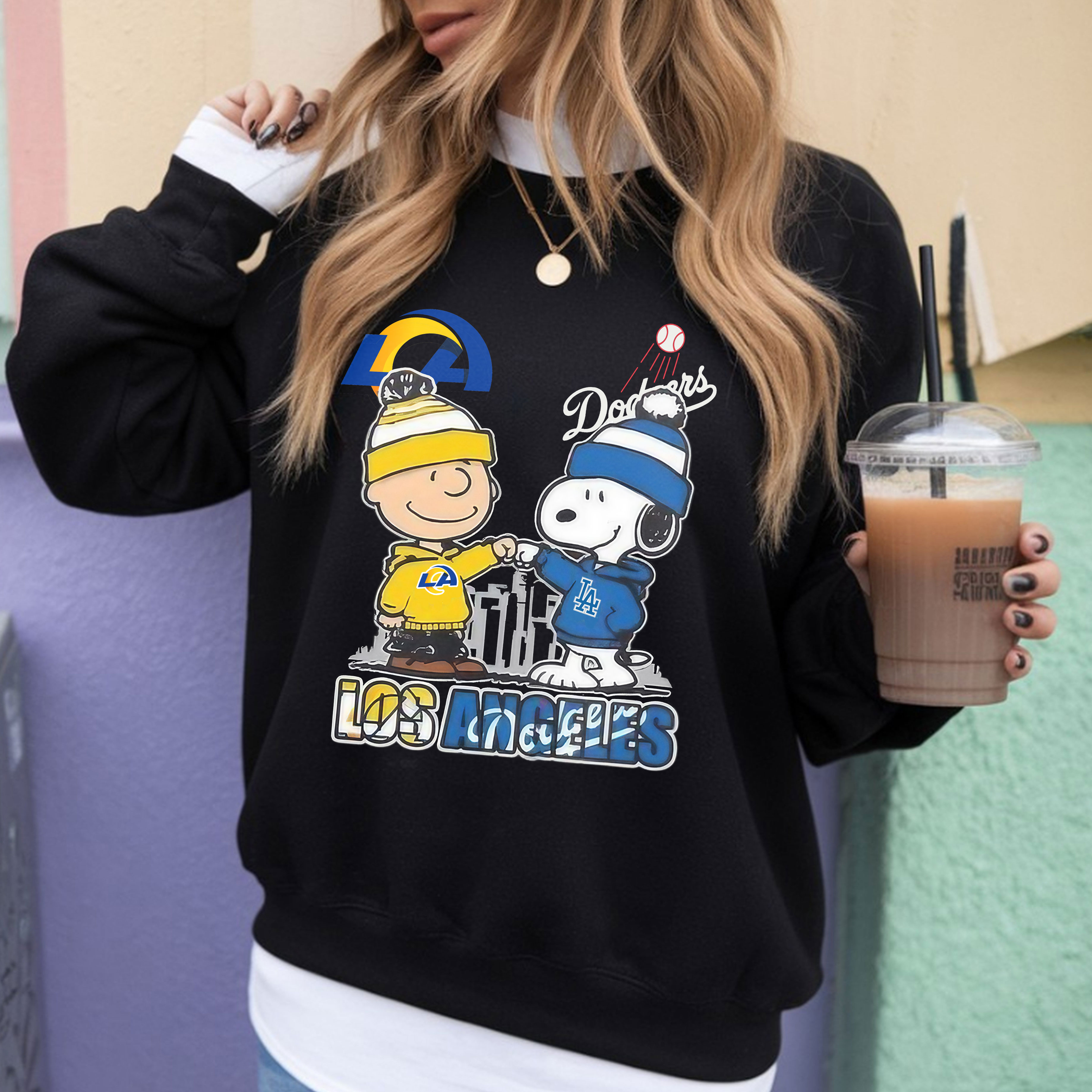 Charlie Brown Los Angeles Rams x Snoopy Los Angeles Dodgers Skyline 2025 NFL MLB Crossover Vintage Bootleg LA Pride Apparel – T-Shirt, Hoodie & Sweatshirt