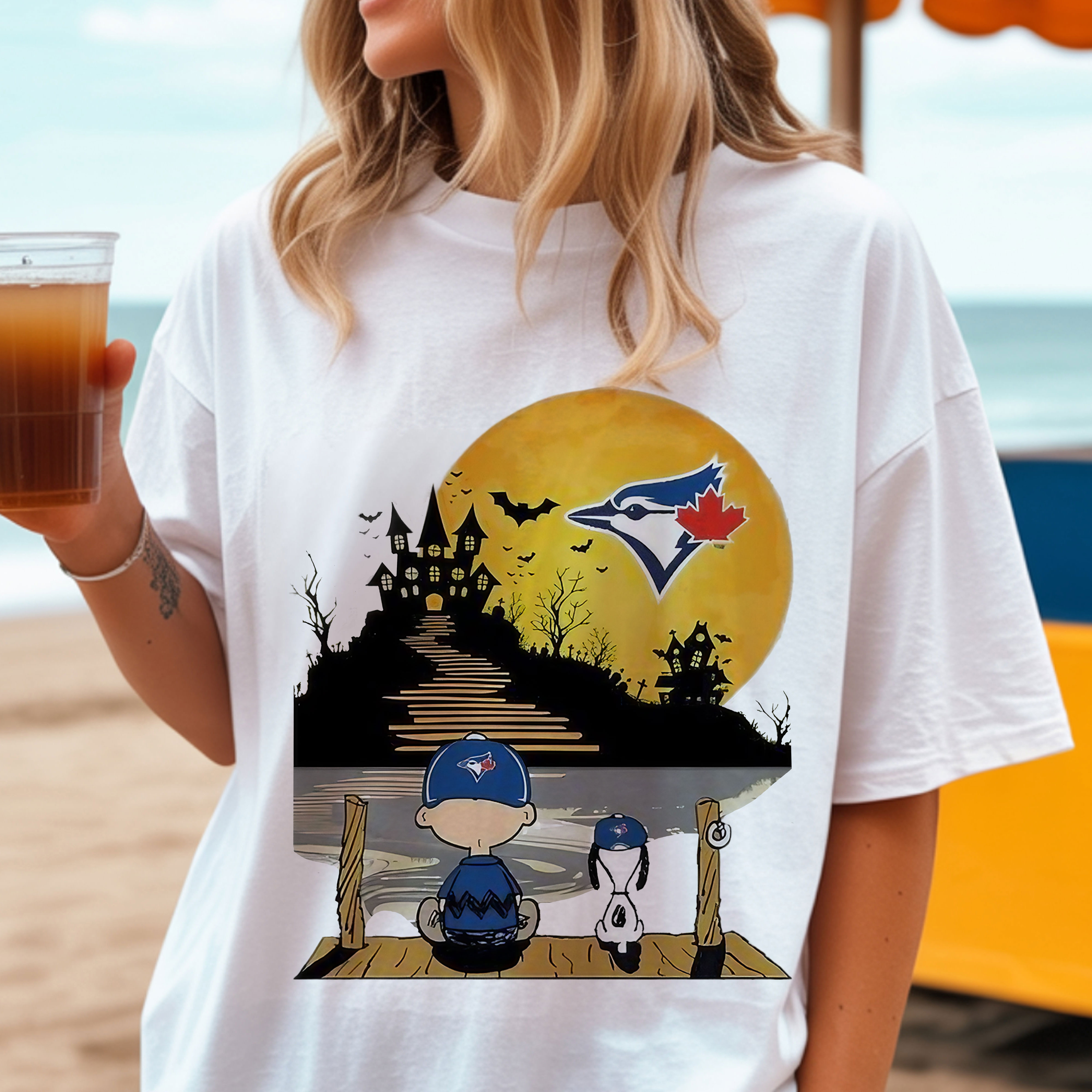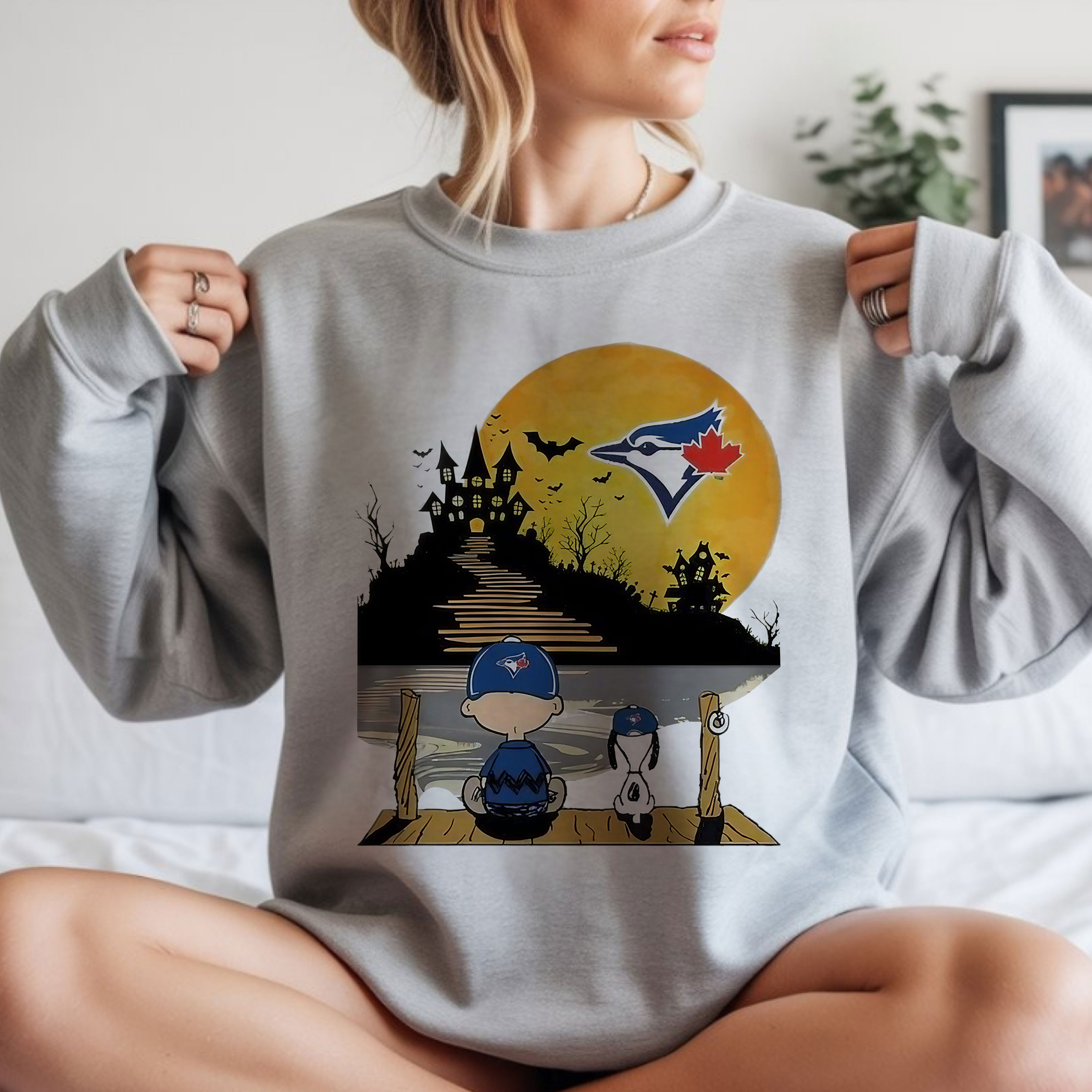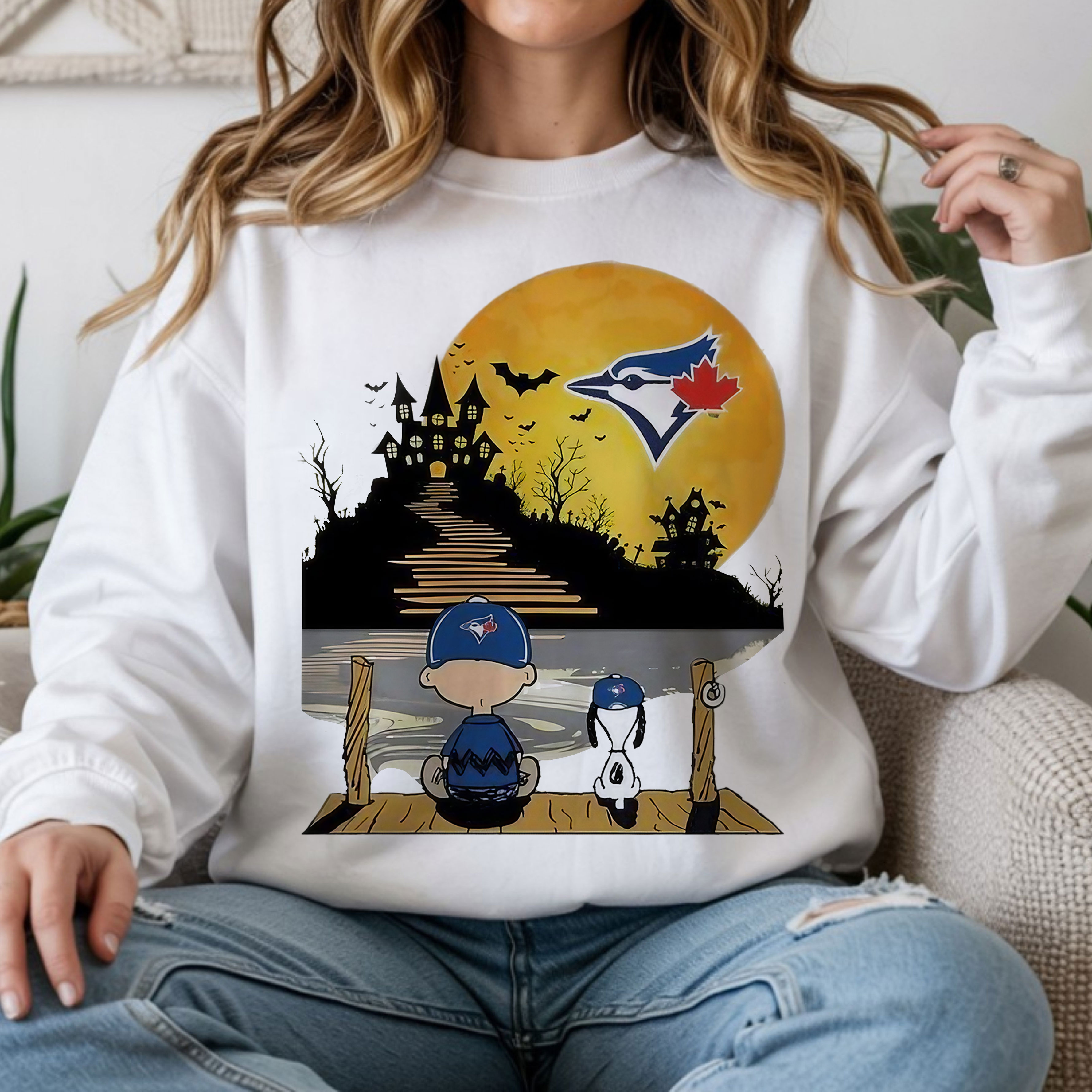 Peanuts Charlie Brown and Snoopy Sit Under Moon Halloween Toronto Blue Jays MLB Baseball Vintage Bootleg Spooky Night Apparel – T-Shirt, Hoodie & Sweatshirt