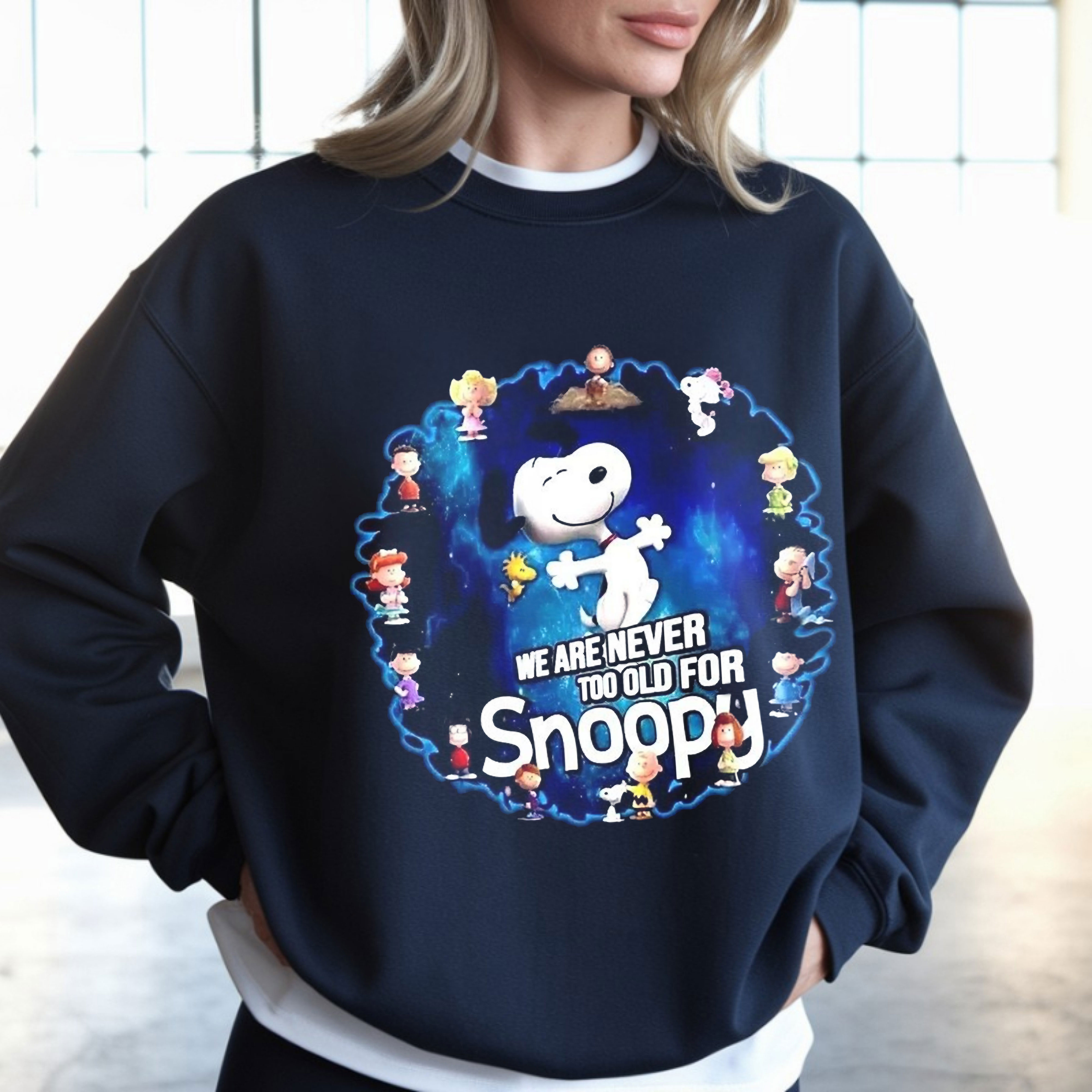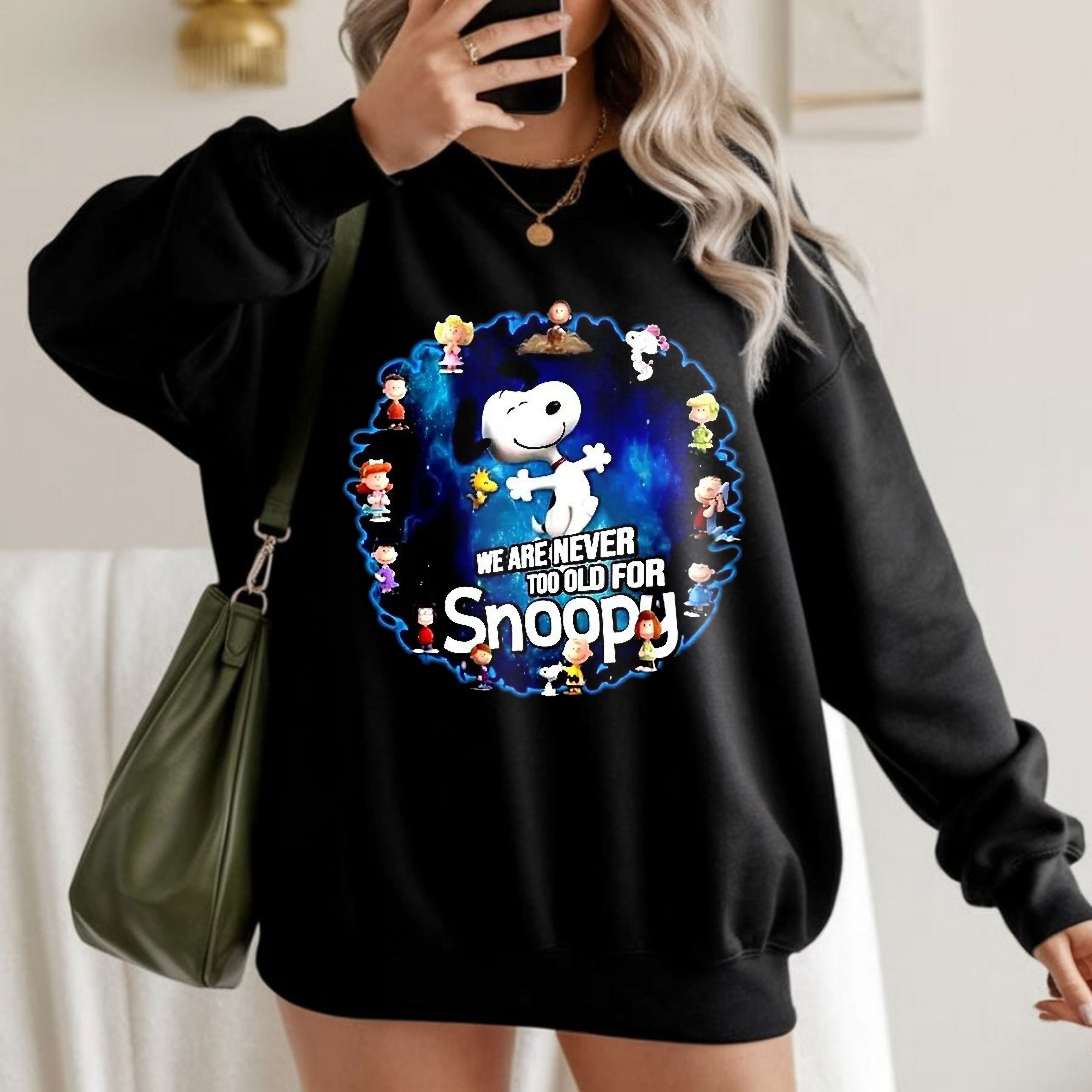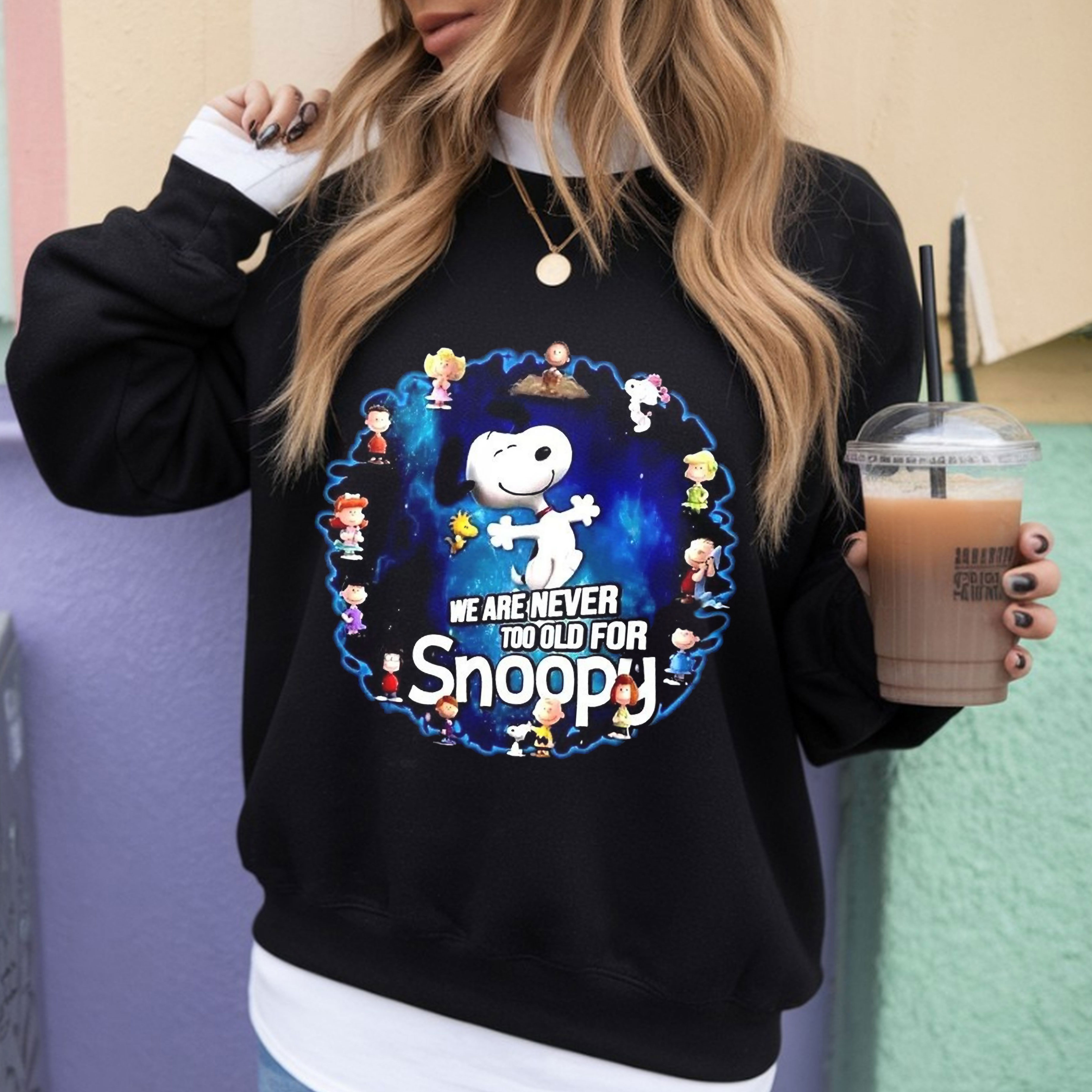 Peanuts Family We Are Never Too Old for Snoopy Nostalgia Cartoon Vintage Bootleg Classic Humor Apparel – T-Shirt, Hoodie & Sweatshirt