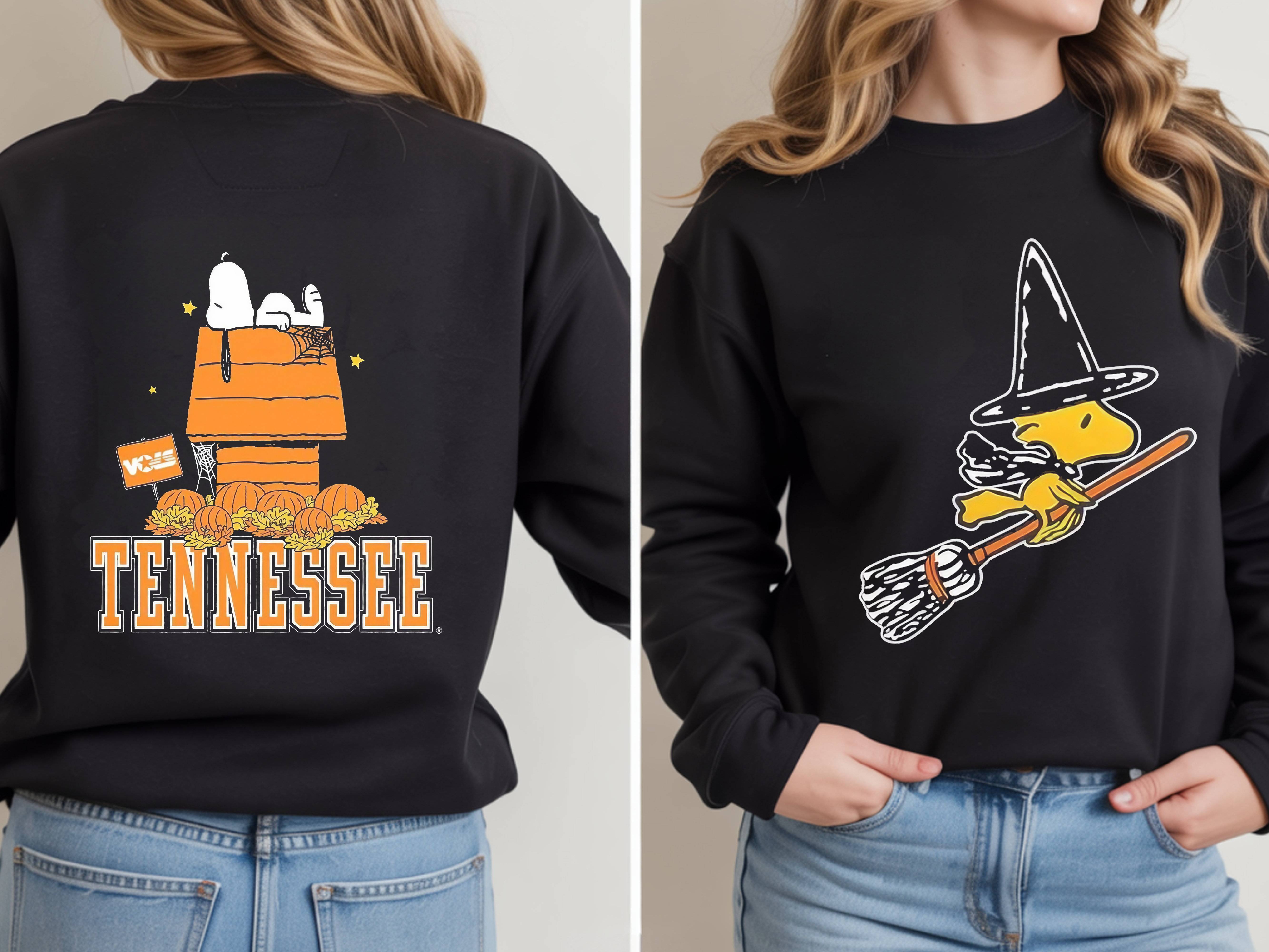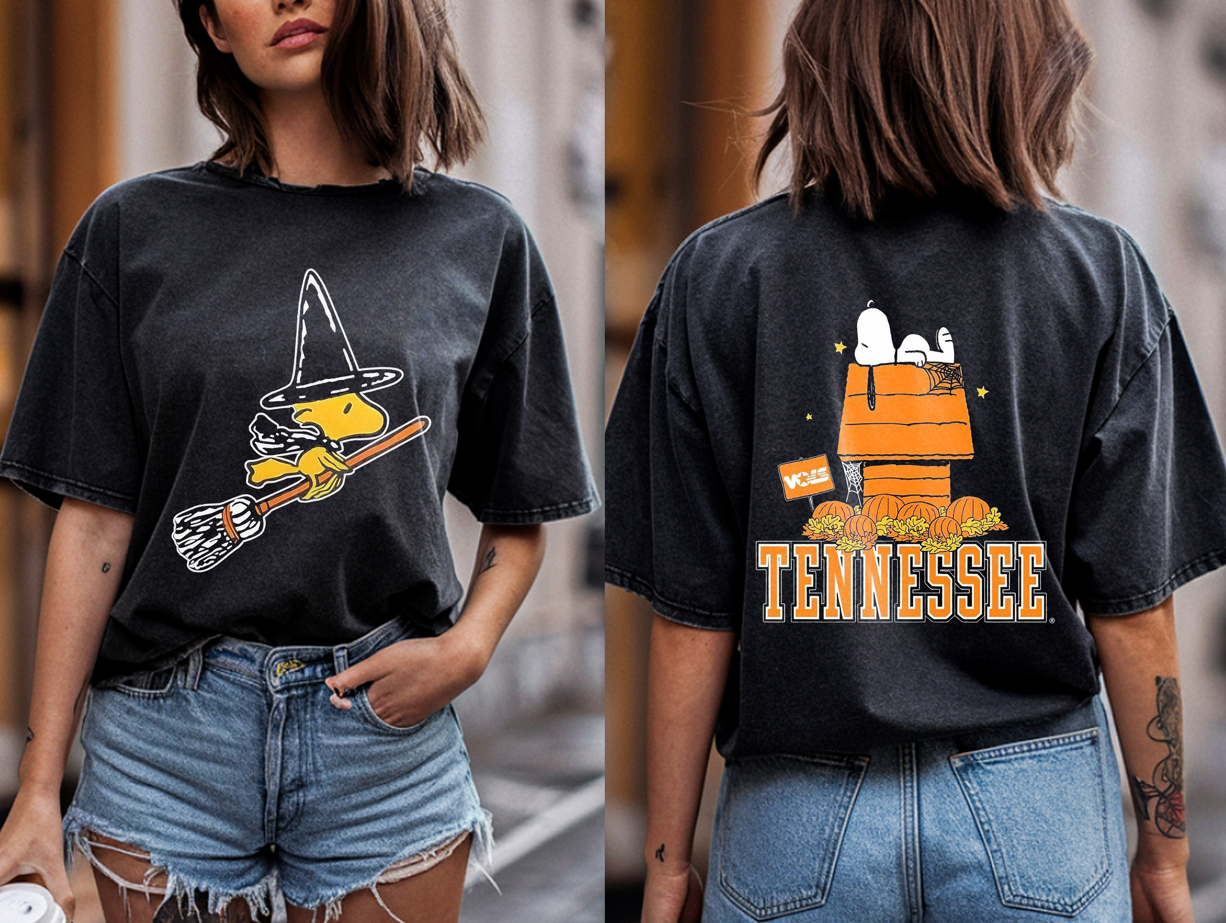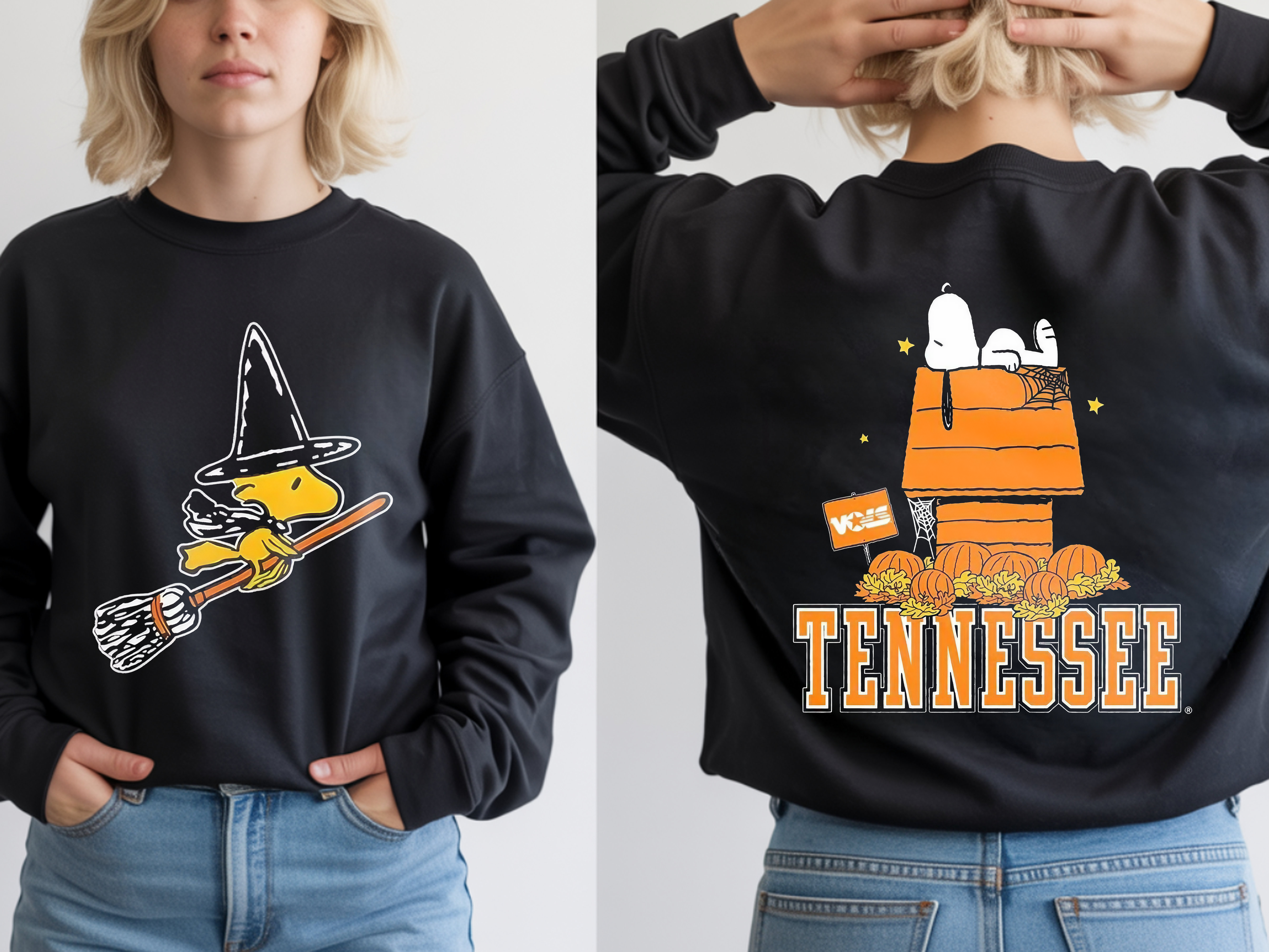 Peanuts Snoopy and Woodstock x Tennessee Happy Halloween 2-Sided Orange Pumpkin Vintage Bootleg Spooky Holiday Apparel – T-Shirt, Hoodie & Sweatshirt