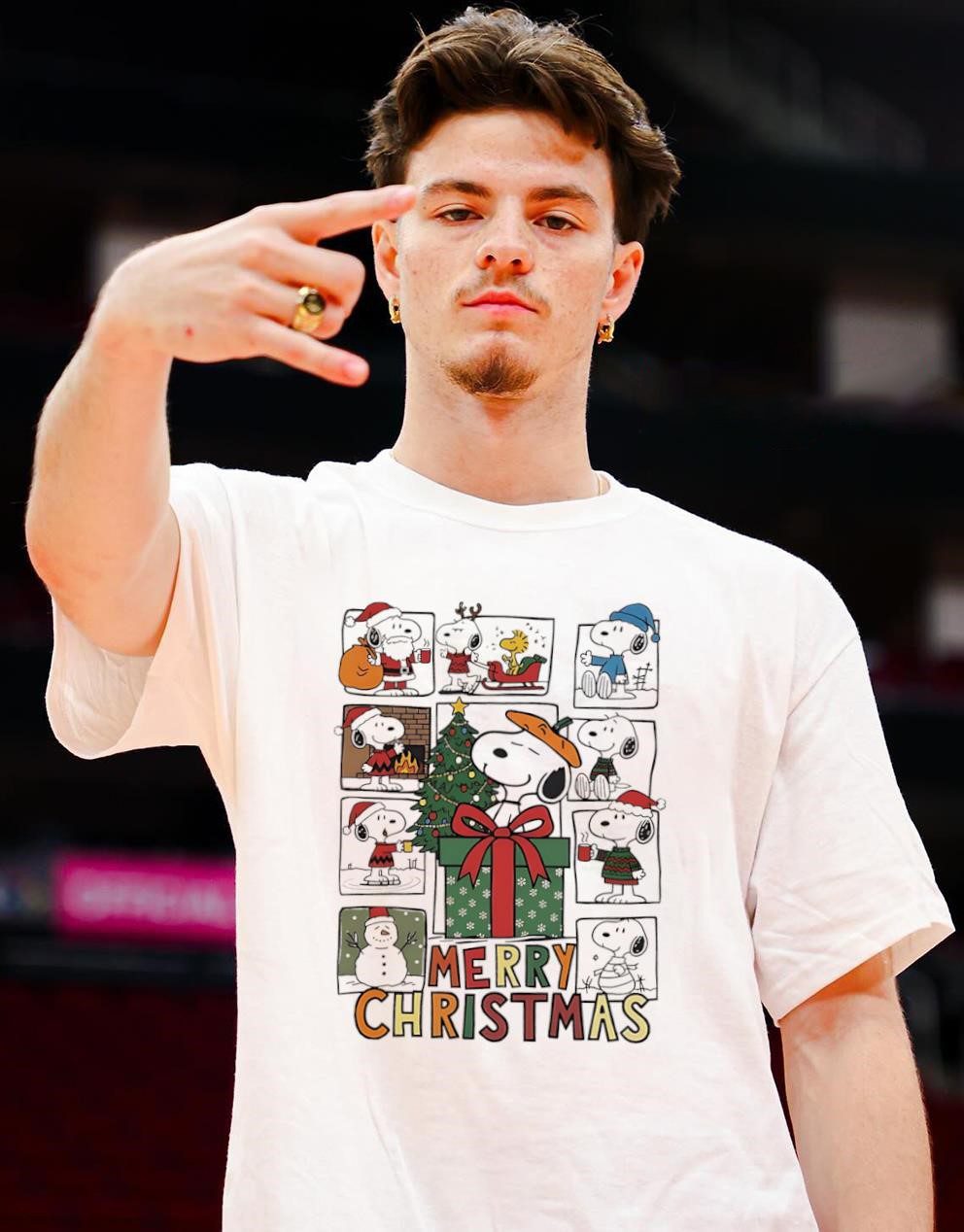 Peanuts Snoopy Christmas T-Shirt – Classic Peanuts Comic Merry Christmas Themed Scenes Vintage Bootleg Holiday Tee
