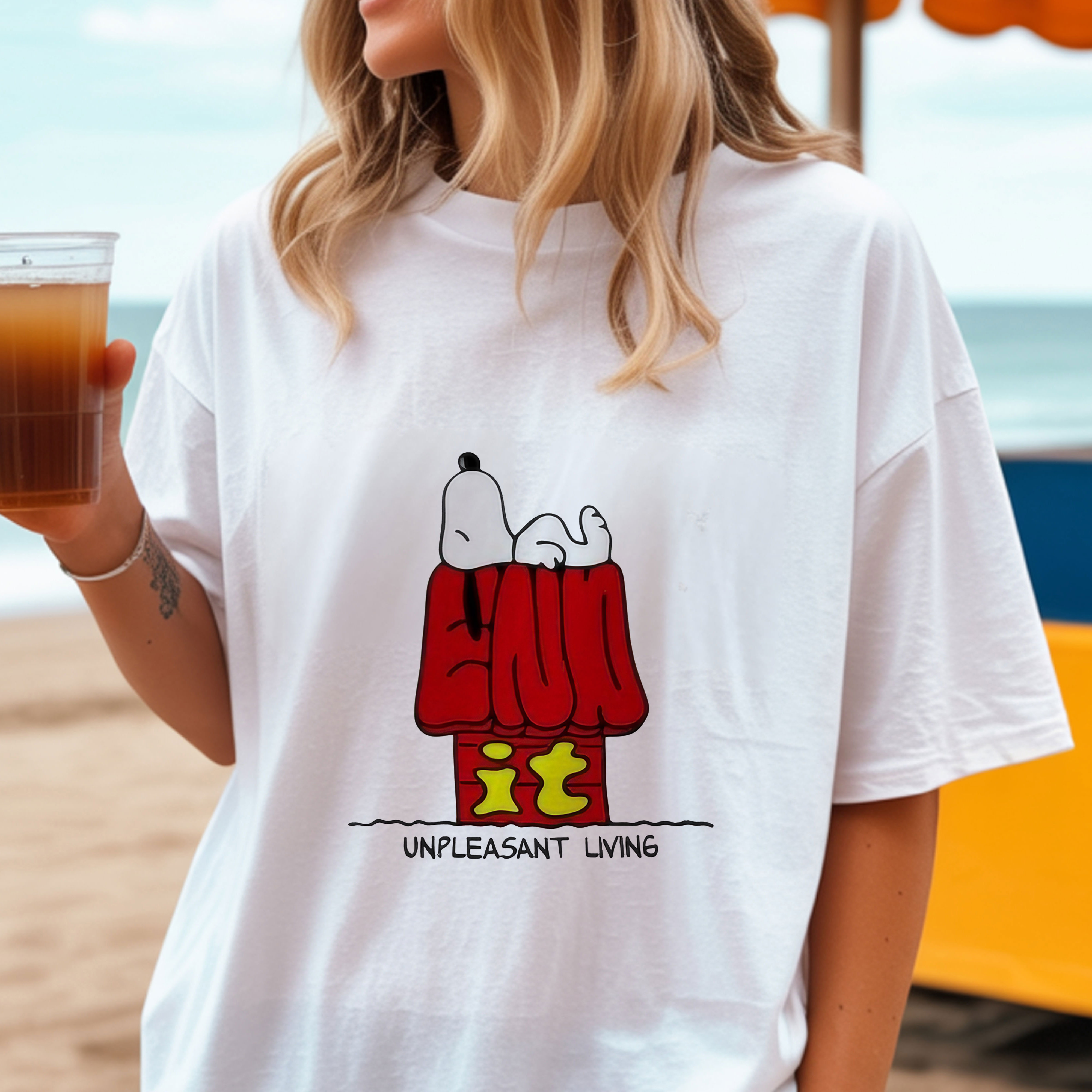 Peanuts Snoopy End It Unpleasant Living Dark Humor Sarcastic Vintage Bootleg Graphic Apparel – T-Shirt, Hoodie & Sweatshirt