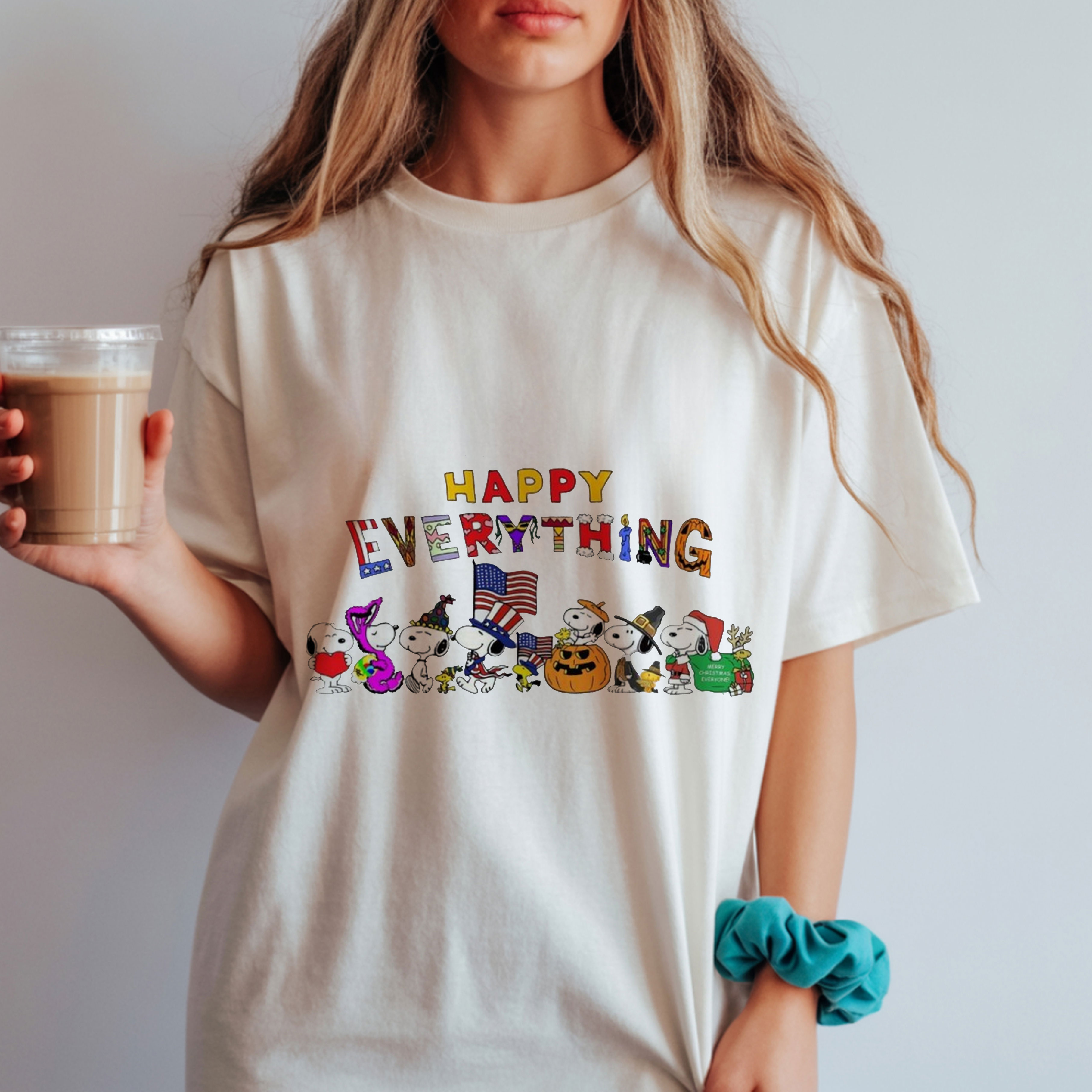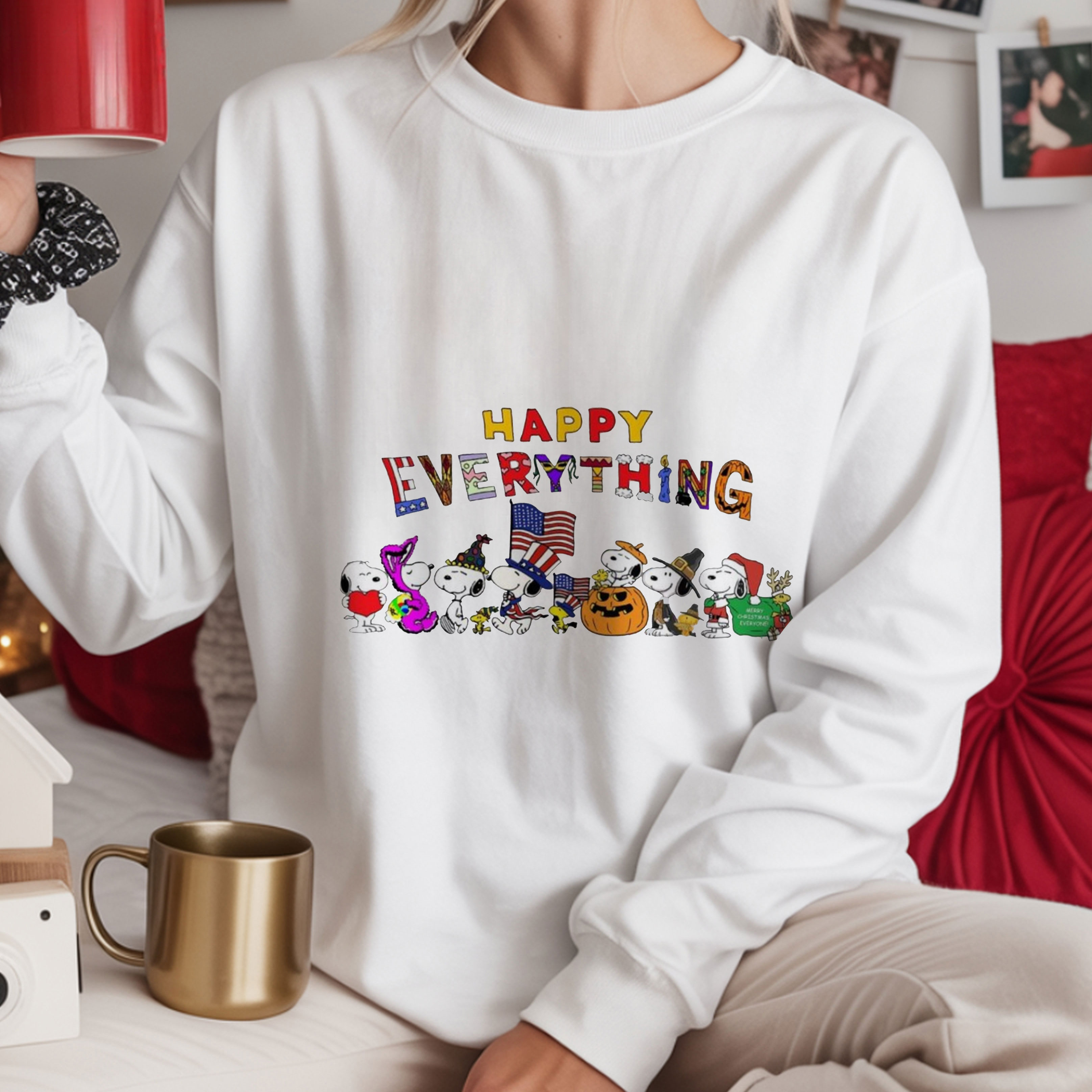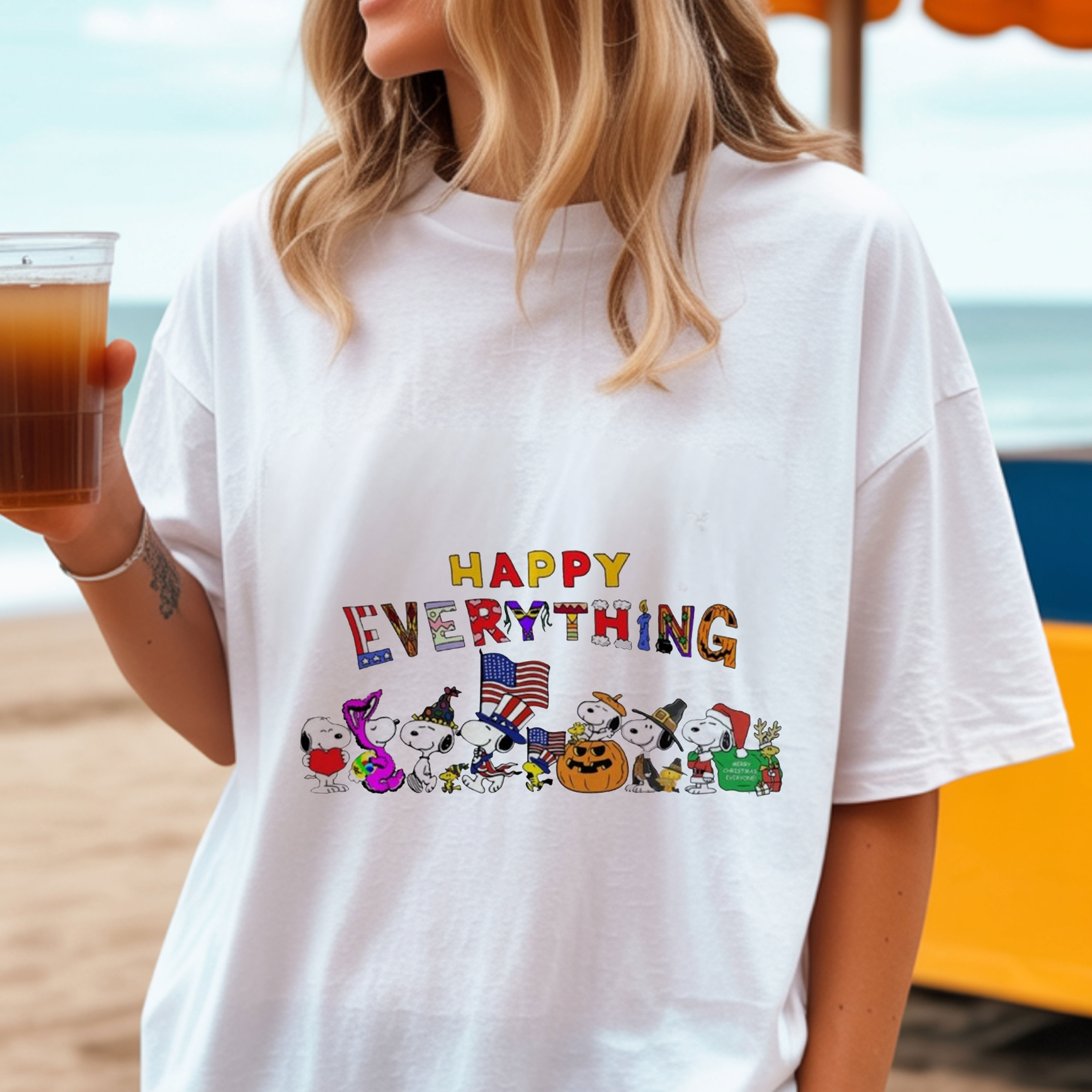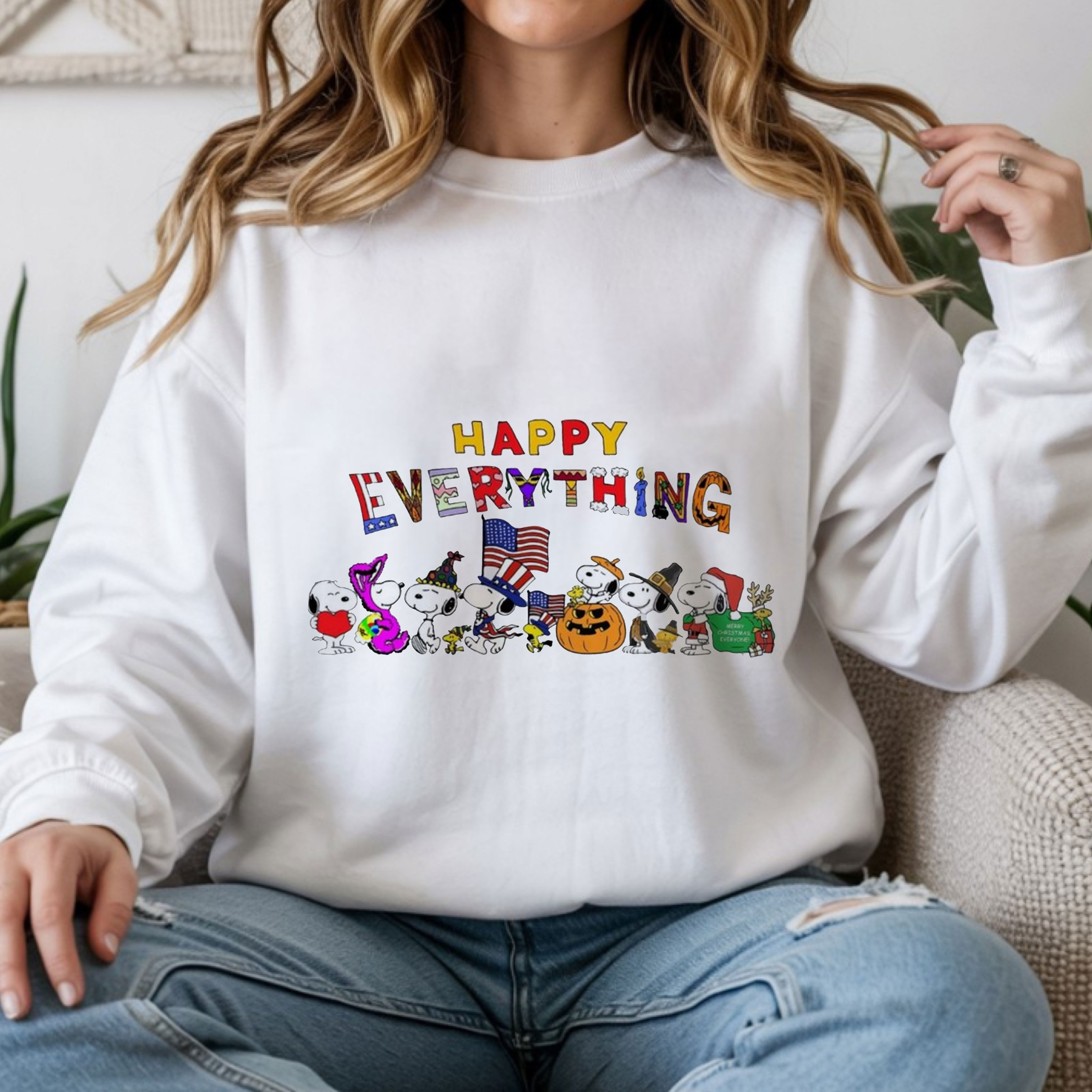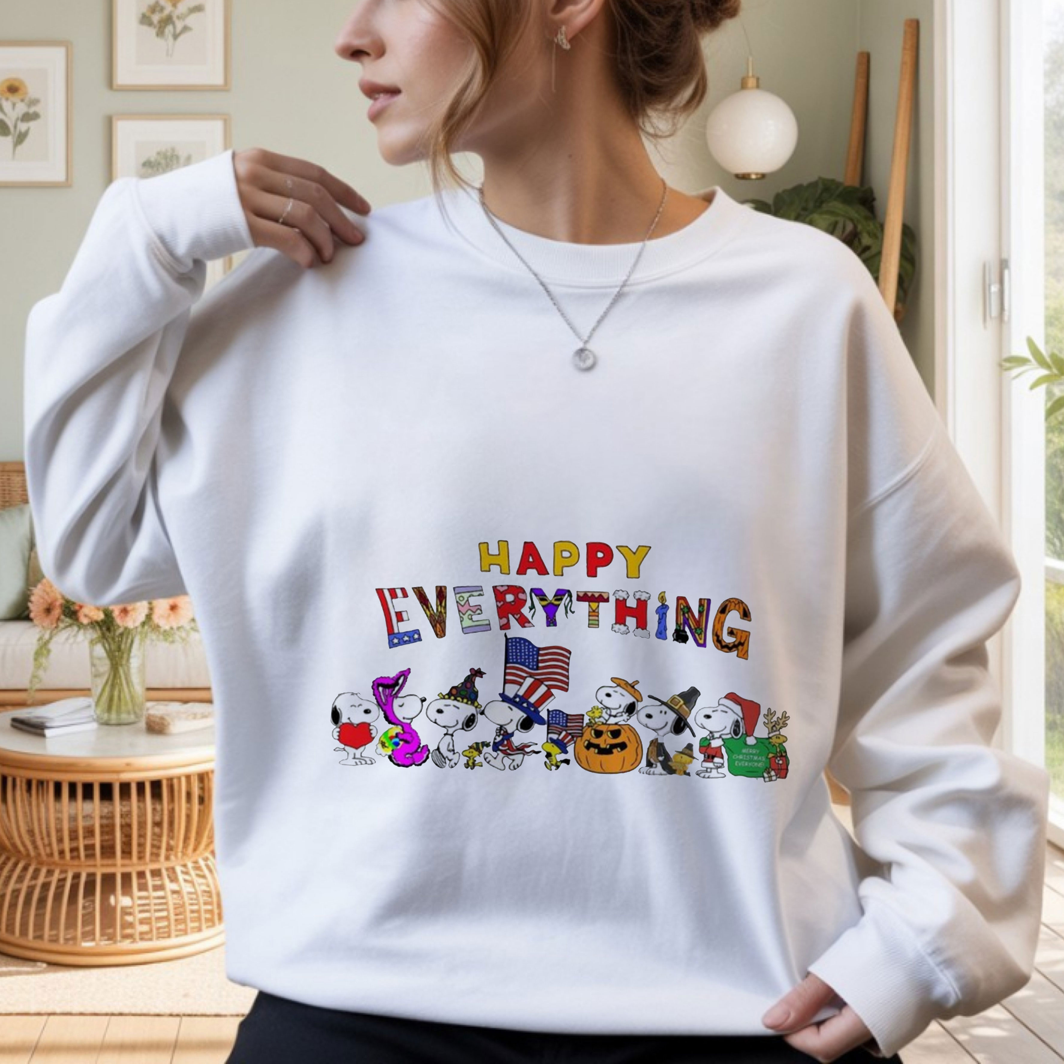 Peanuts Snoopy Happy Everything Positive Holiday Celebration Vintage Bootleg Cheerful Apparel – T-Shirt, Hoodie & Sweatshirt