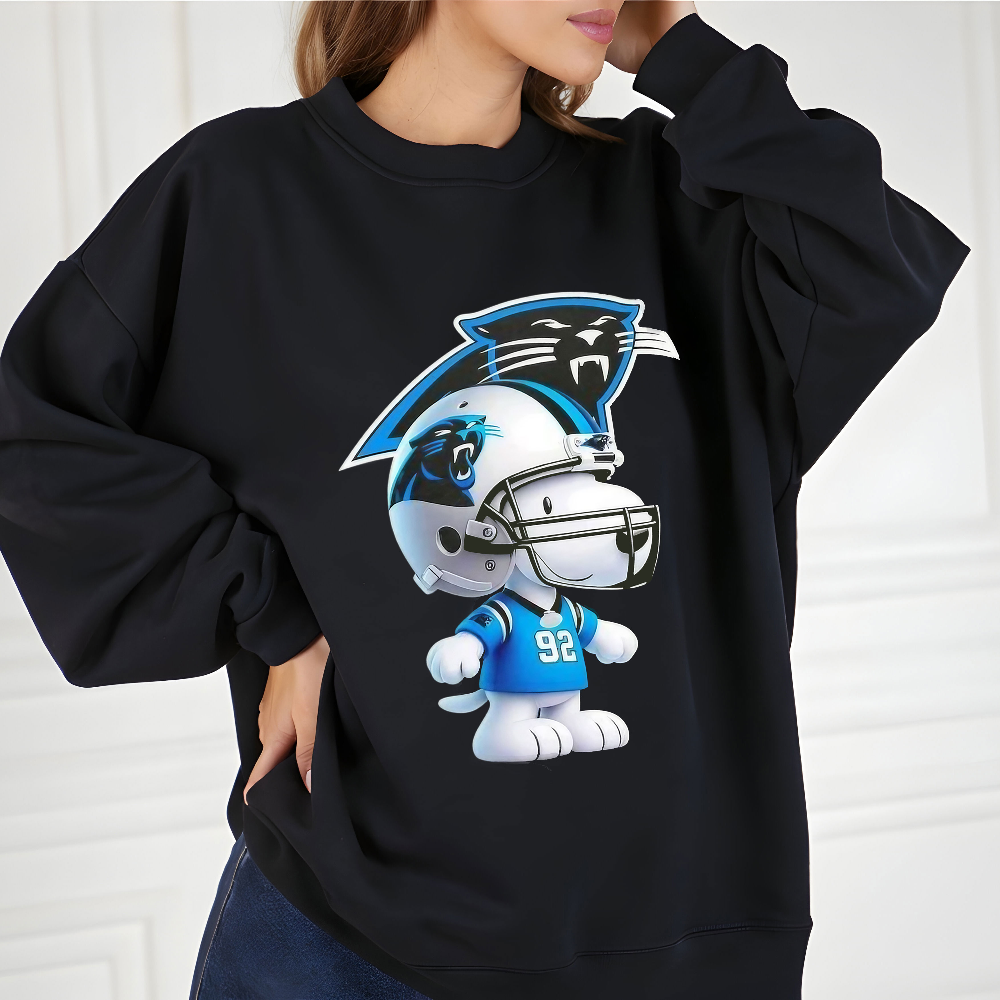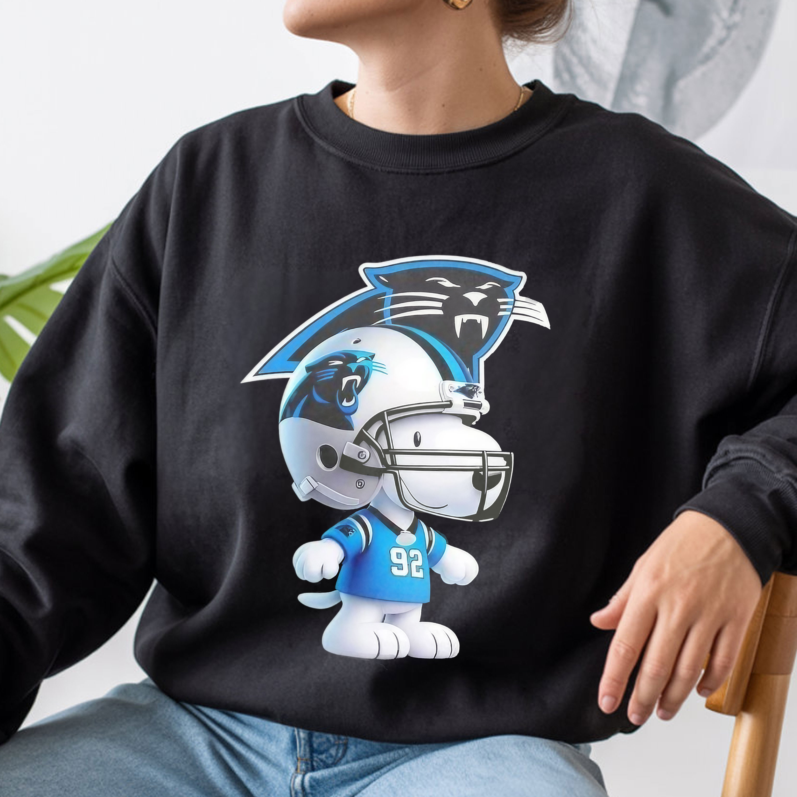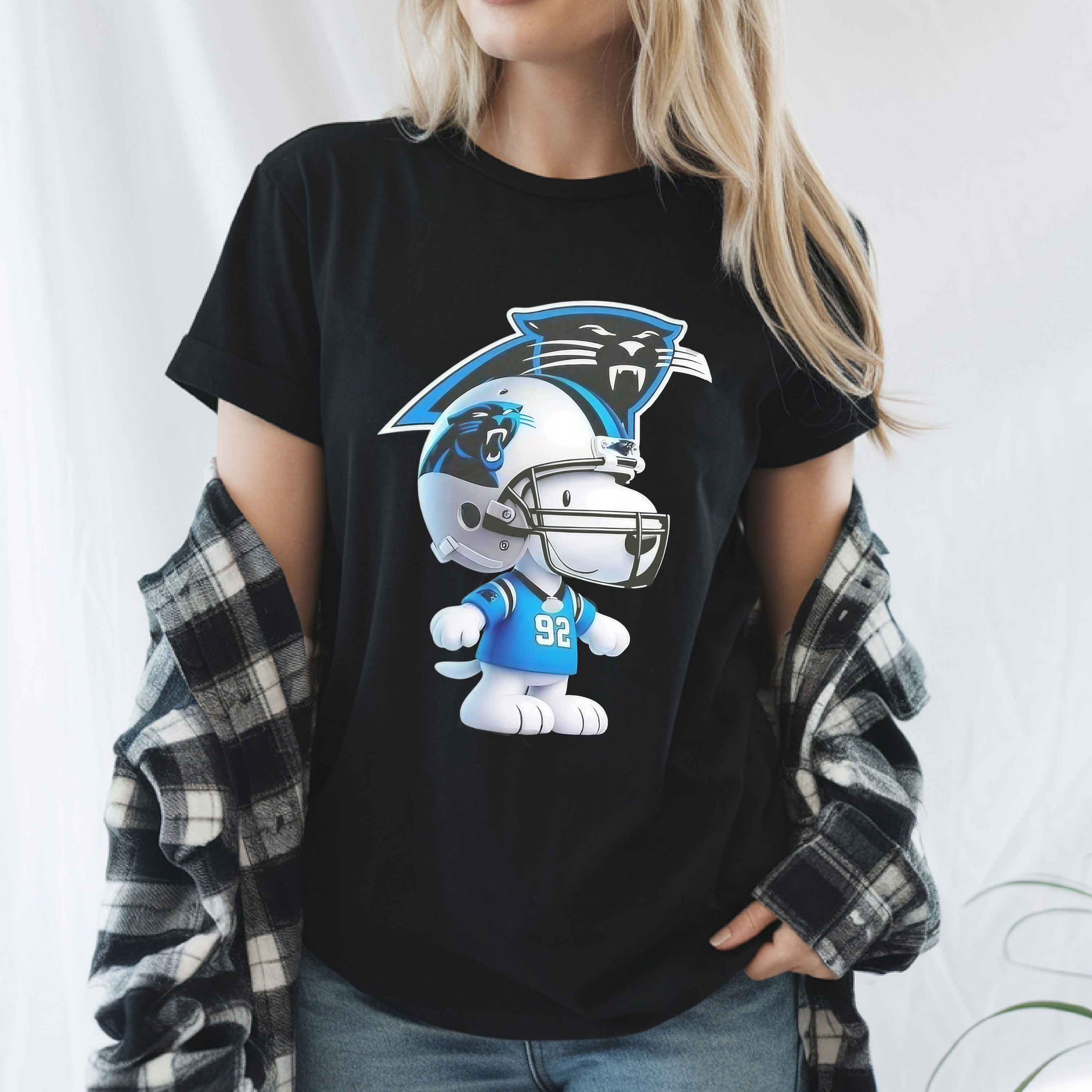 Peanuts Snoopy Smiling at Carolina Panthers Football Fans NFL Team Spirit Vintage Bootleg Blue Pride Apparel – T-Shirt, Hoodie & Sweatshirt