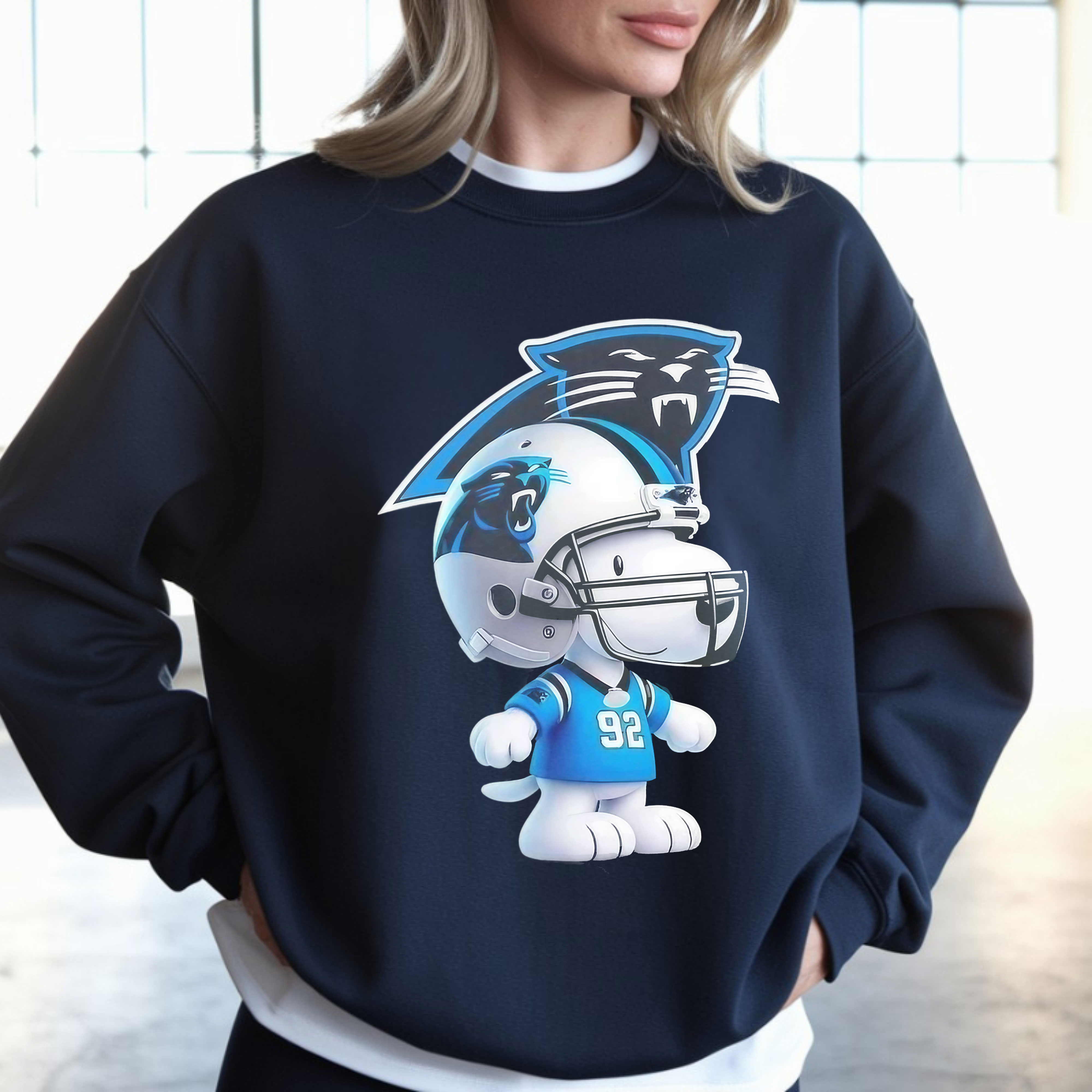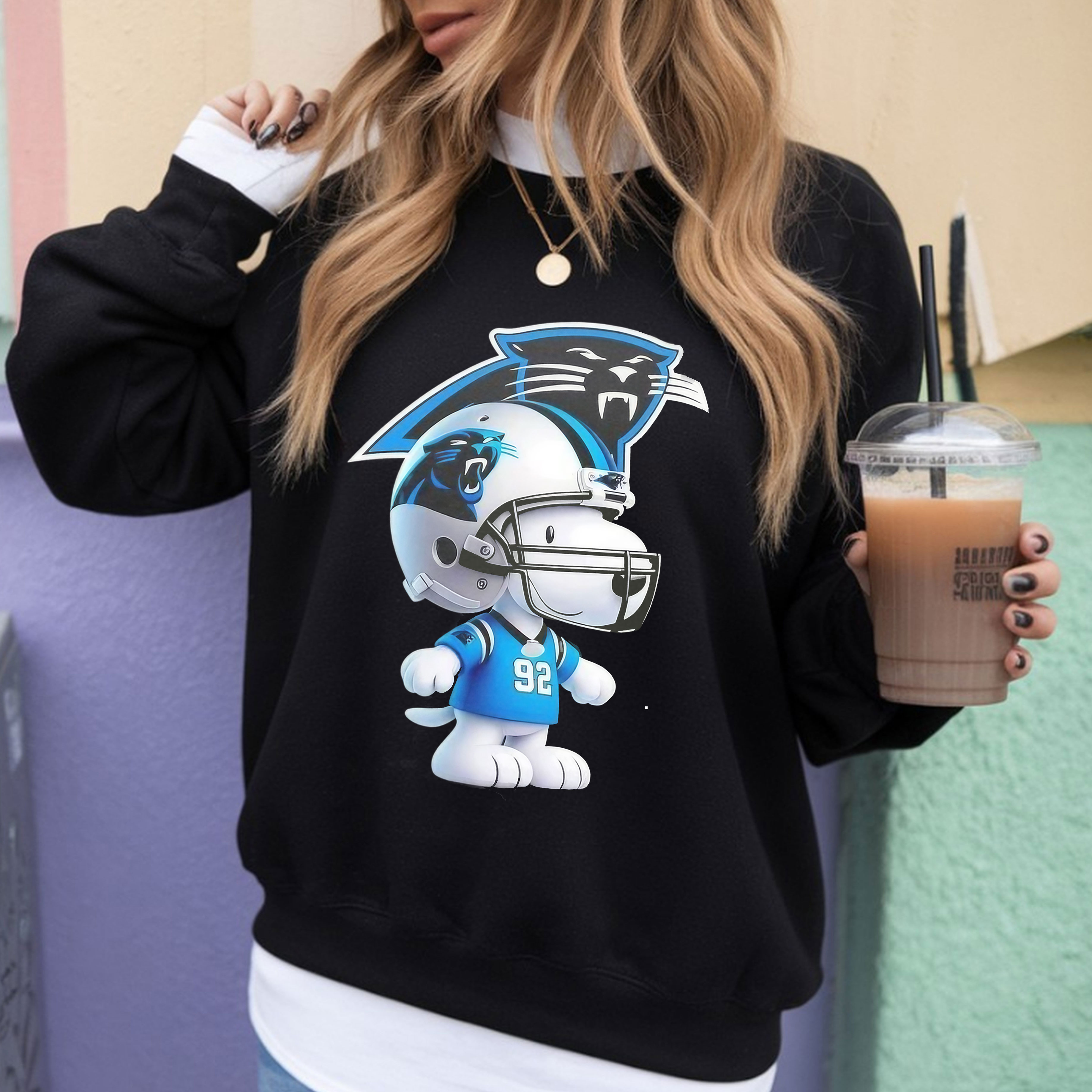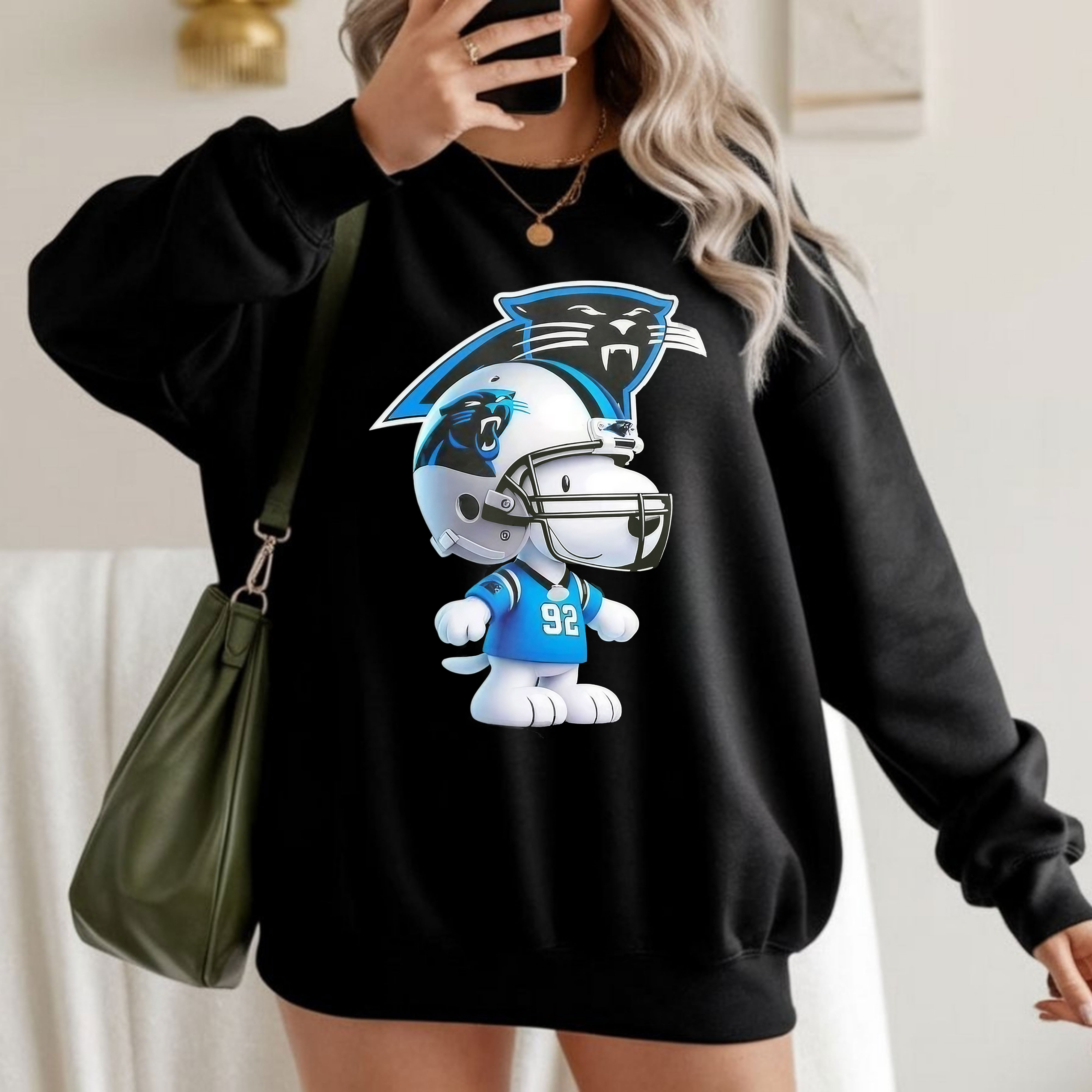 Peanuts Snoopy Smiling at Carolina Panthers Football Fans NFL Team Spirit Vintage Bootleg Blue Pride Apparel – T-Shirt, Hoodie & Sweatshirt