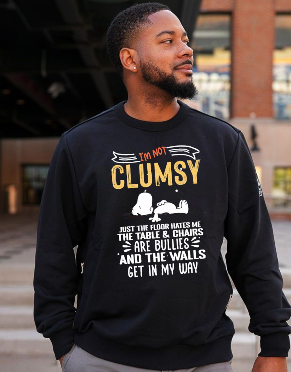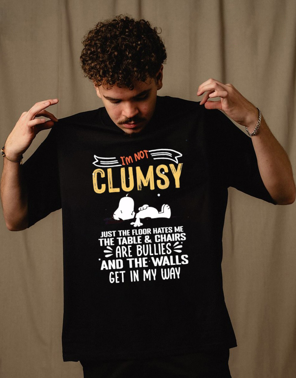 Peanuts Snoopy T-Shirt – Funny I’m Not Clumsy Just The Floor Hates Me, The Table And Chairs Too Vintage Bootleg Humor Tee
