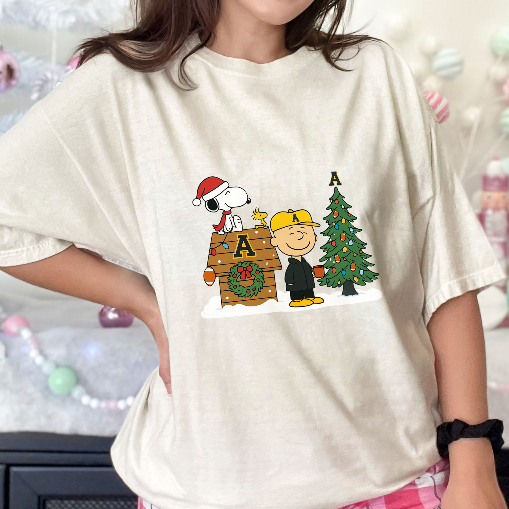 Snoopy and Charlie Brown A’s Christmas Tree Holiday MLB Team Baseball Festive Cartoon T-Shirt, Hoodie & Sweatshirt
