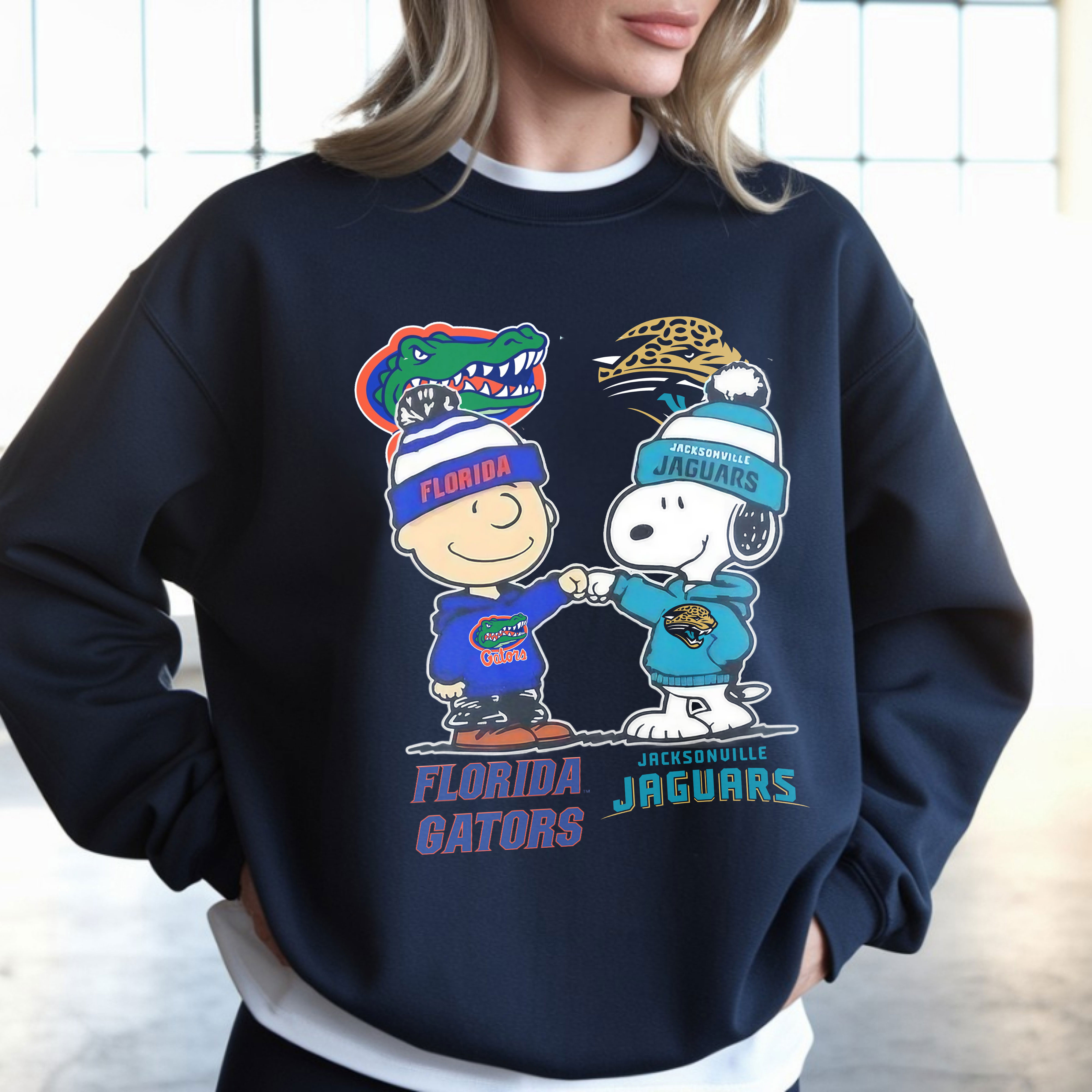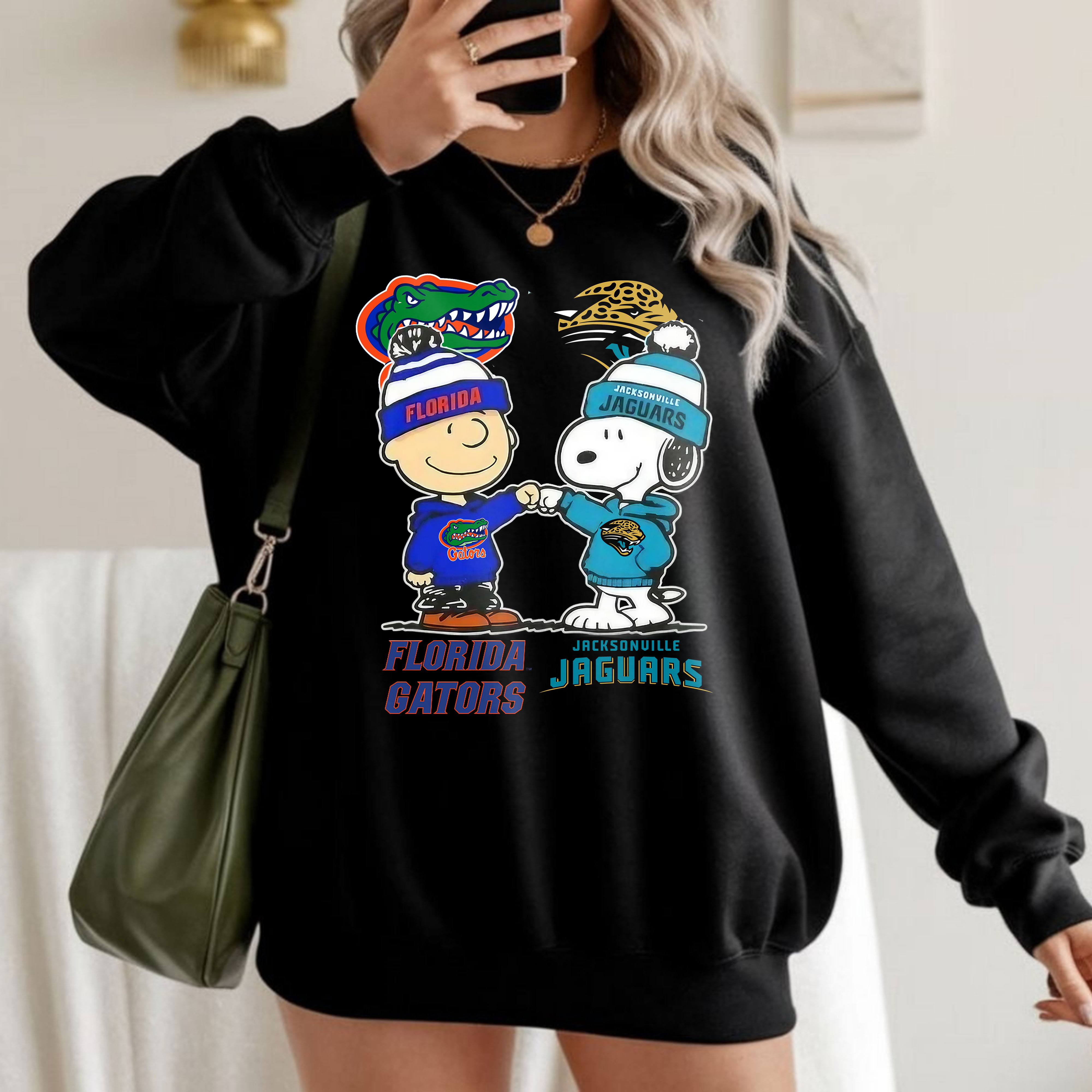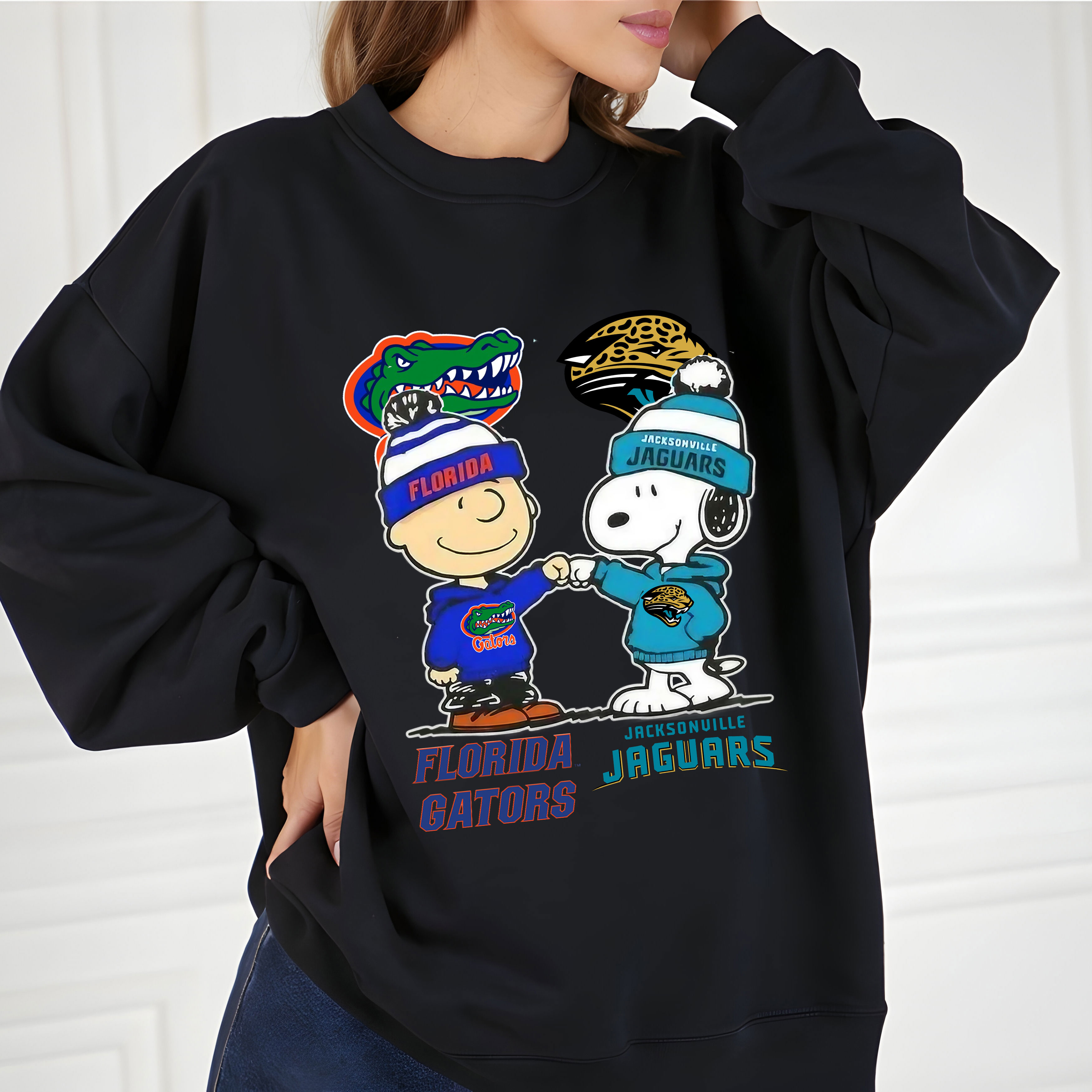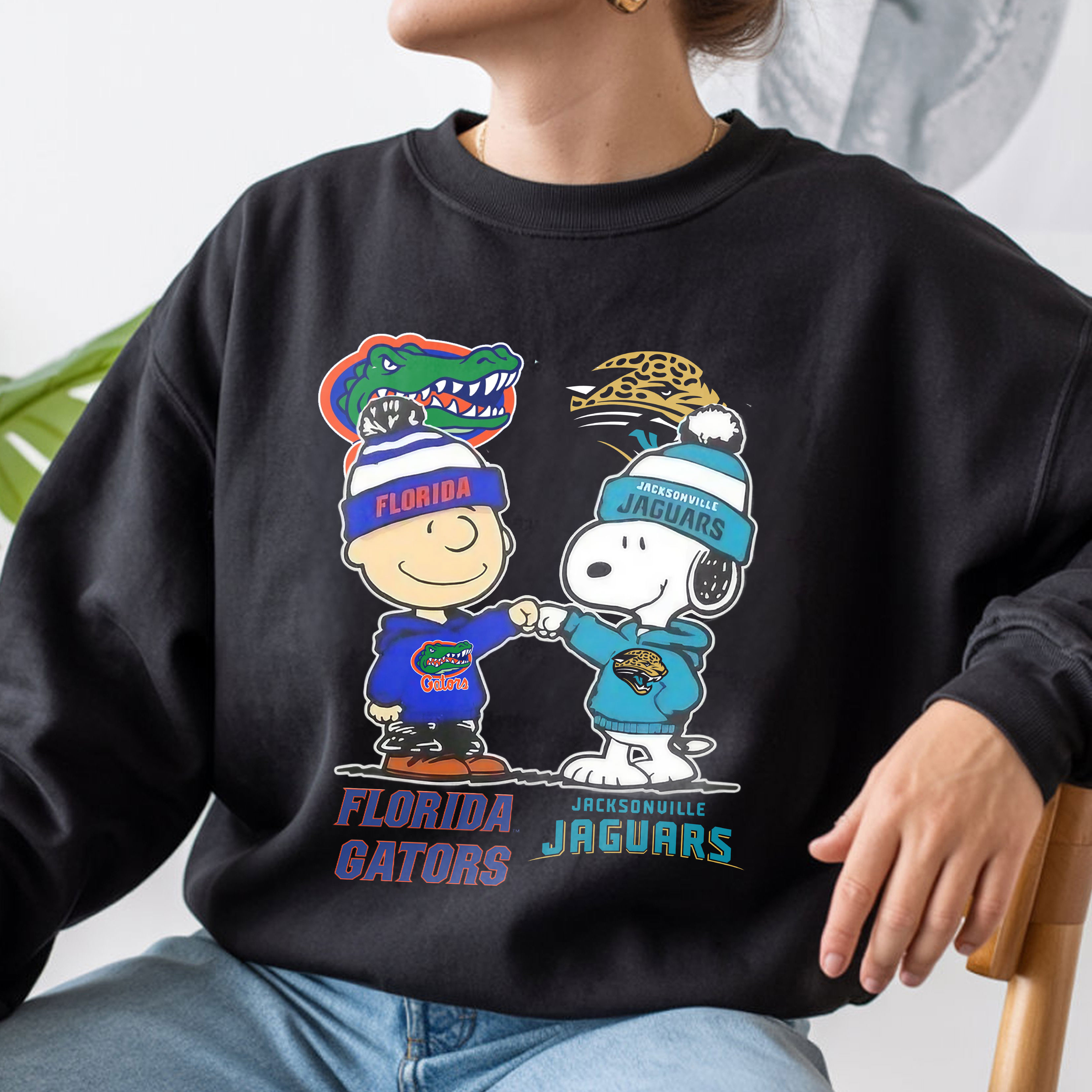 Snoopy and Charlie Brown Florida Gators x Jacksonville Jaguars Football Crossover Vintage Bootleg Team Spirit Apparel – T-Shirt, Hoodie & Sweatshirt