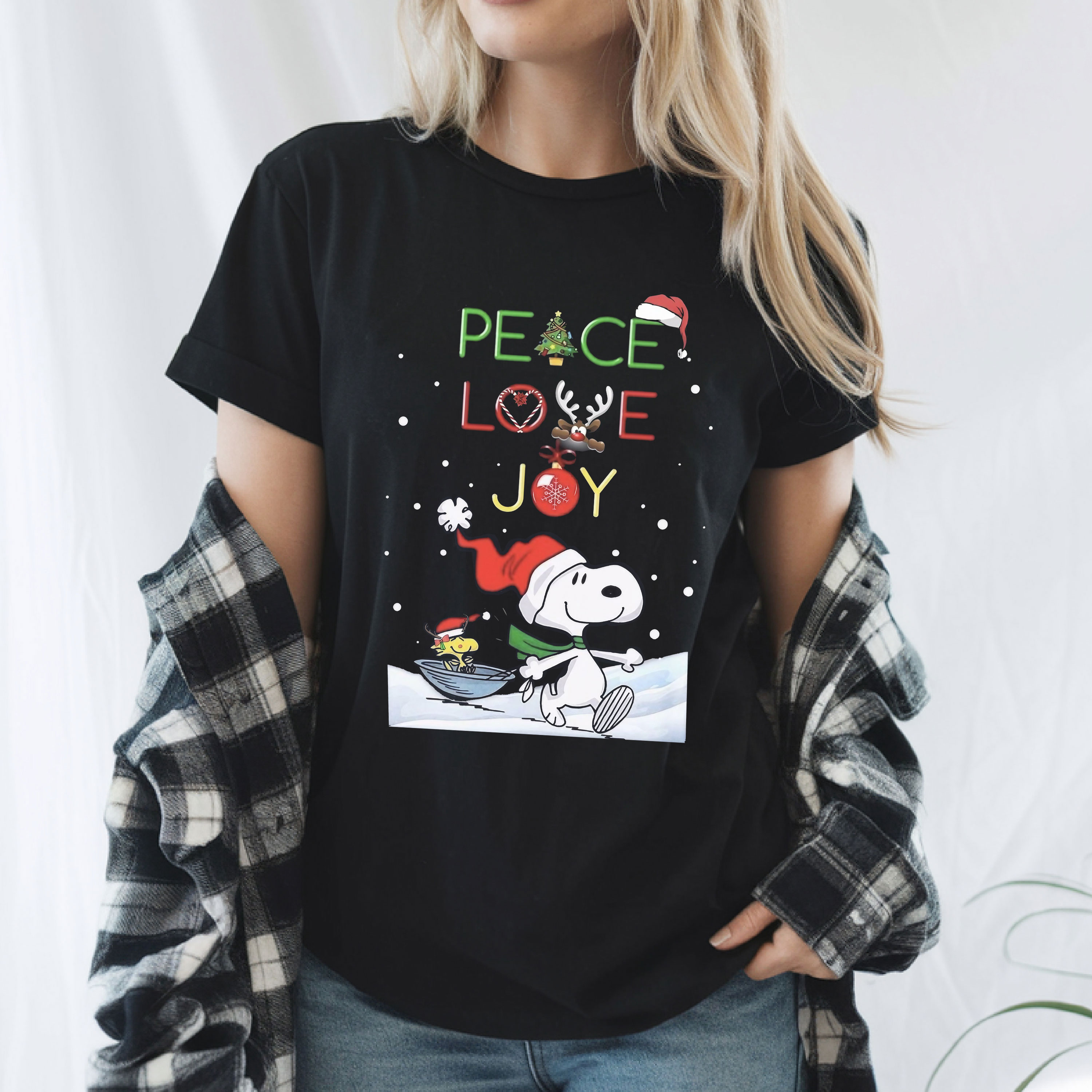 Snoopy and Charlie Brown oh come let US adore him Christmas tree shirt