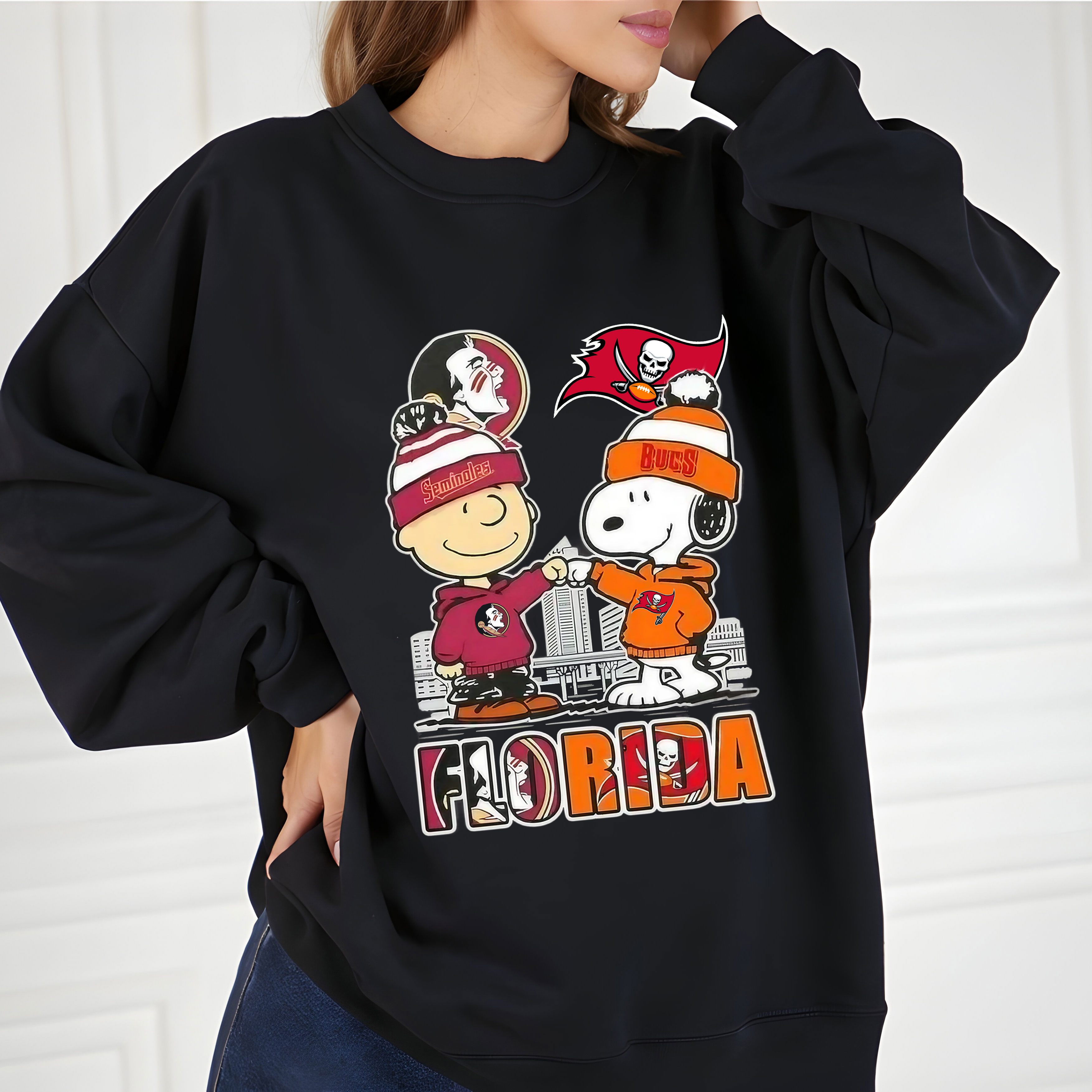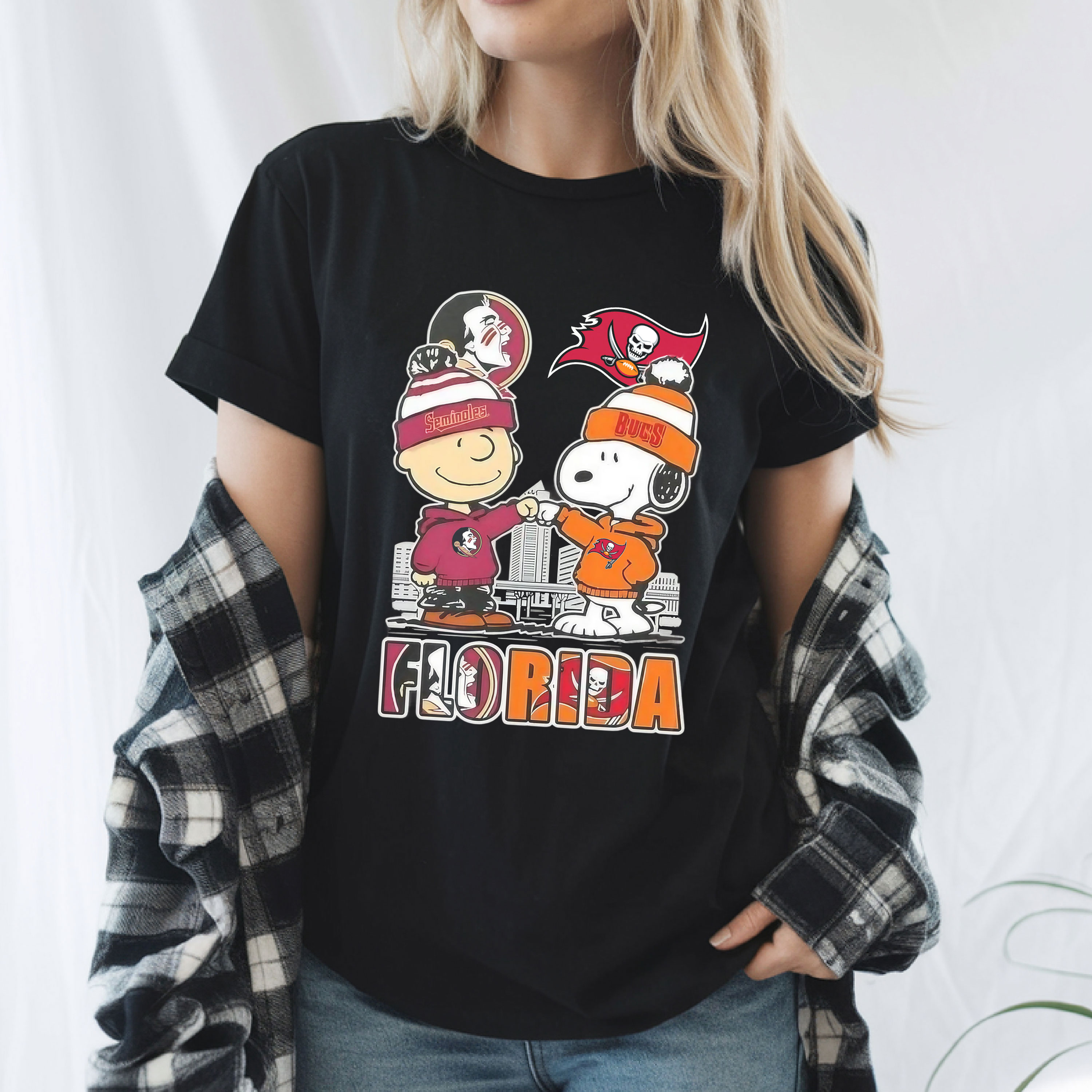 Snoopy and Charlie Brown Tampa Bay Sports Seminoles x Buccaneers Skyline Crossover Florida Vintage Bootleg City Pride Apparel – T-Shirt, Hoodie & Sweatshirt