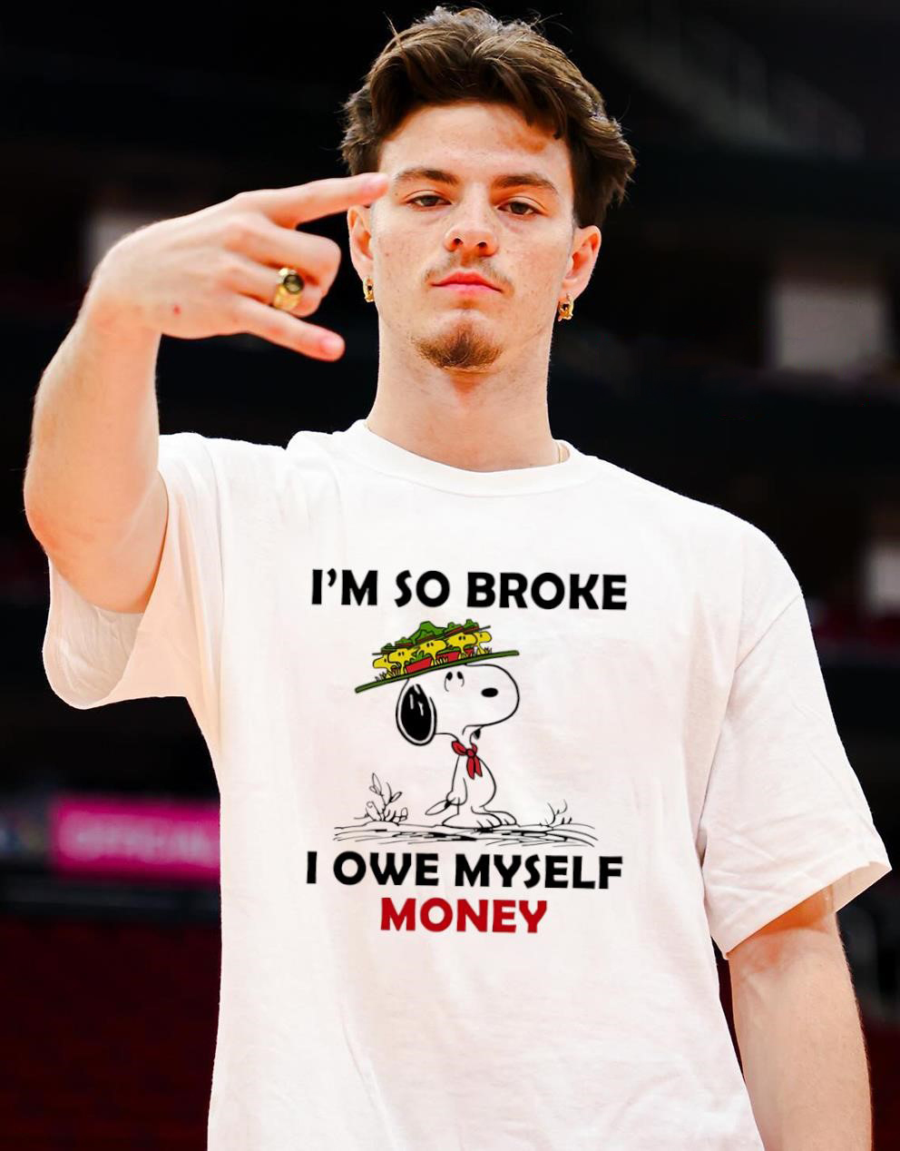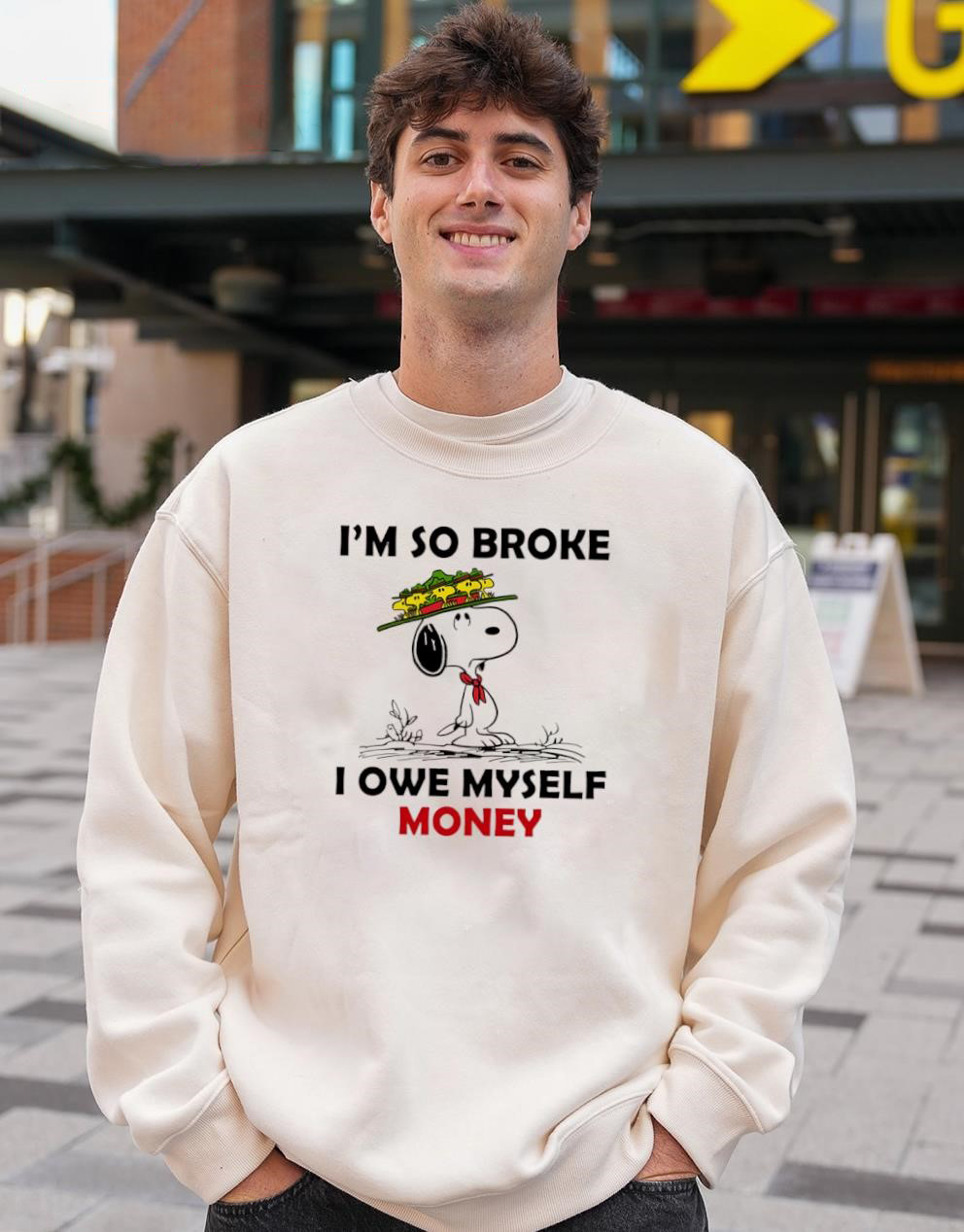 Snoopy and Woodstock I’m So Broke I Owe Myself Money Funny Cartoon Humor Graphic T-Shirt, Hoodie, Sweatshirt, Merch & Apparel