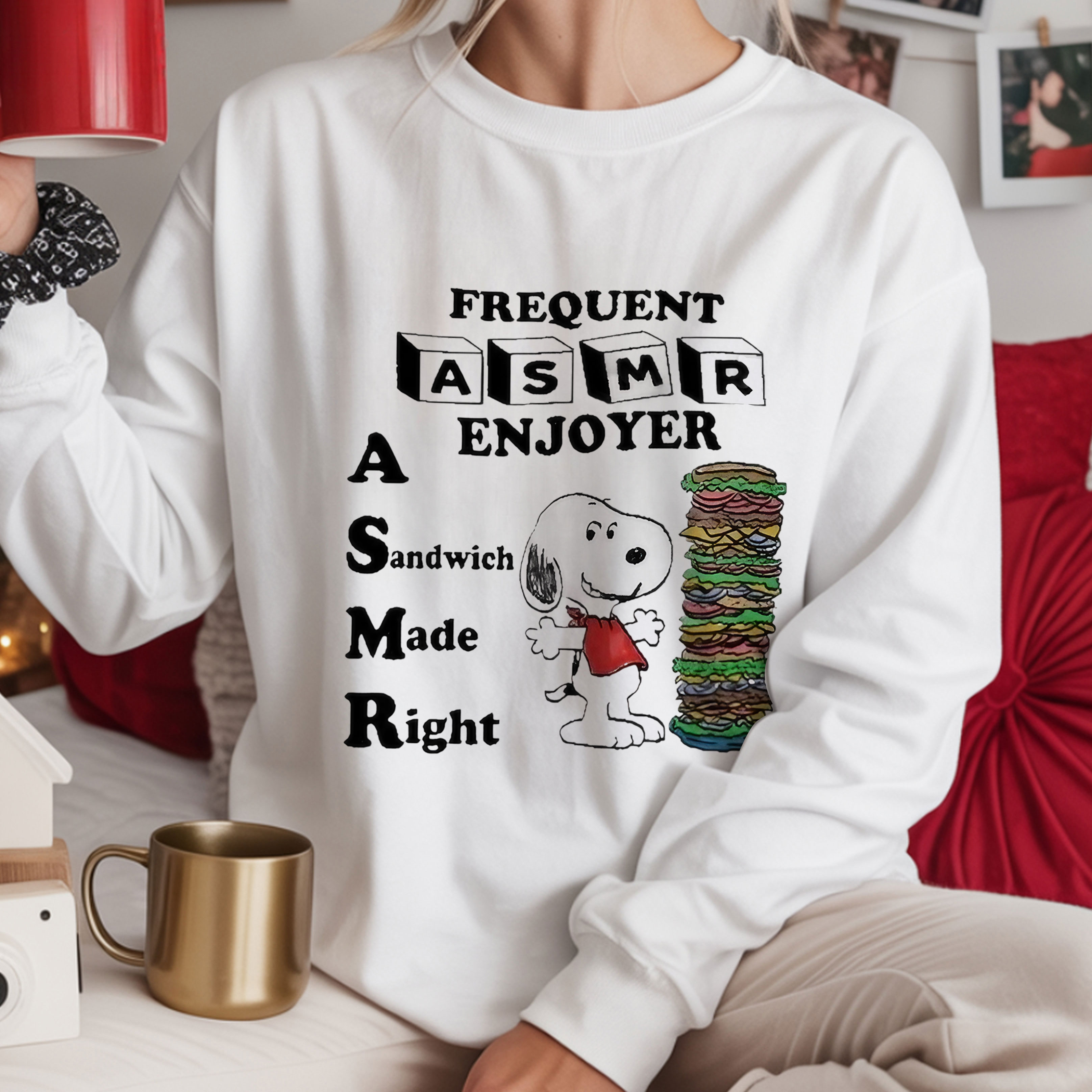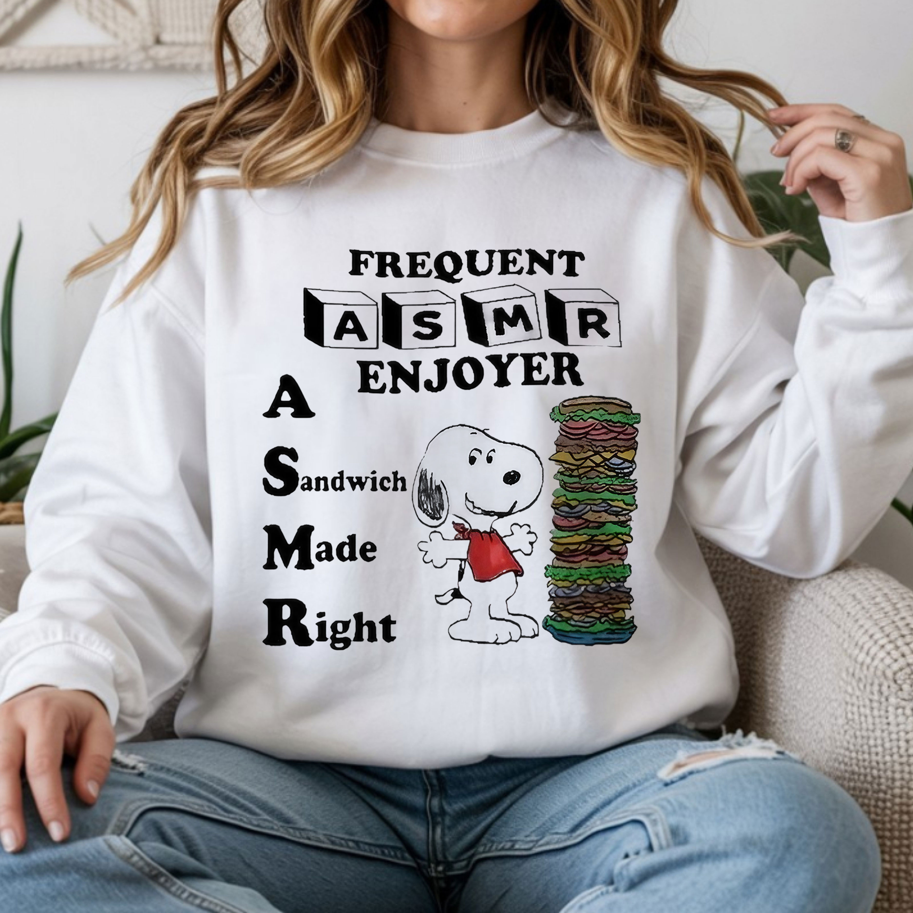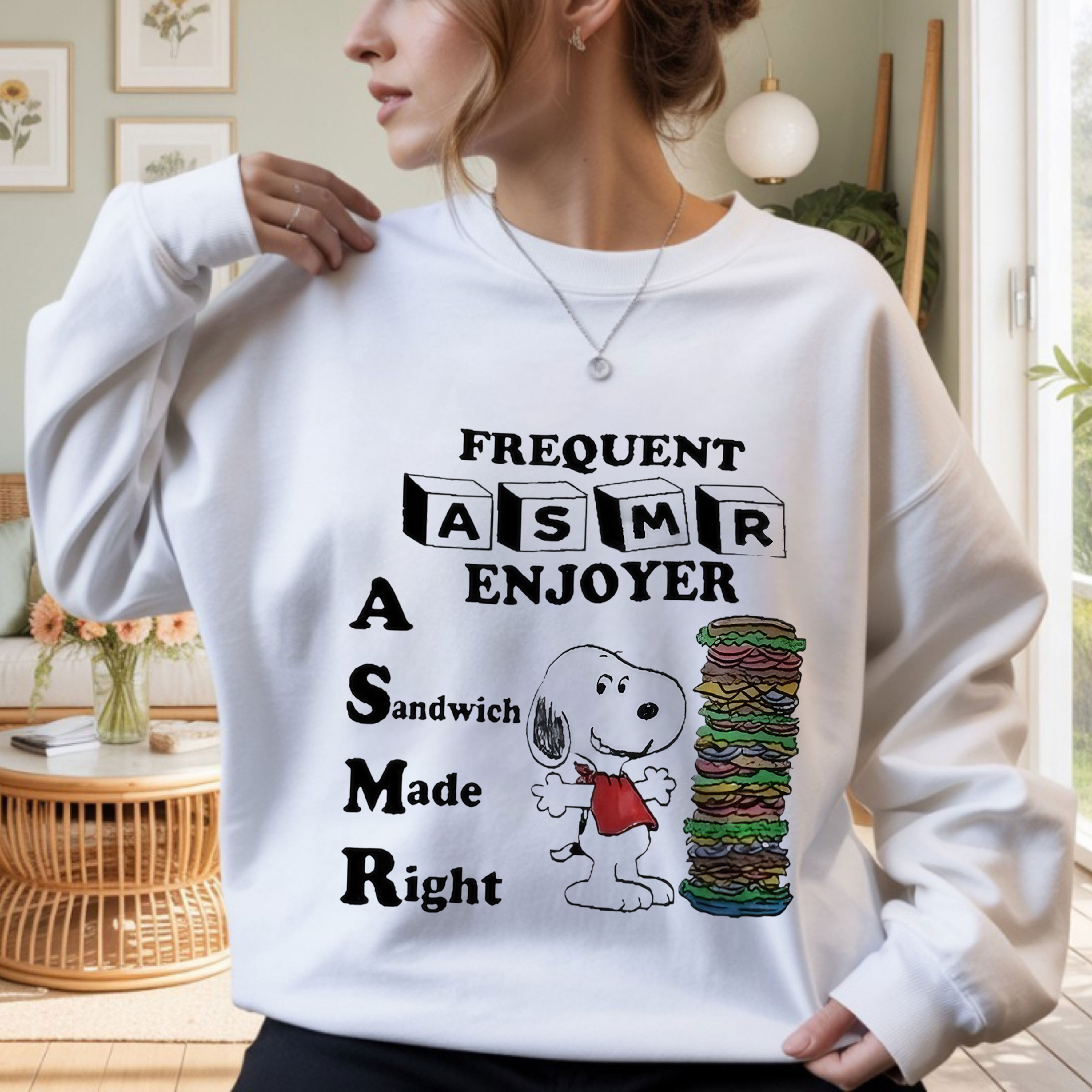Snoopy Jmcgg Frequent ASMR Enjoyer A Sandwich Made Right Meme Funny Internet Culture Vintage Bootleg Apparel – T-Shirt, Hoodie & Sweatshirt