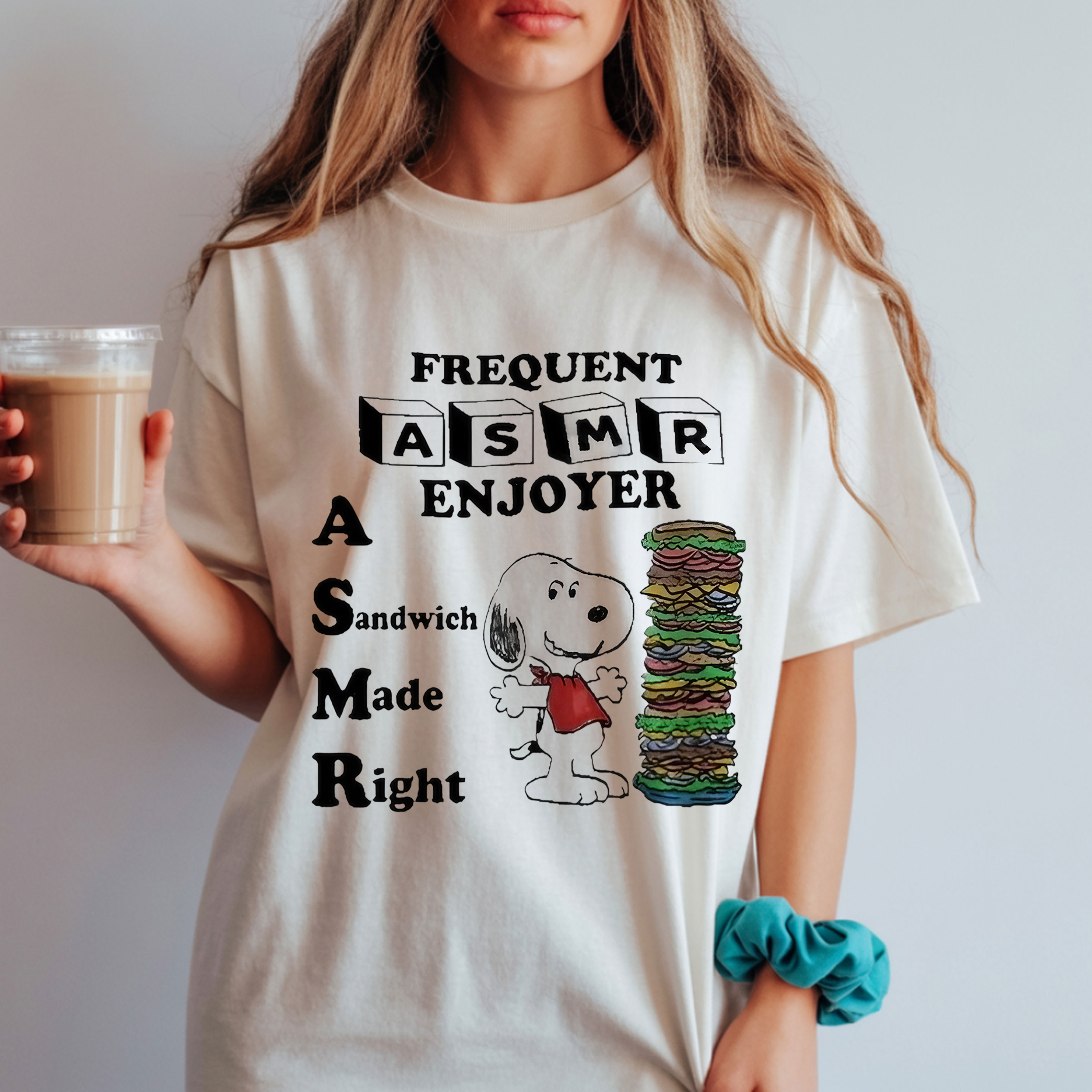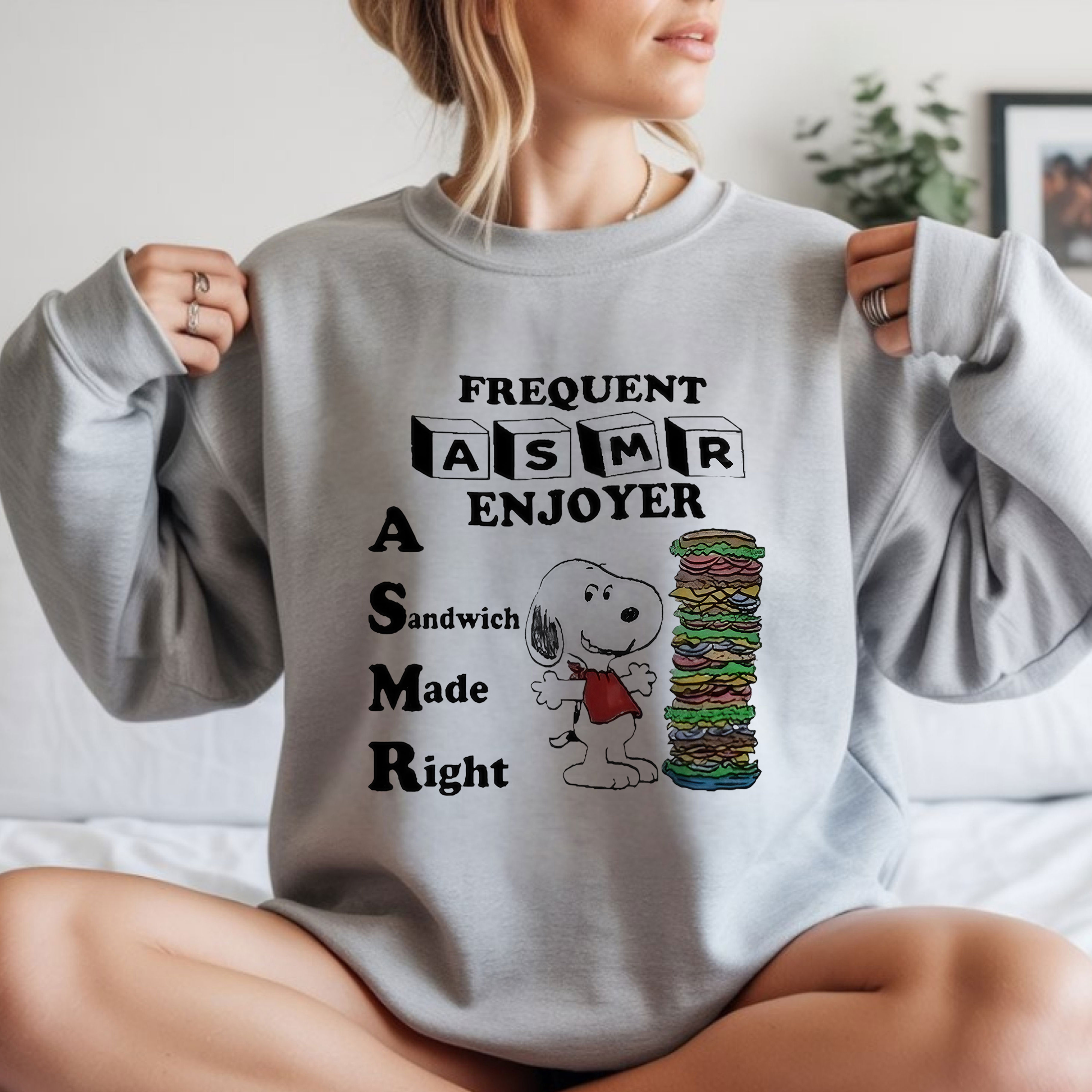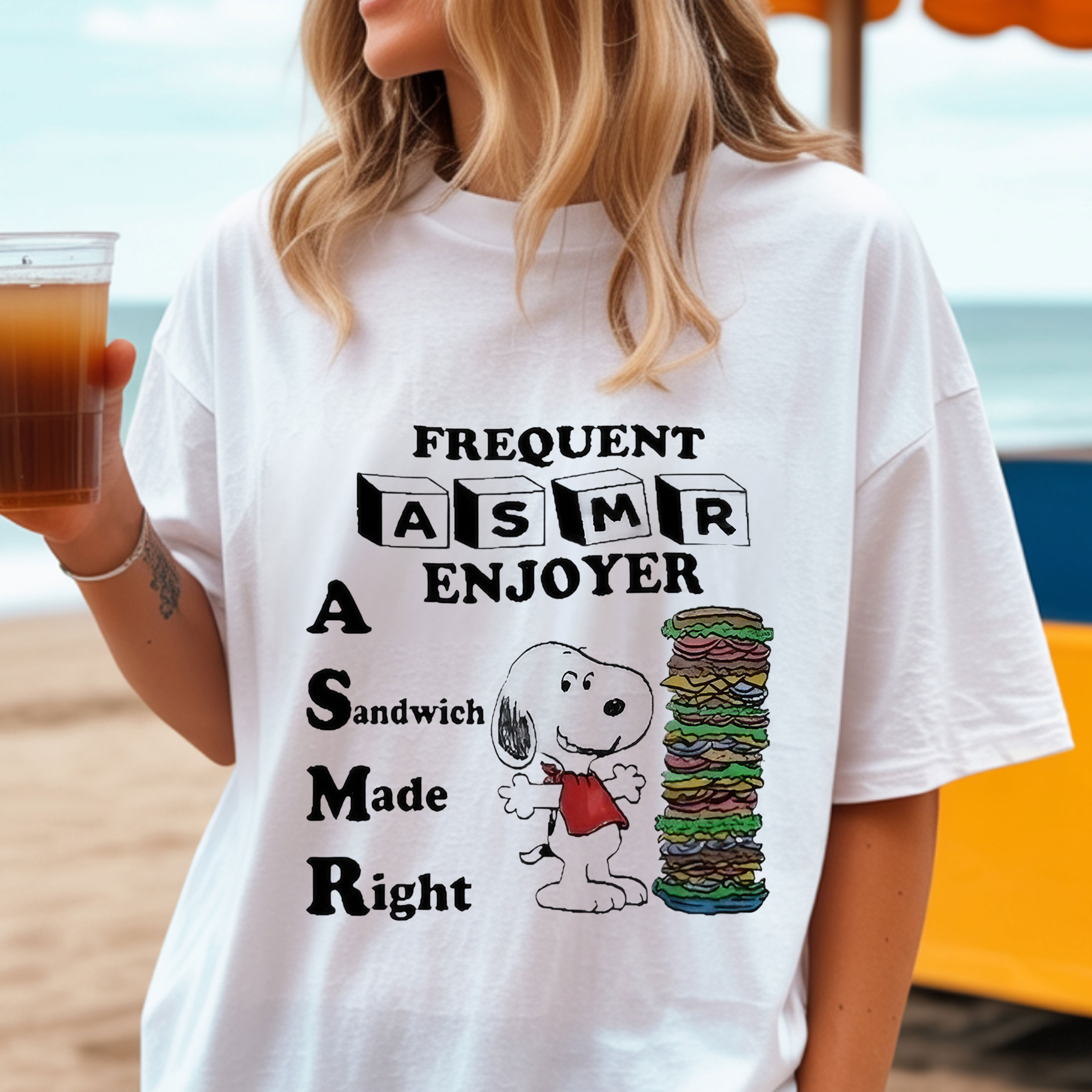 Snoopy Jmcgg Frequent ASMR Enjoyer A Sandwich Made Right Meme Funny Internet Culture Vintage Bootleg Apparel – T-Shirt, Hoodie & Sweatshirt