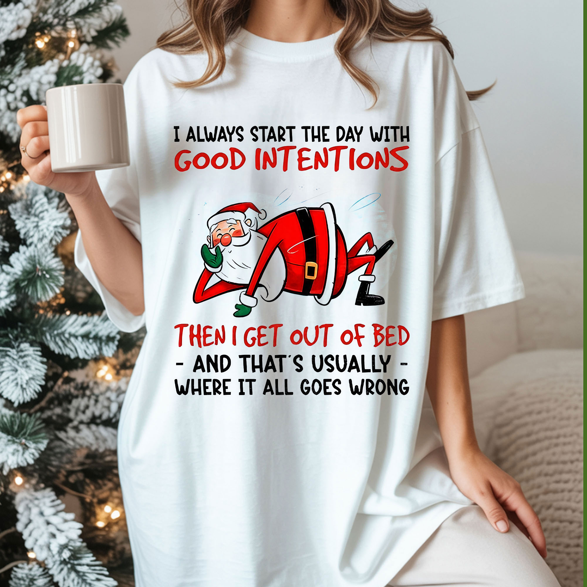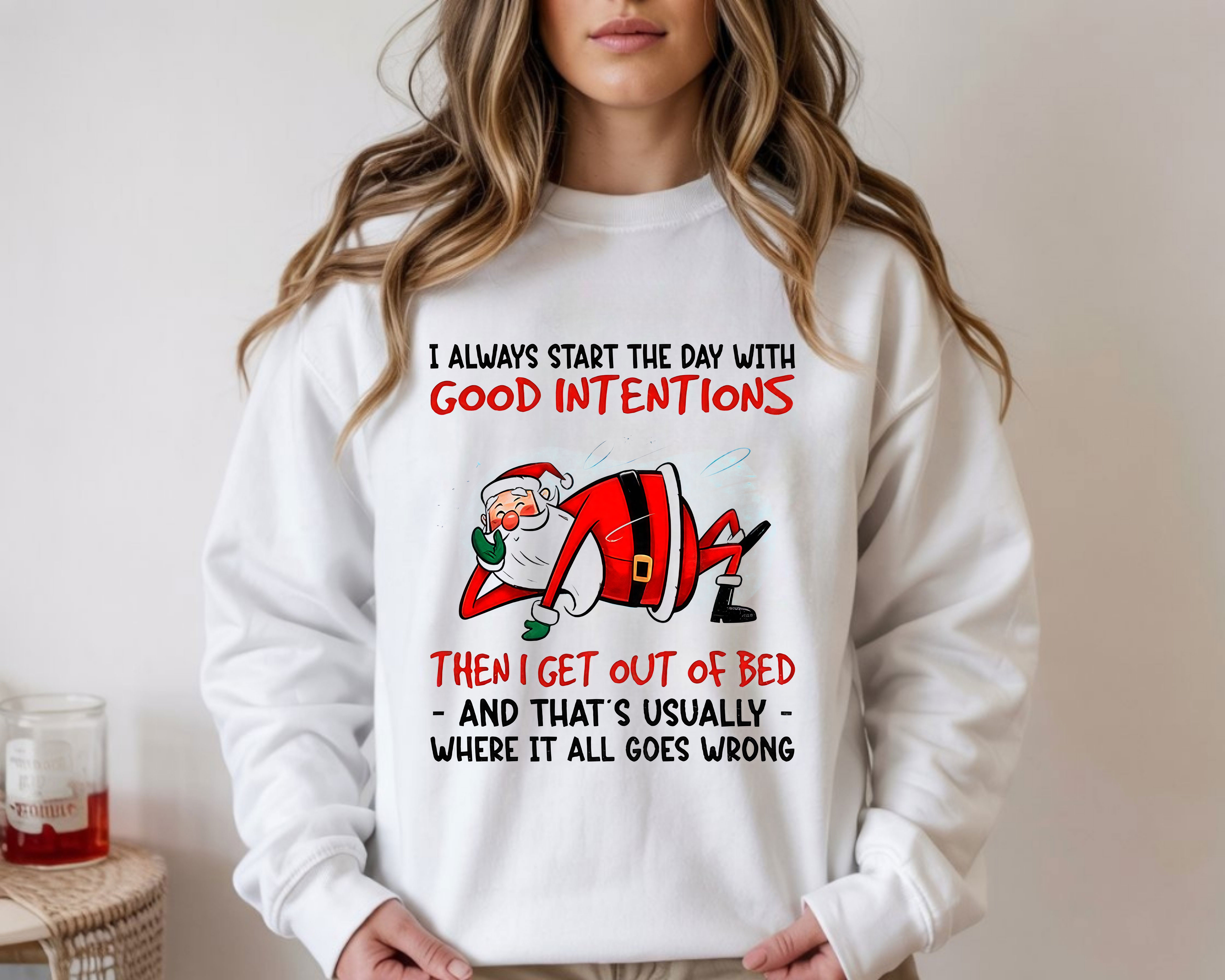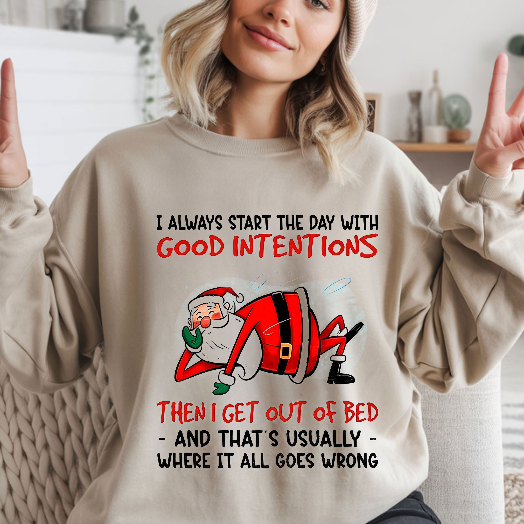 Good Intentions Santa Fall Design Christmas Humor Retro T-Shirt, Hoodie & Sweatshirt