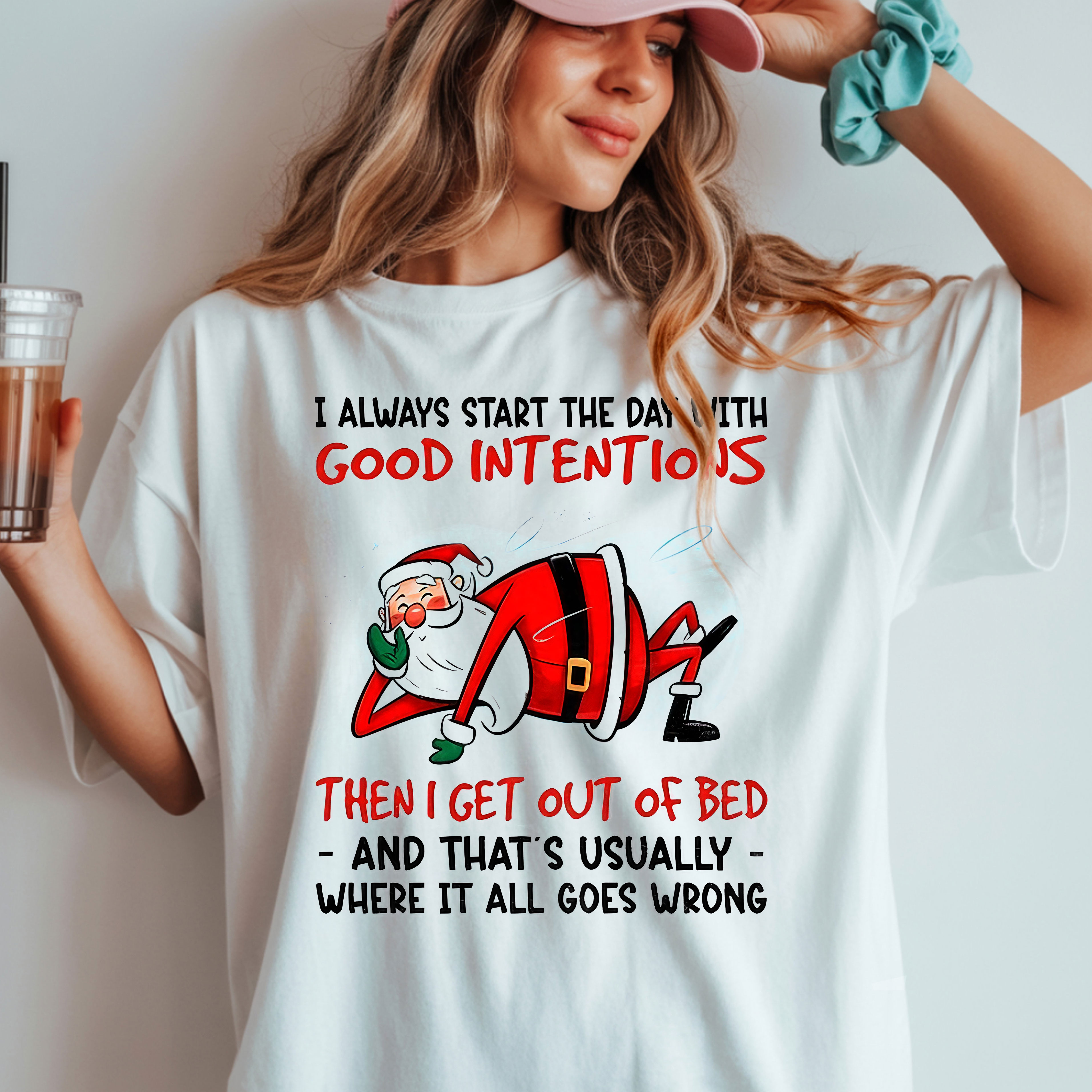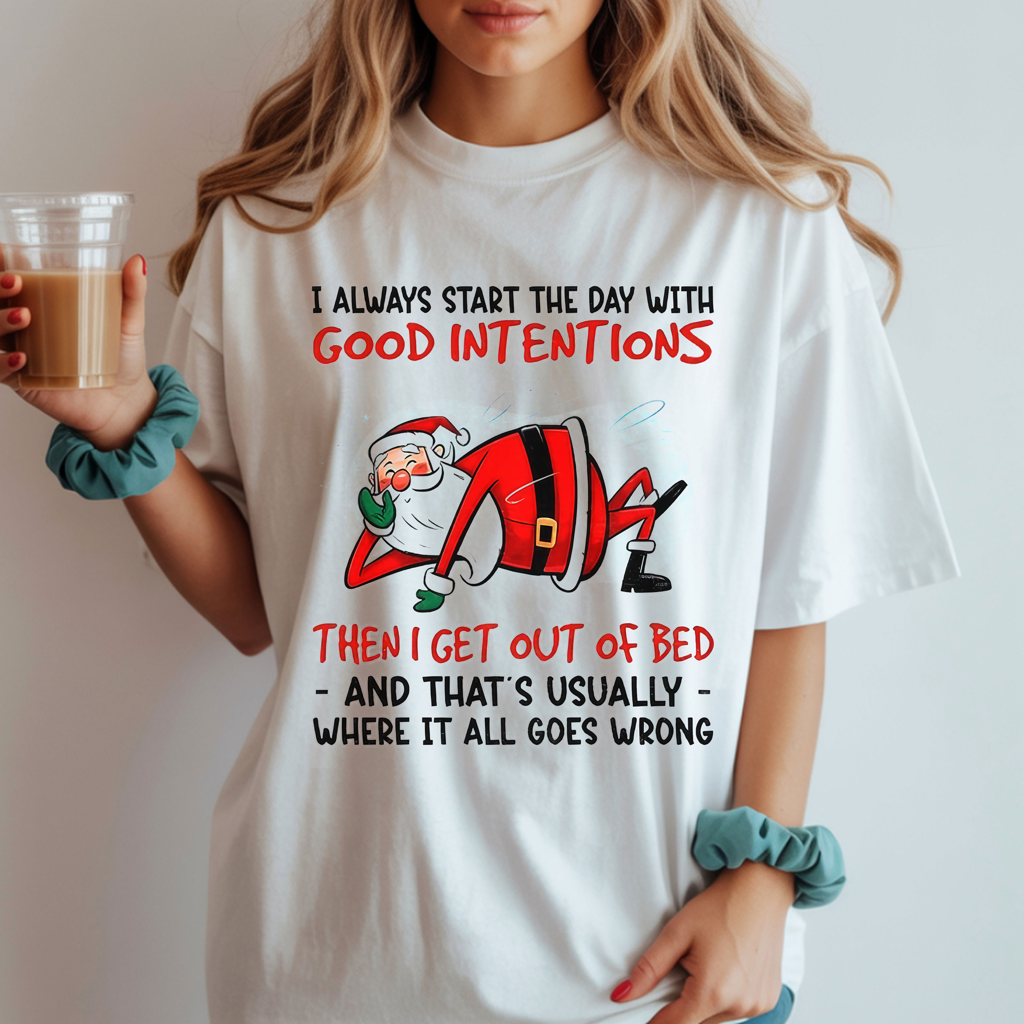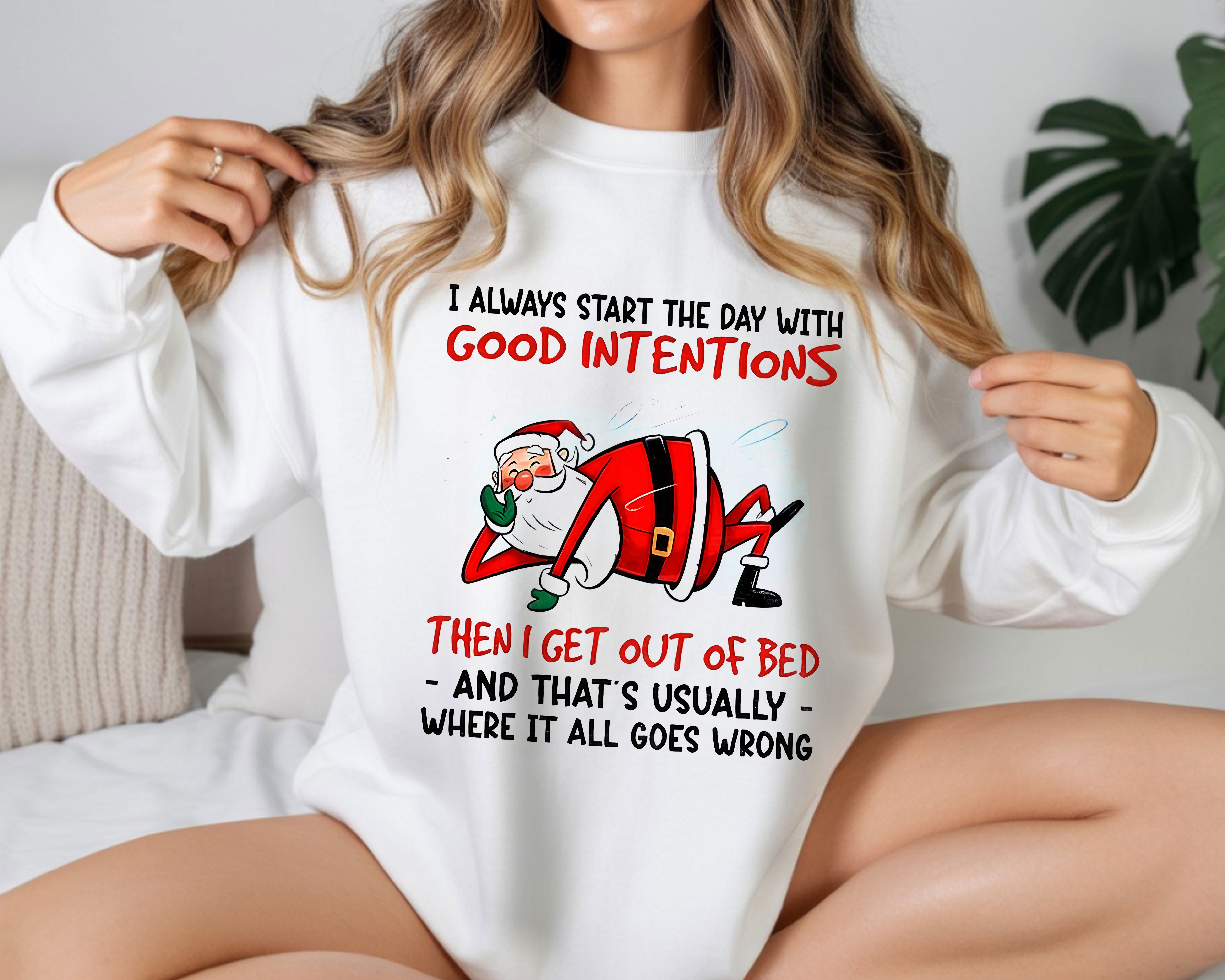Good Intentions Santa Fall Design Christmas Humor Retro T-Shirt, Hoodie & Sweatshirt