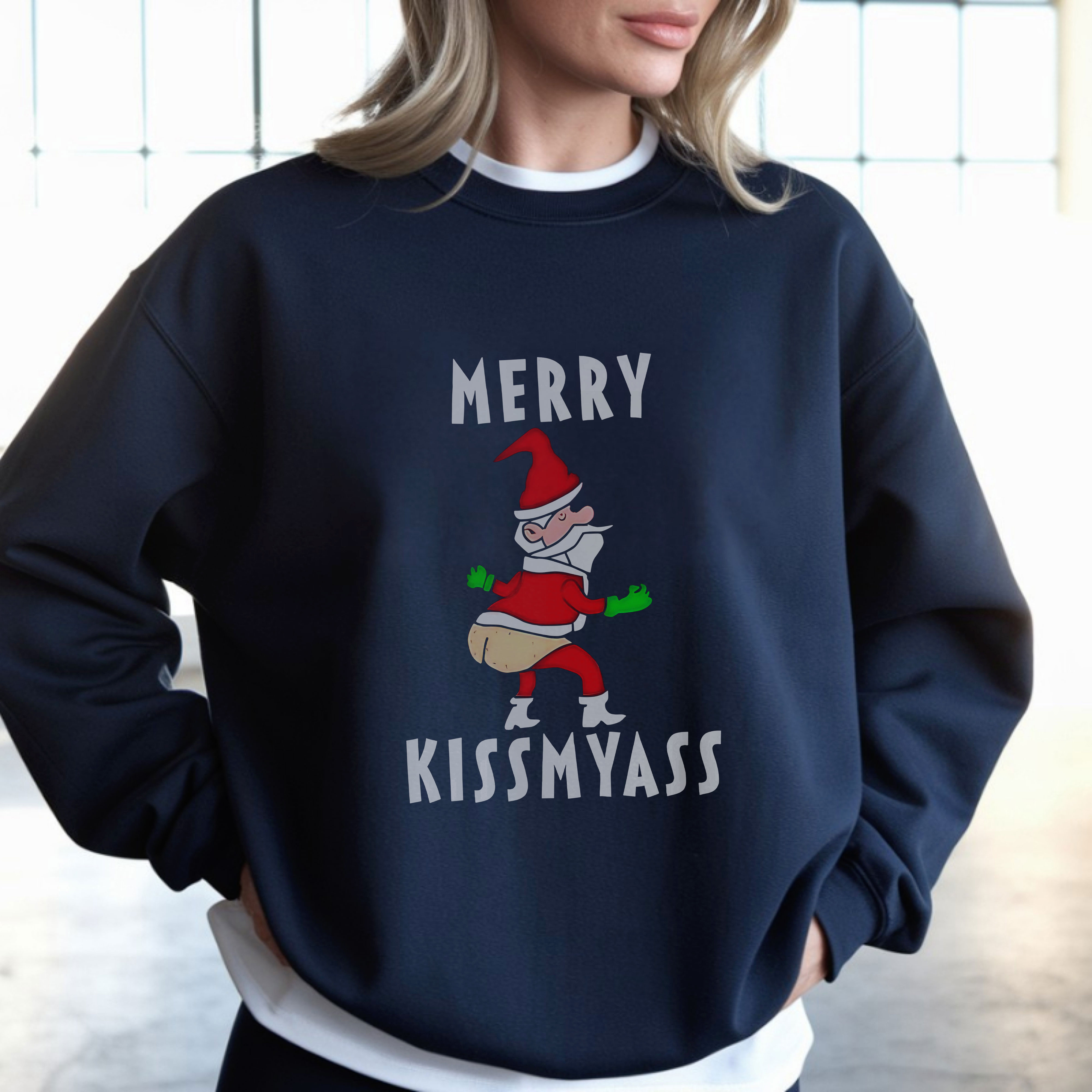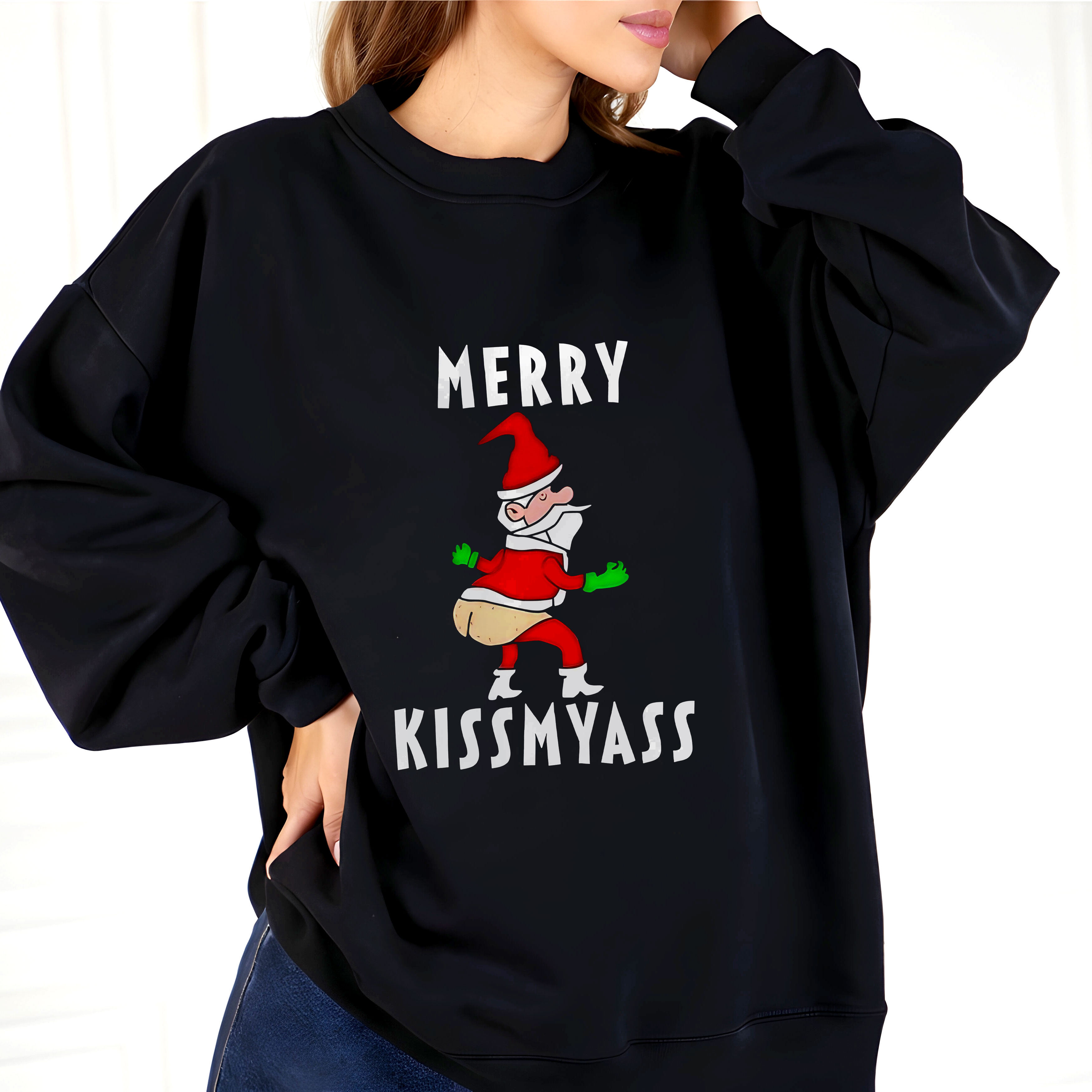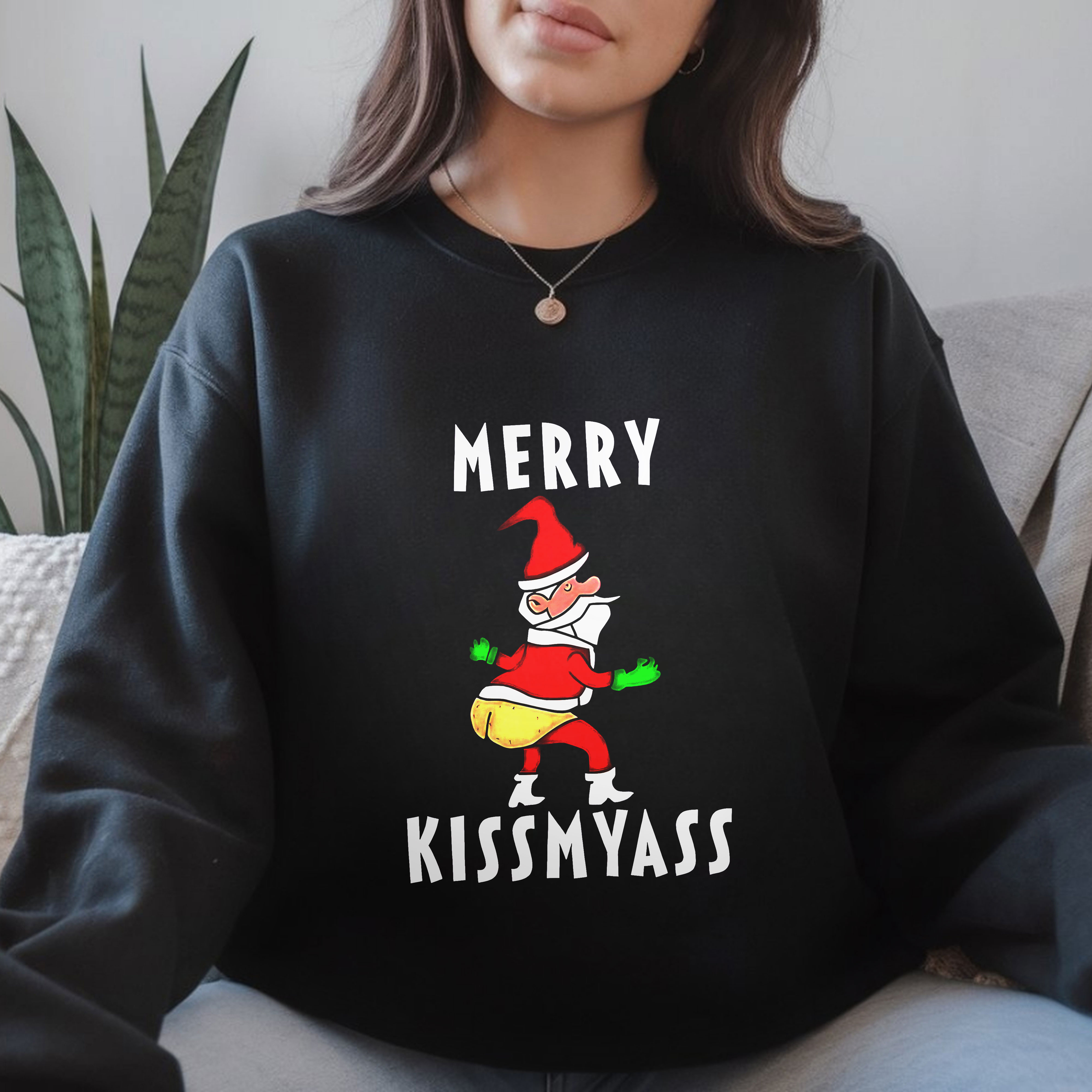 Merry Kissmyass Funny Santa Design Christmas Humor Vintage T-Shirt, Hoodie & Sweatshirt