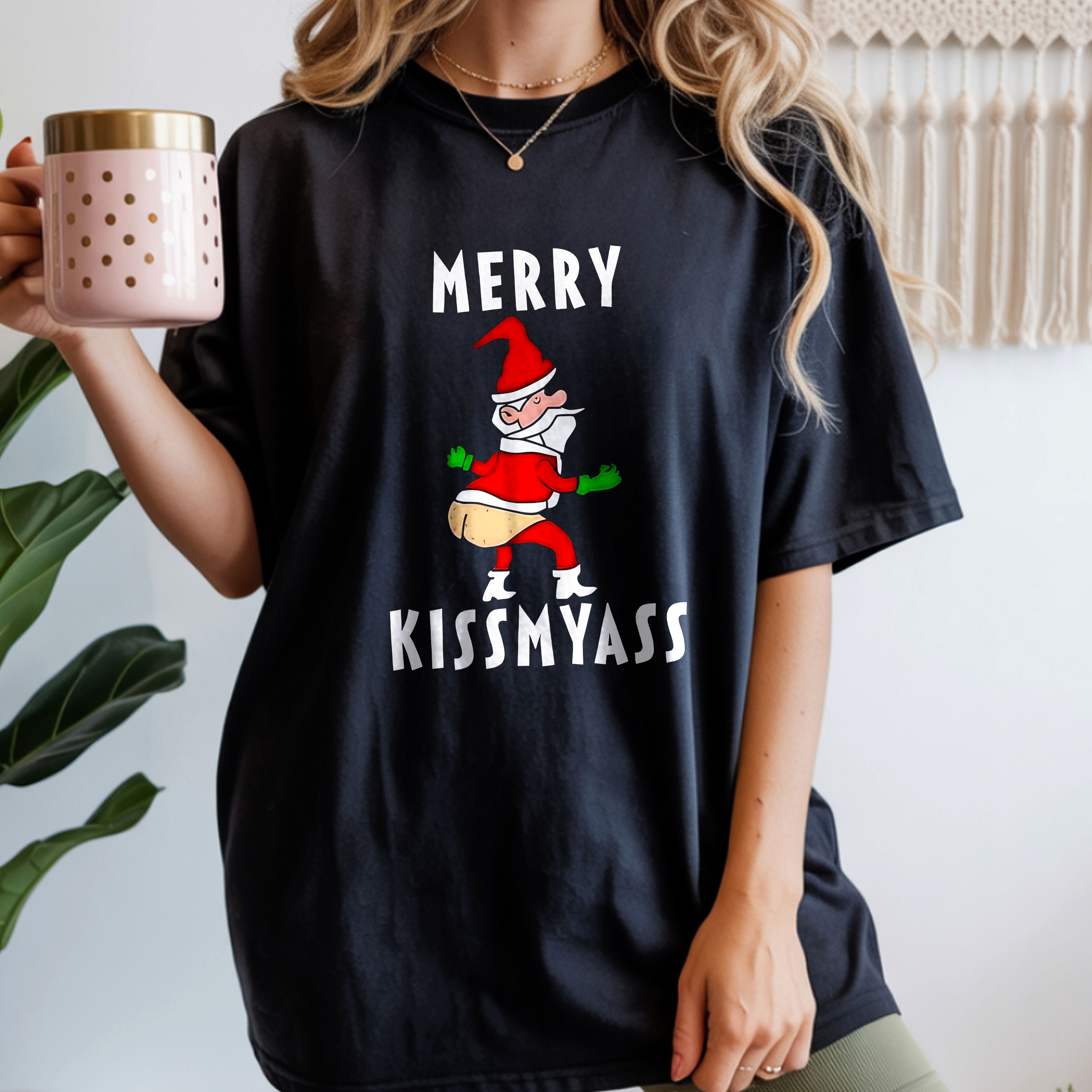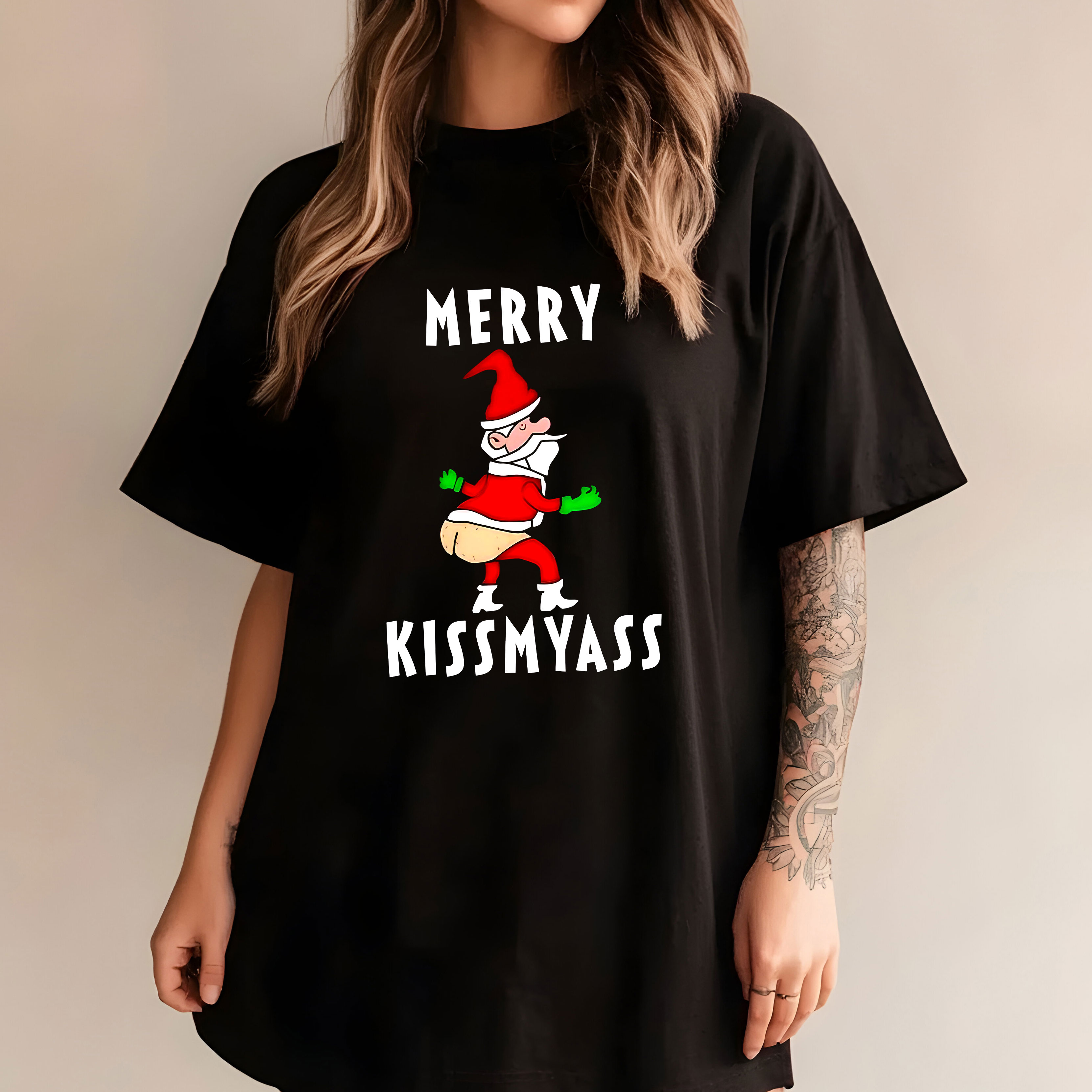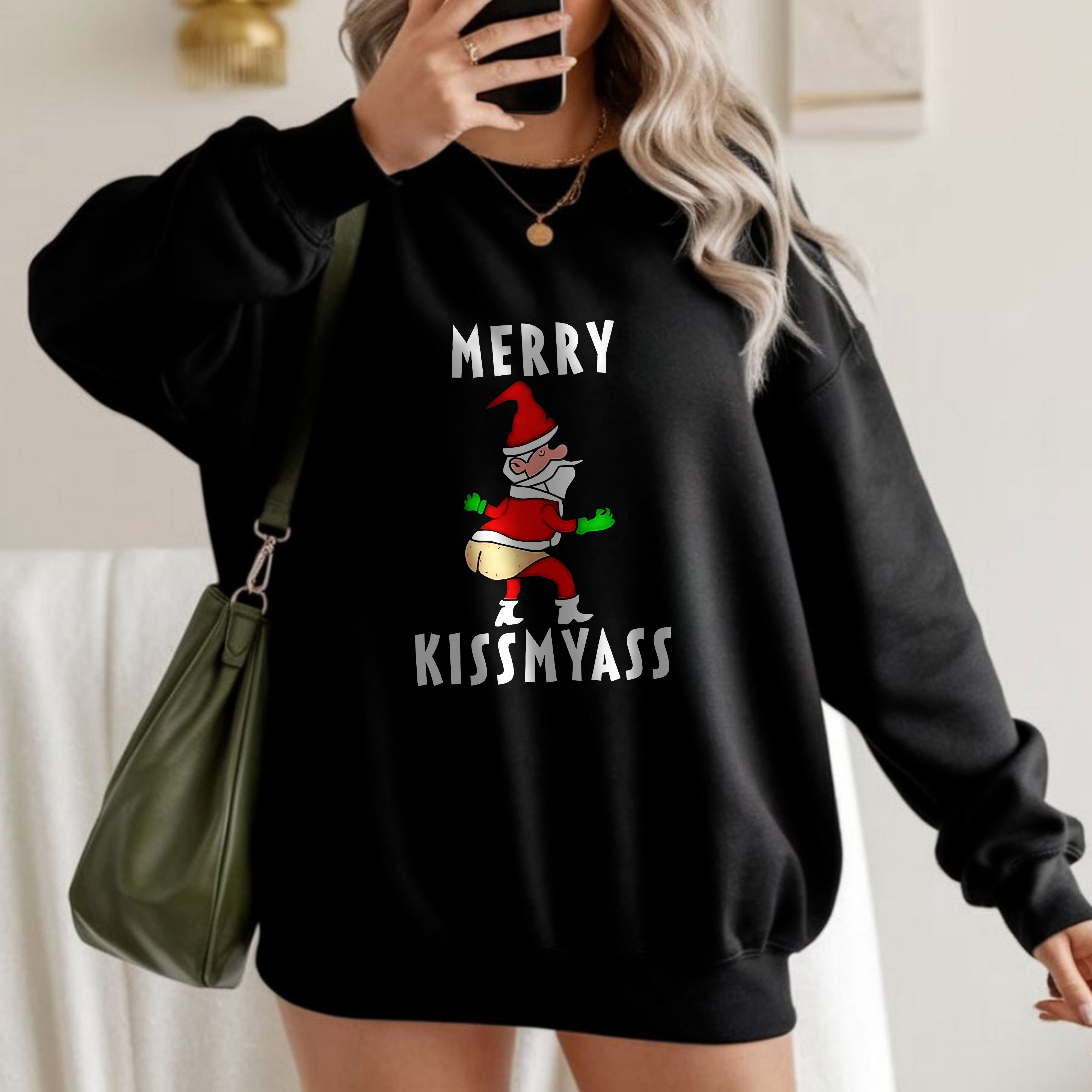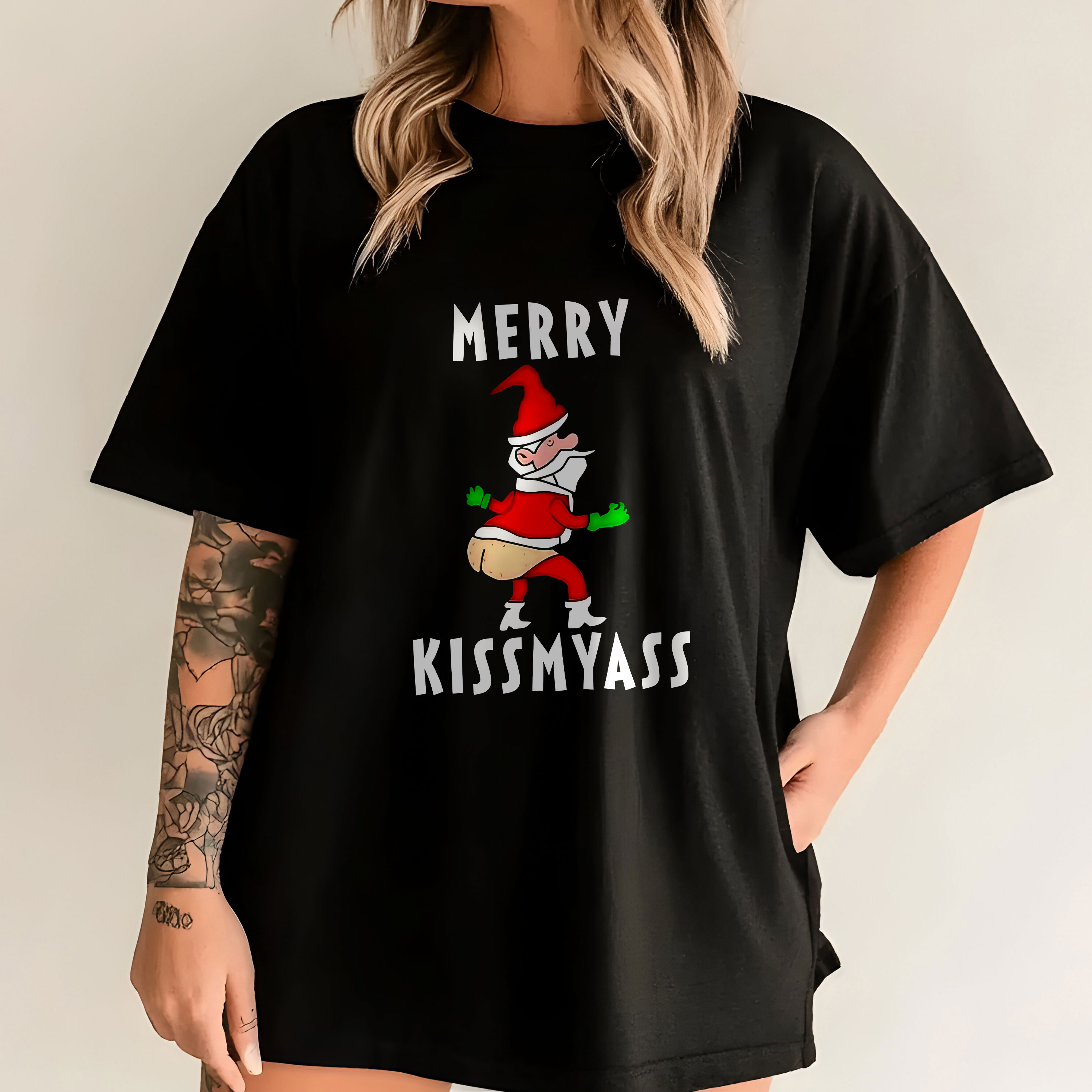Merry Kissmyass Funny Santa Design Christmas Humor Vintage T-Shirt, Hoodie & Sweatshirt