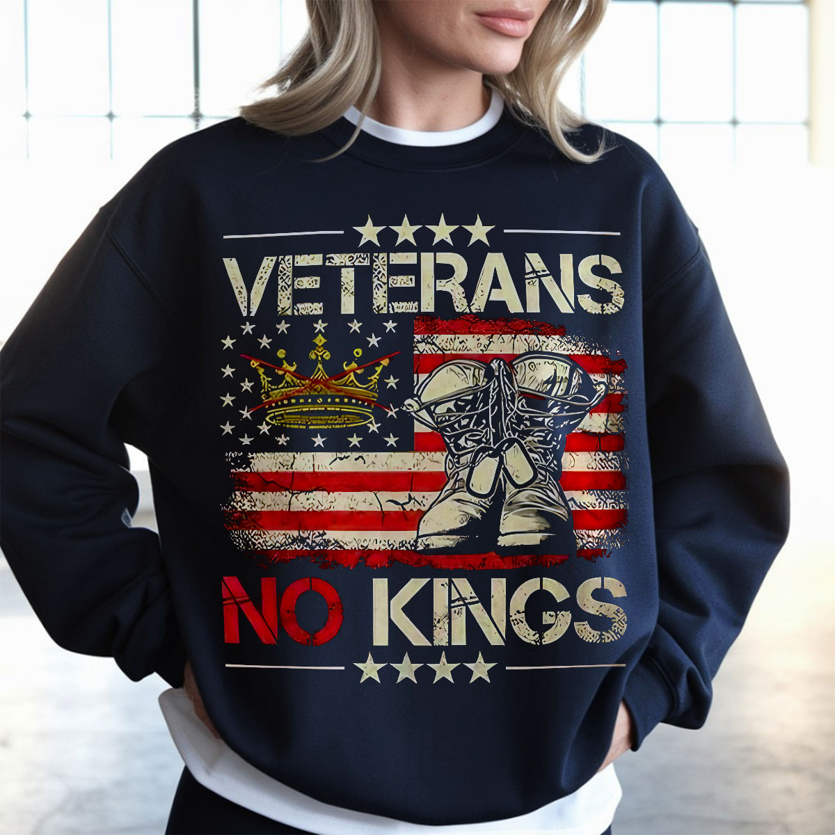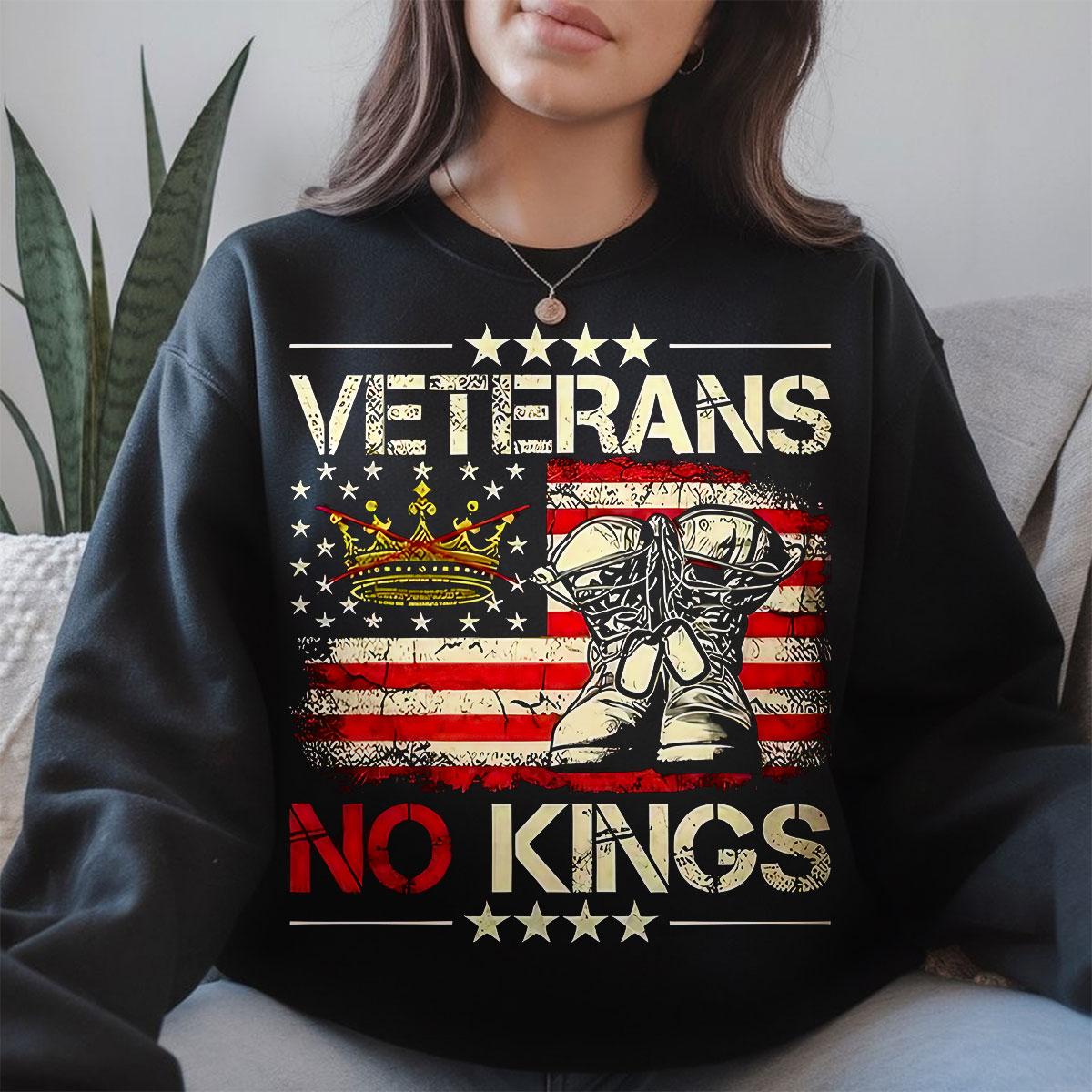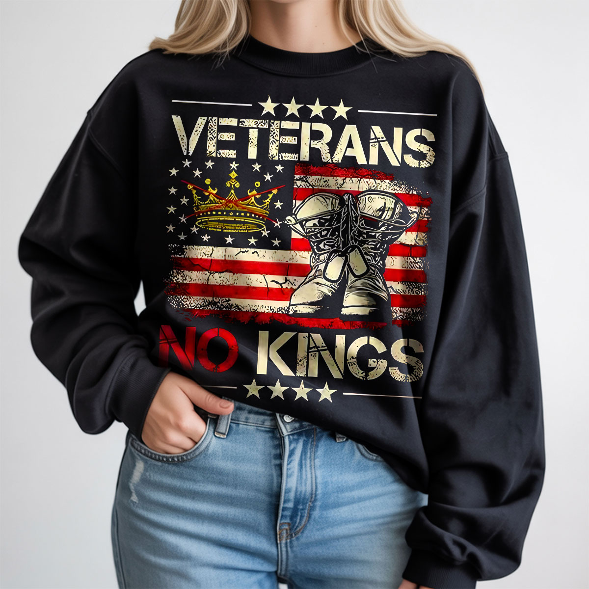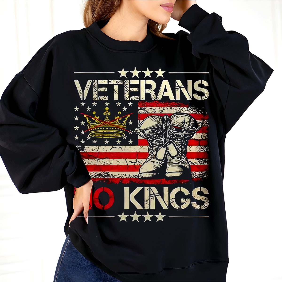 Veterans No Kings American Flag Graphic Sweatshirt, Patriotic Army Pride Pullover, Military Support Tee, Unisex USA Apparel, T-Shirt, Hoodie & Sweatshirt