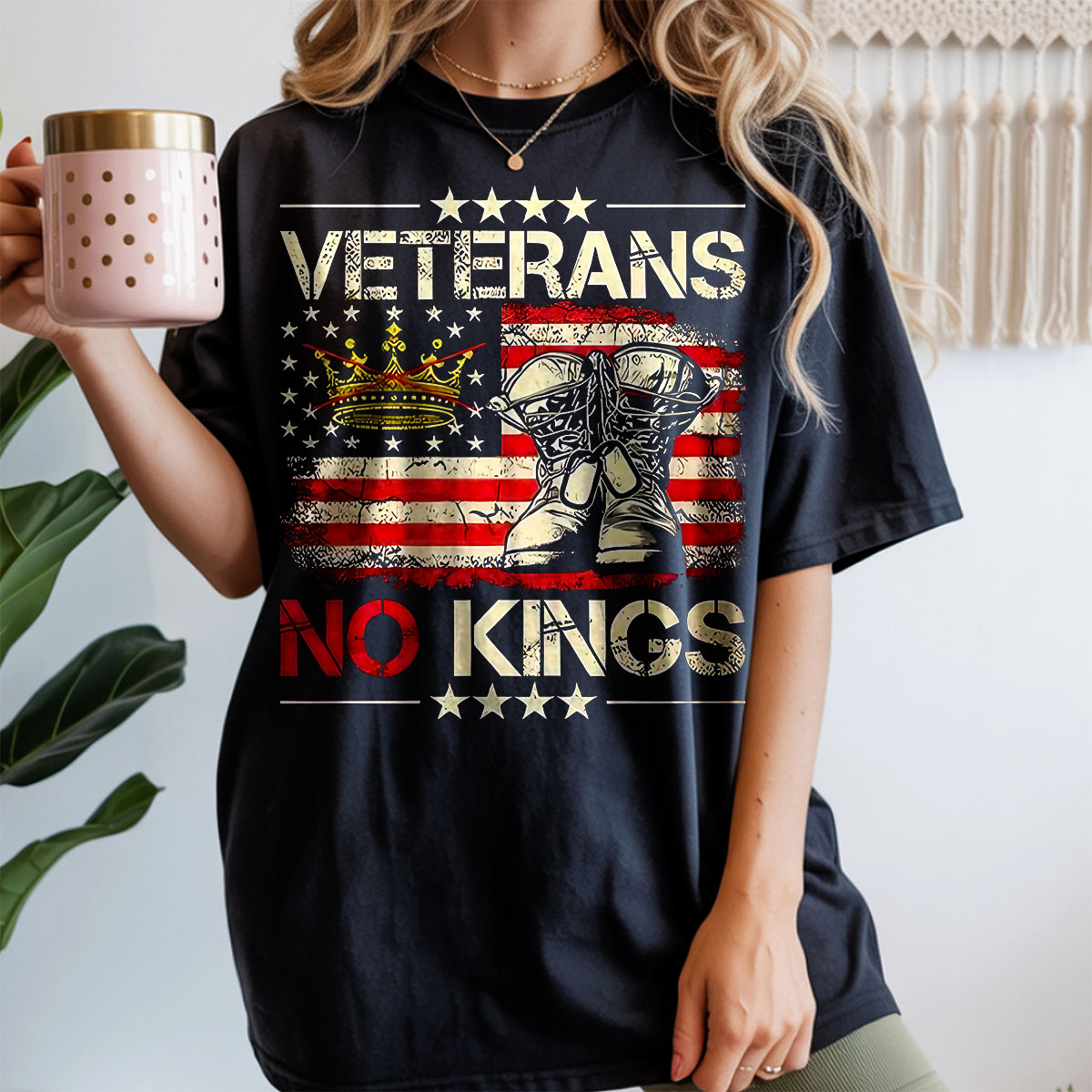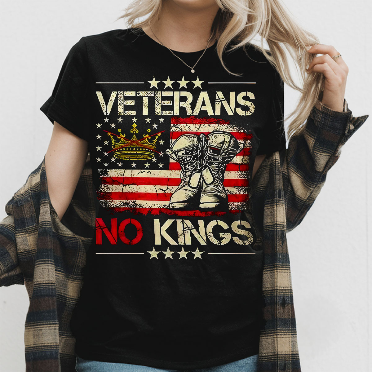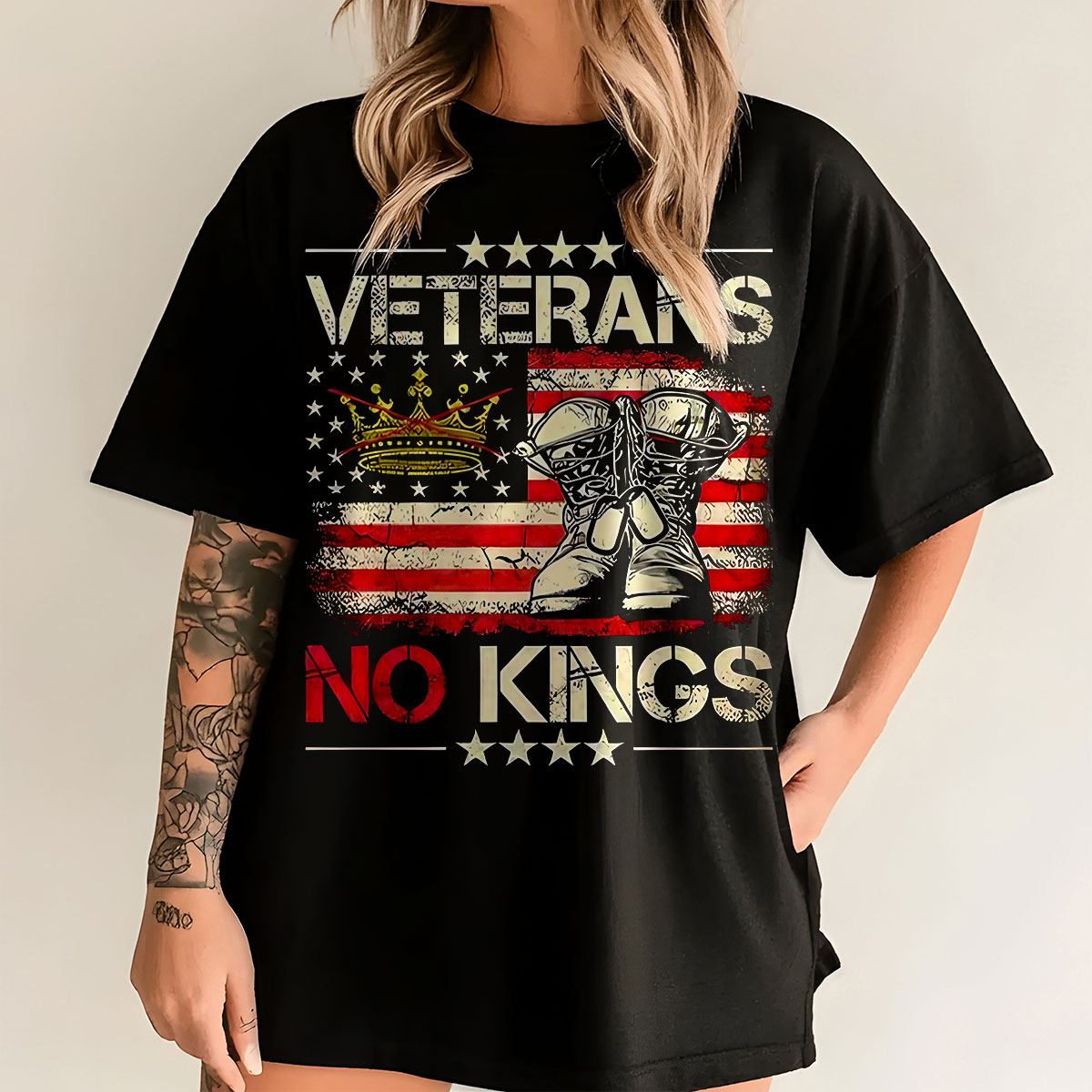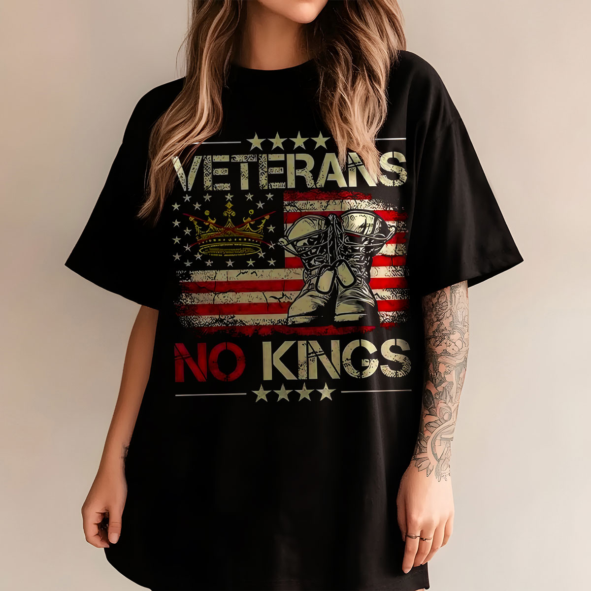 Veterans No Kings American Flag Graphic Sweatshirt, Patriotic Army Pride Pullover, Military Support Tee, Unisex USA Apparel, T-Shirt, Hoodie & Sweatshirt