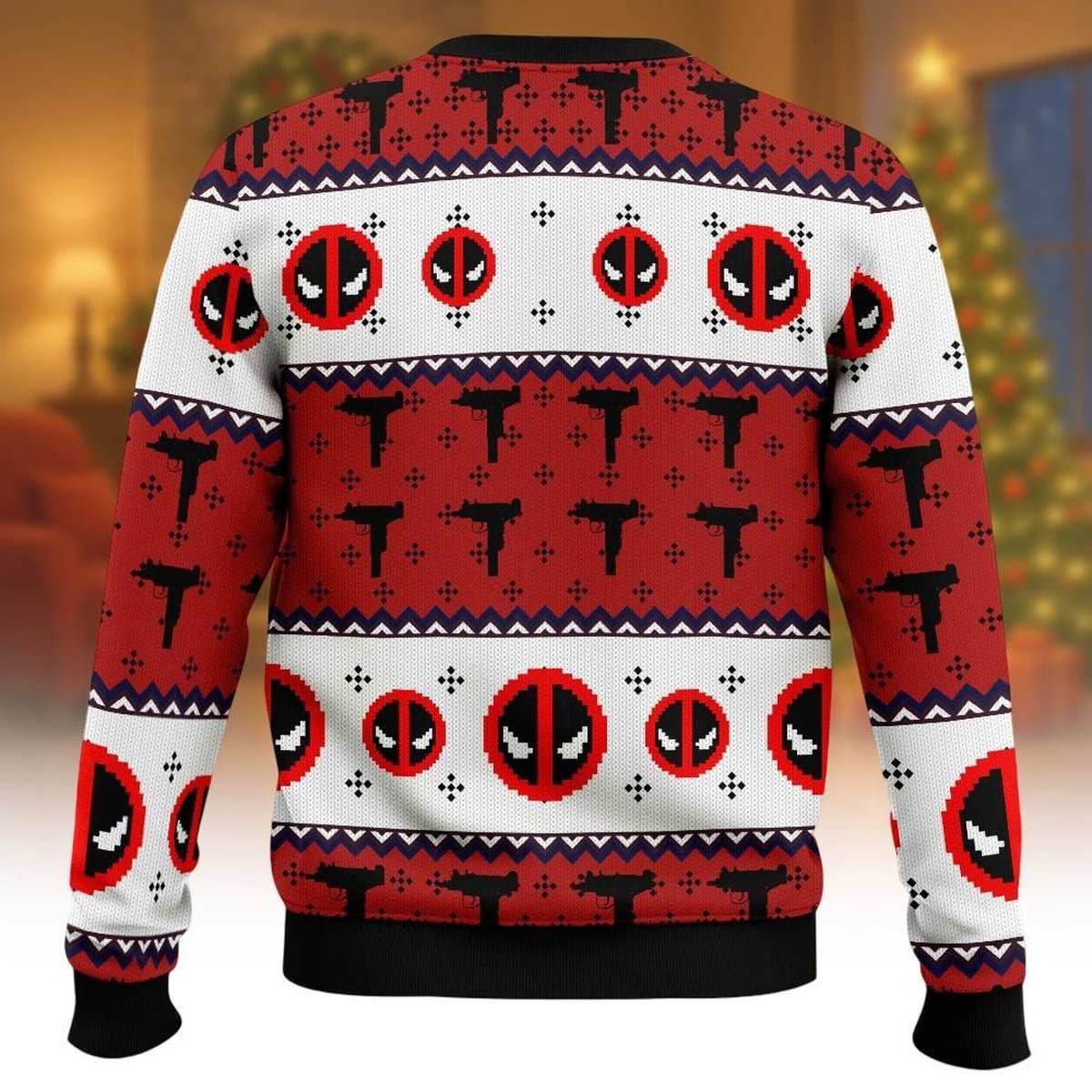 Deadpool Pattern Red White Ugly Christmas Sweater Funny Marvel Holiday Knit Jumper