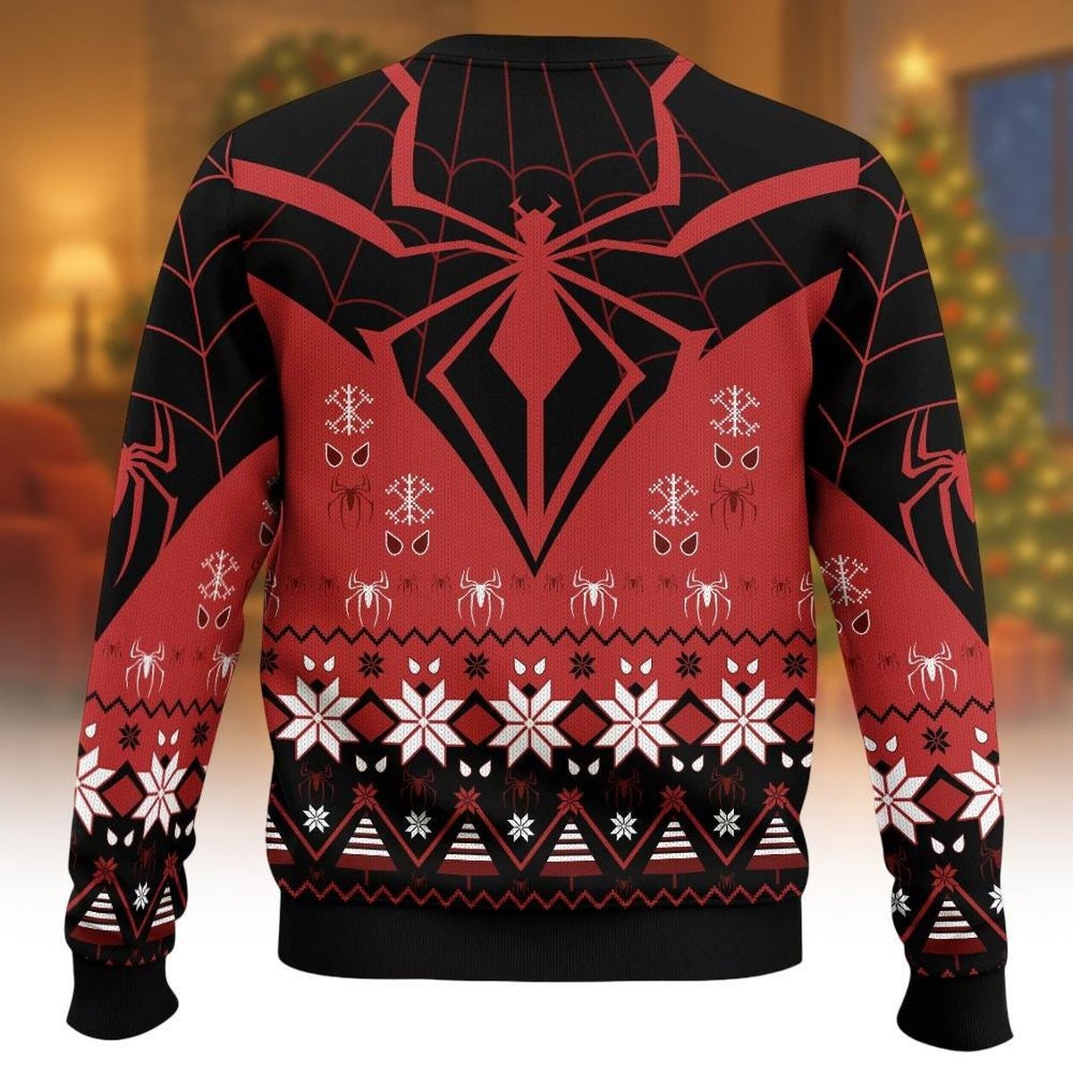 Spider Man Red Black Christmas Ugly Sweater Superhero Logo Pattern Holiday Knit Jumper